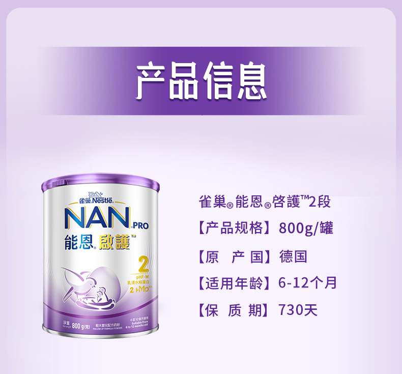 雀巢能恩启护2段低敏水解蛋白+HMO较大婴儿配方奶粉(6-12个月) (效期2027年7月)