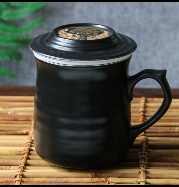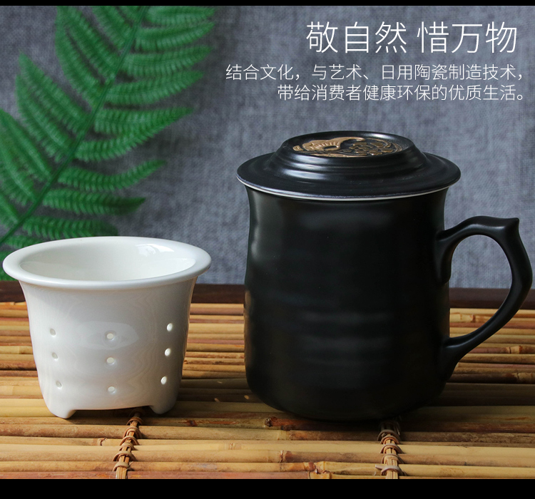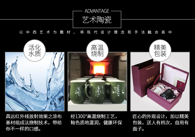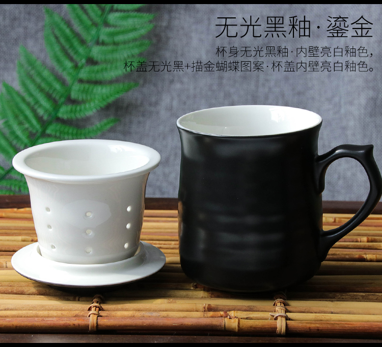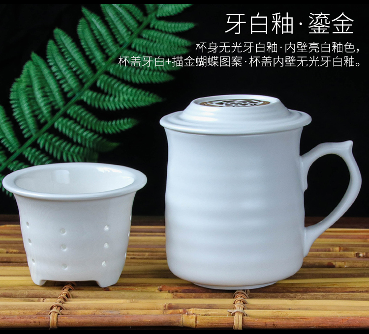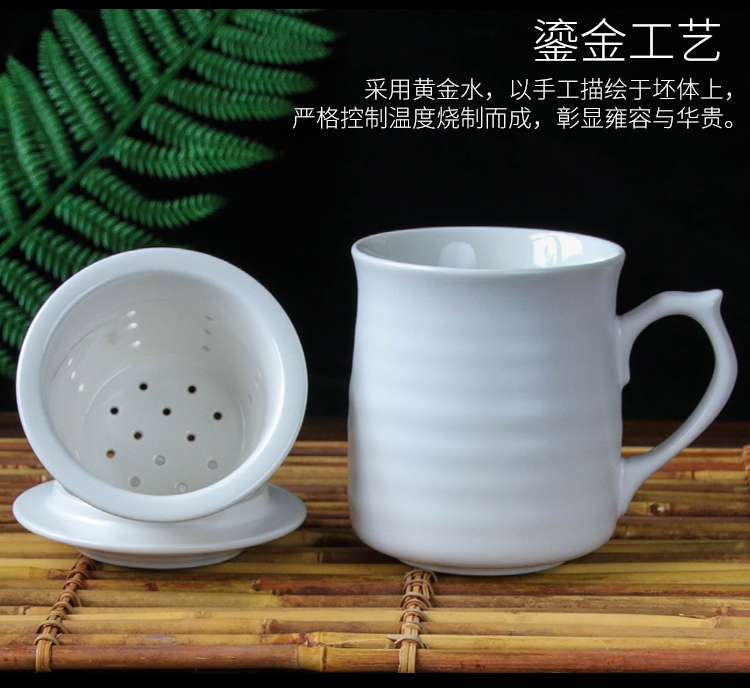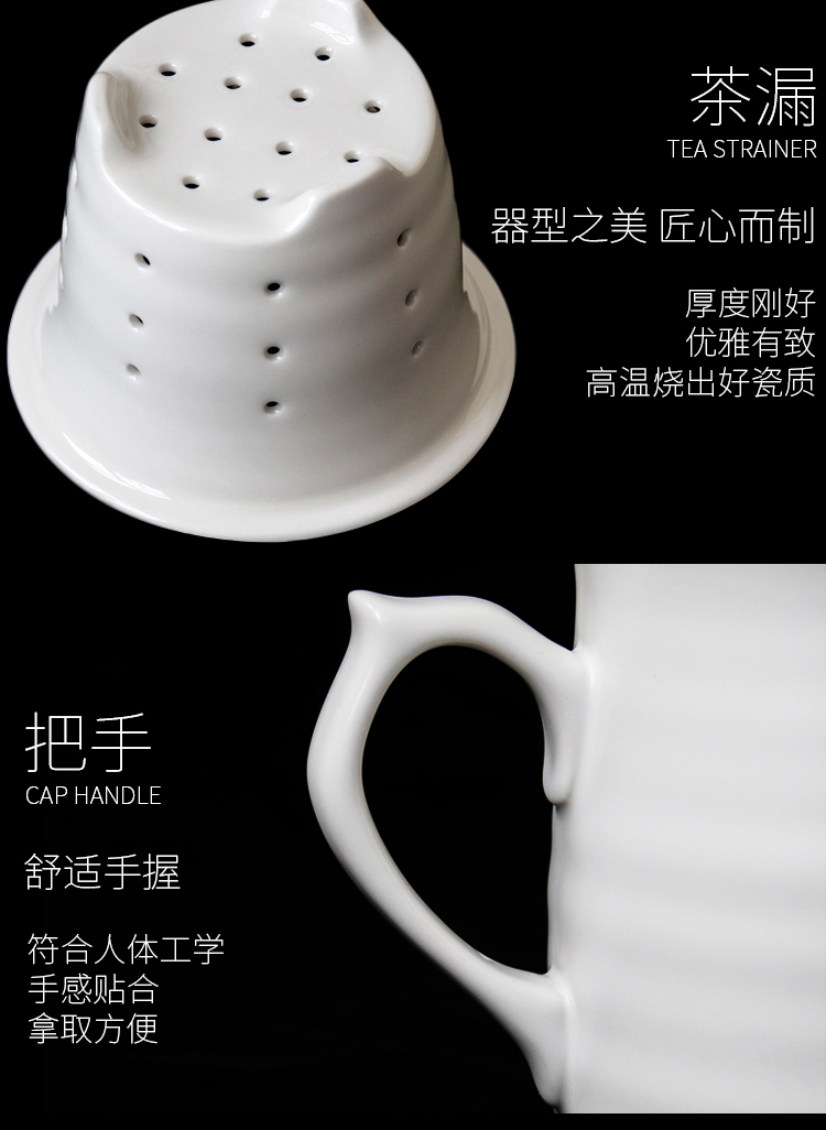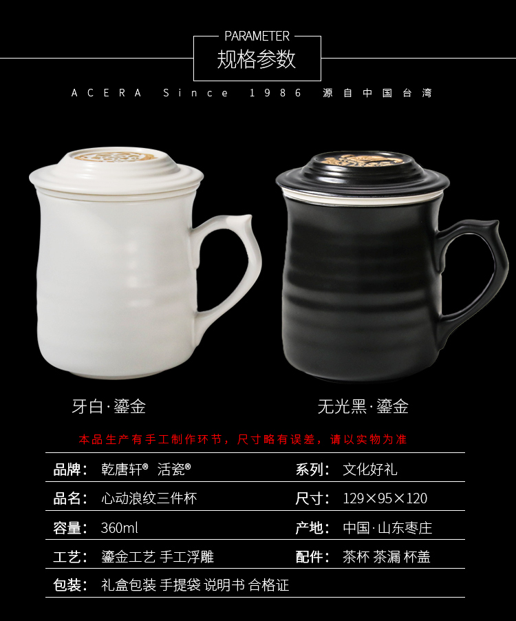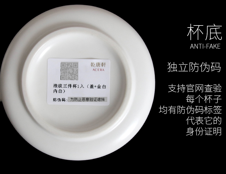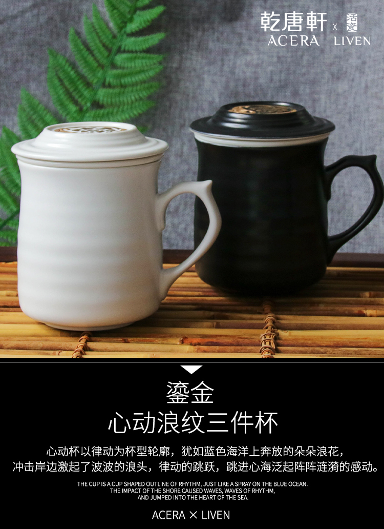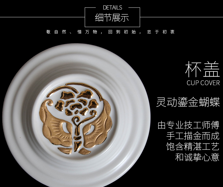 乾唐轩活瓷杯 心动高杯浪纹鎏金三件杯茶杯盖杯带茶漏送礼 白+金