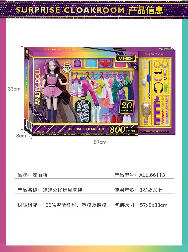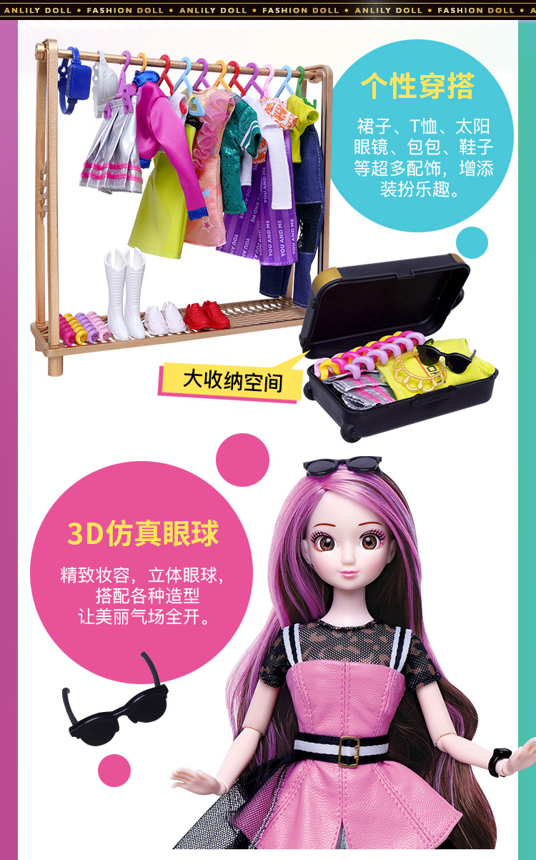 安丽莉公主玩具惊喜娃娃衣帽间女孩仿真换装过家家试衣间套装礼物