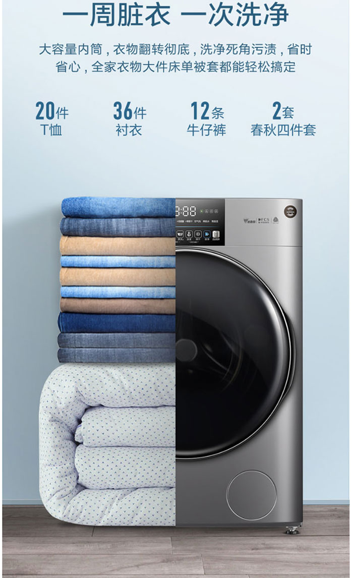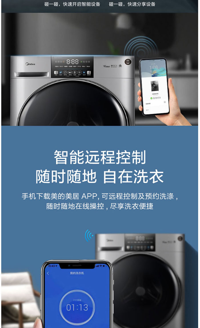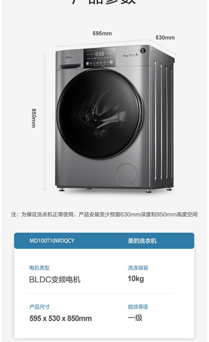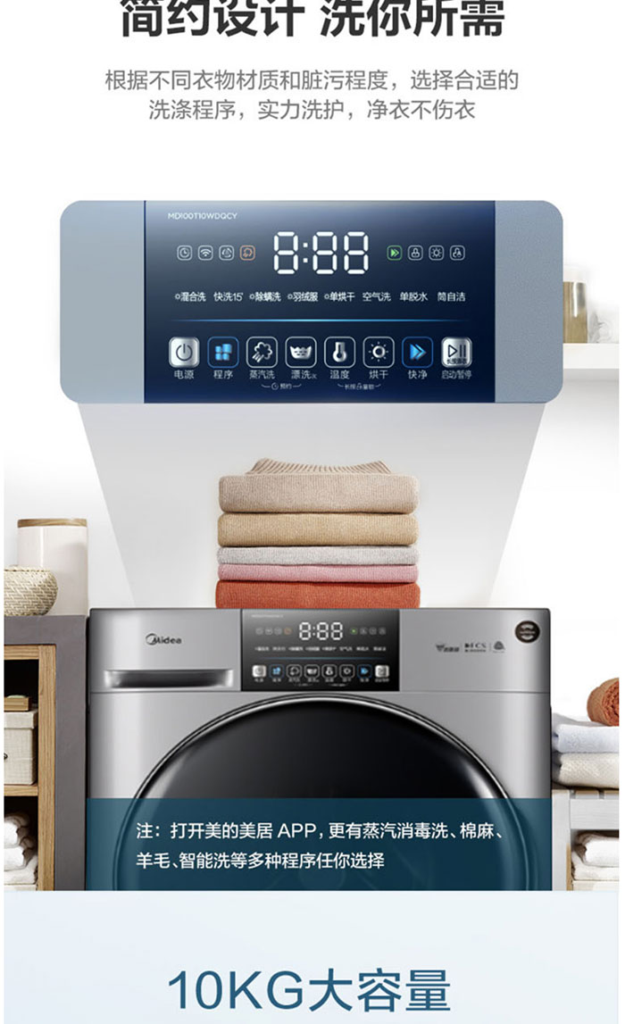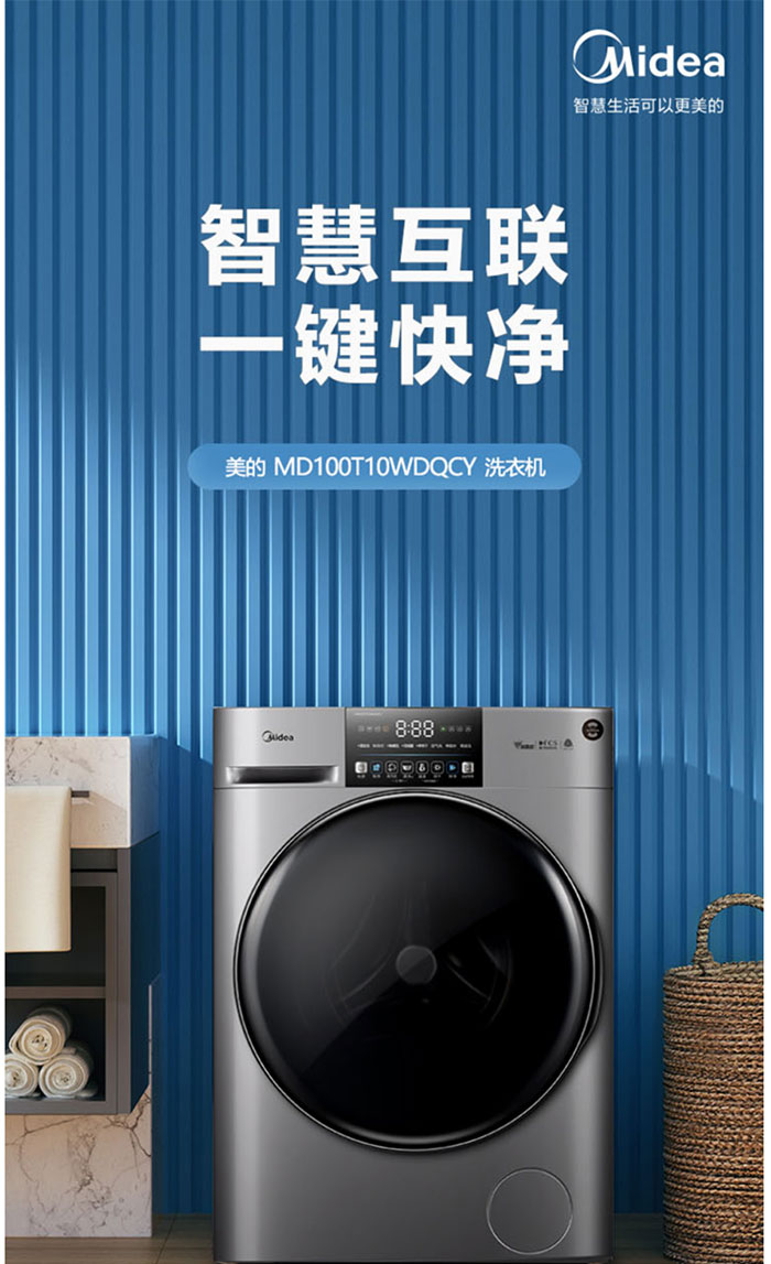 美的(Midea)MD100T10WDQCY巴赫银 10公斤 滚筒洗干一体机