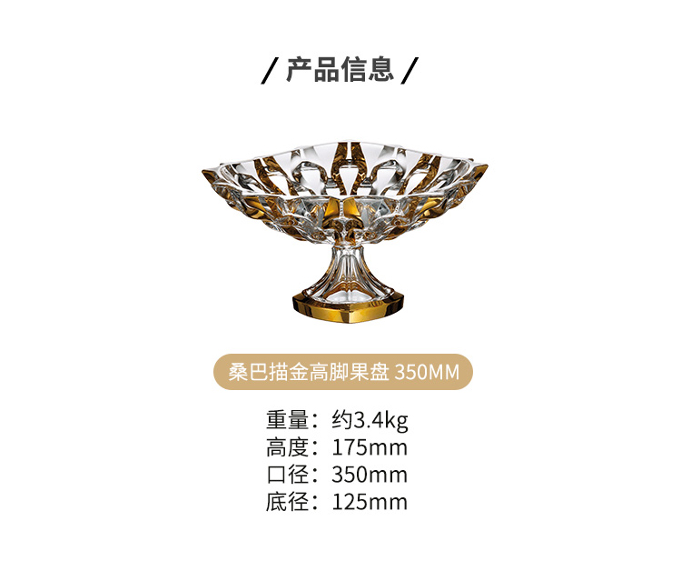 捷克进口/ BOHEMIA波西米亚桑巴描金高脚果斗35cm
