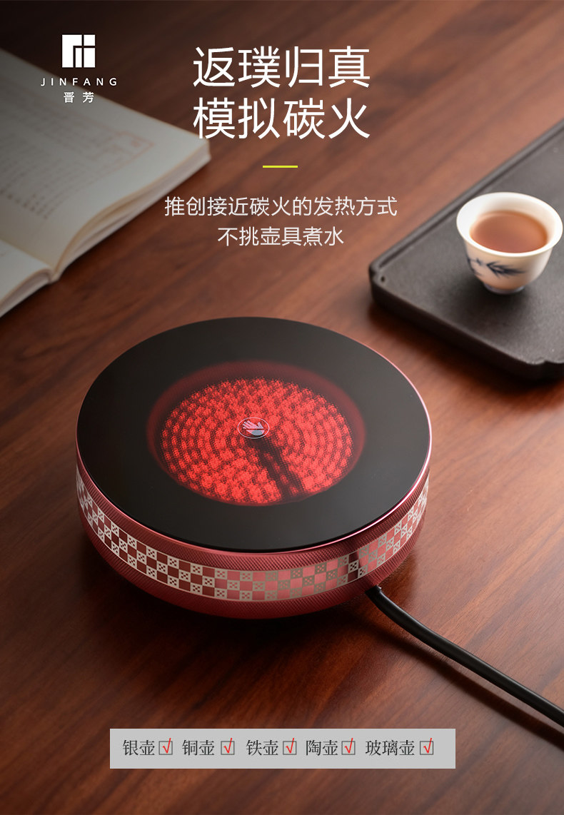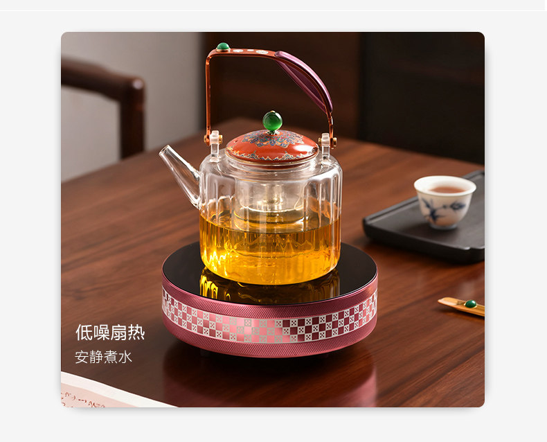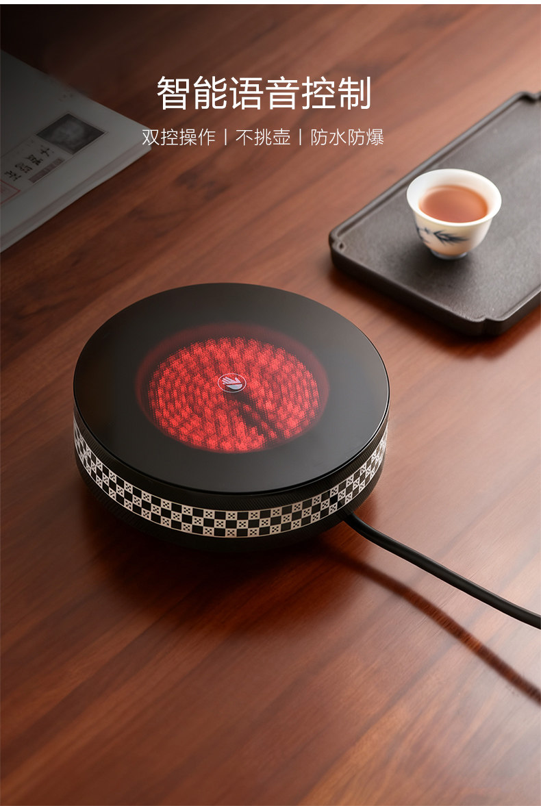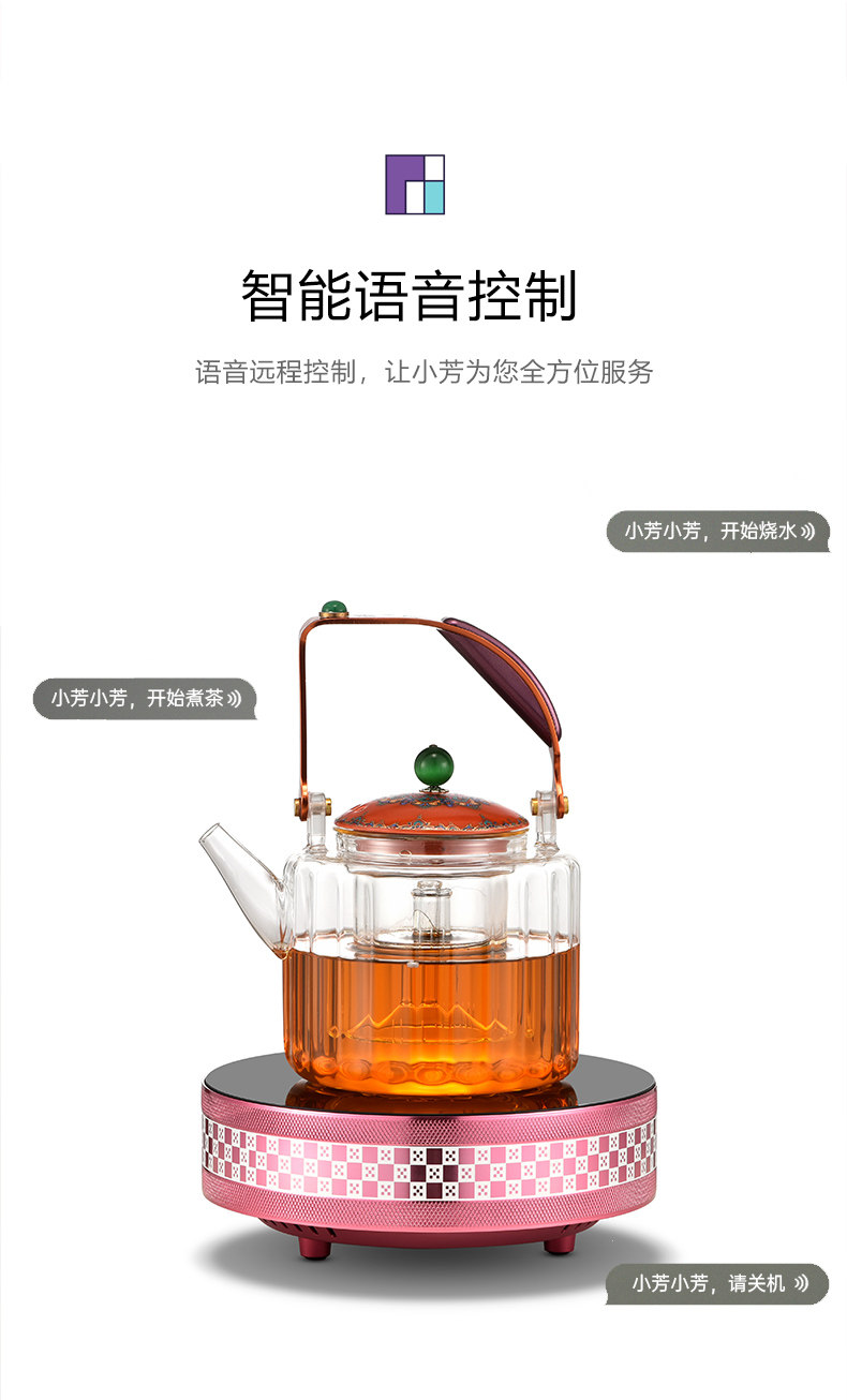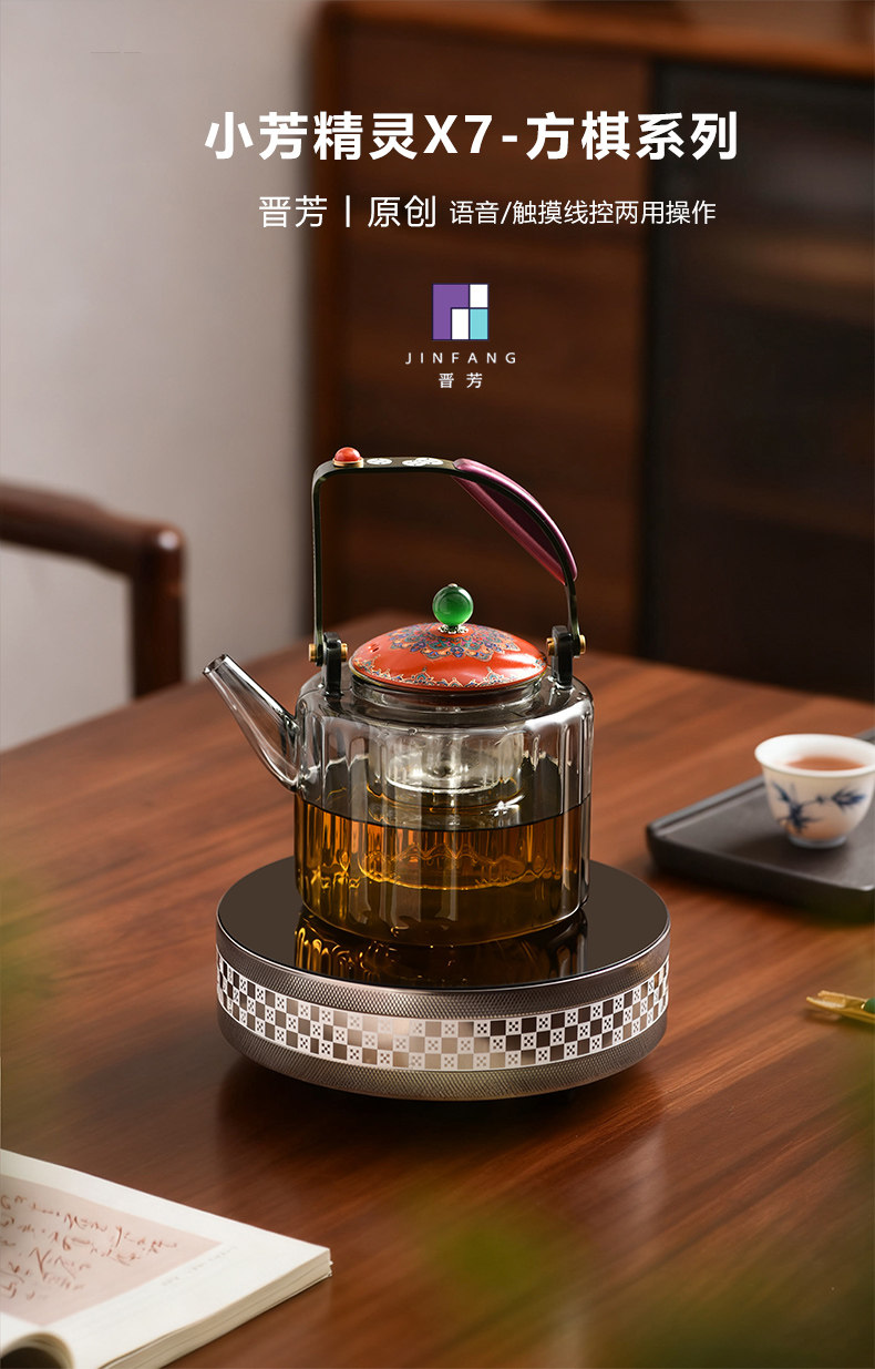 新品晋芳电陶炉茶炉家用智能烧水炉1500瓦静音电炉围炉煮茶器套装小芳精灵X7(元墨方棋)+透明色玻璃壶