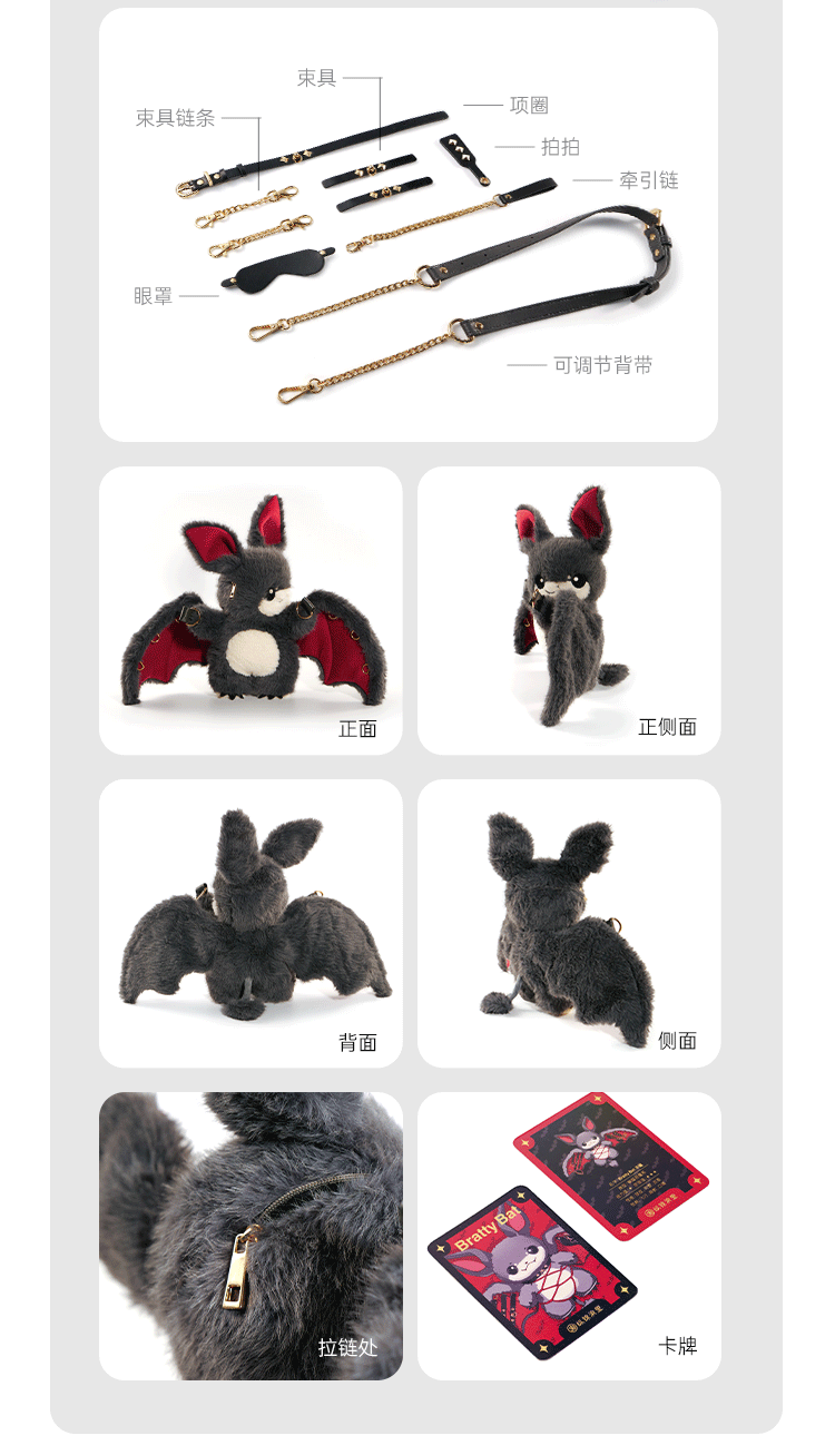 纵锦浪里原创不服蝙蝠斜挎包背包毛绒玩偶