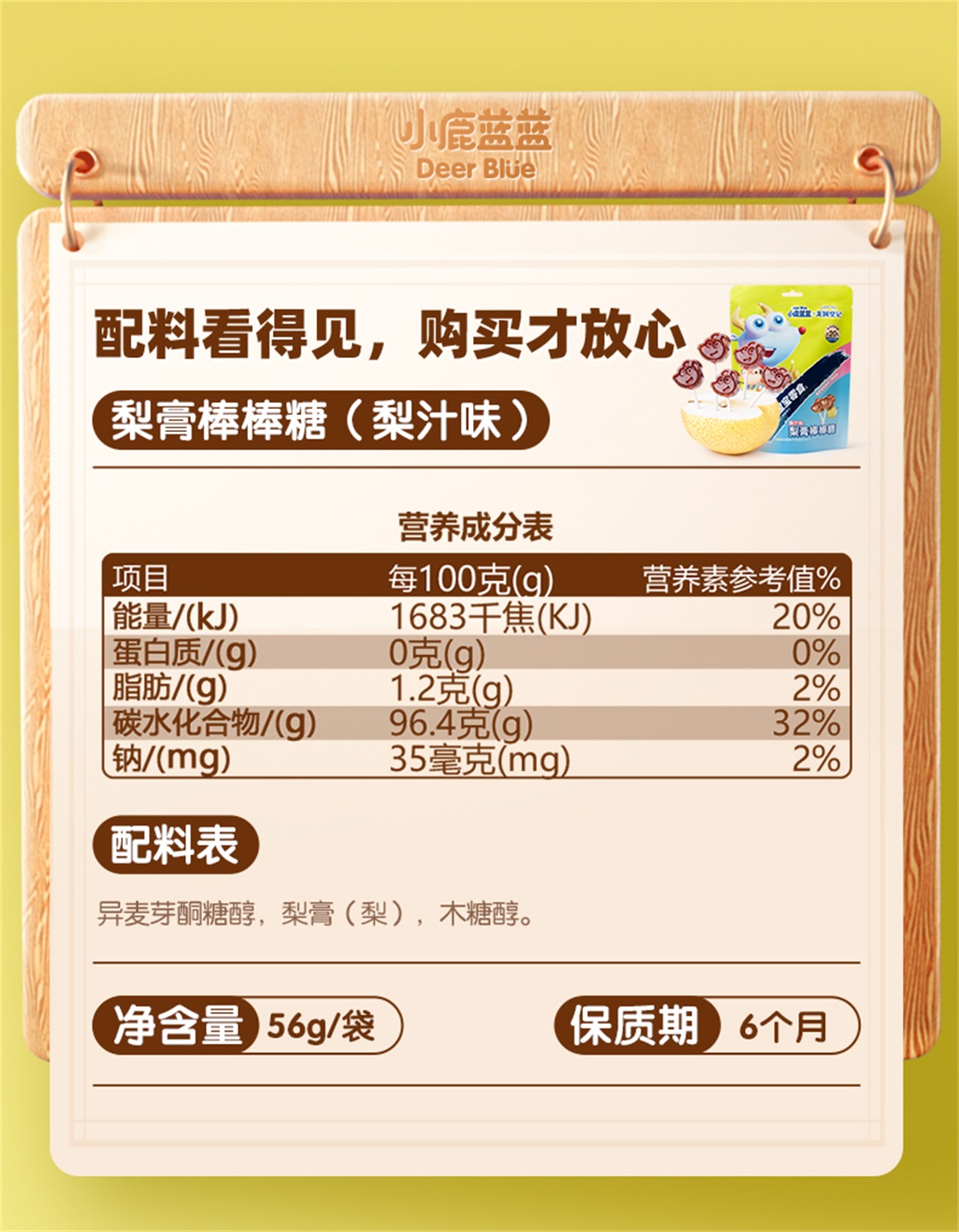 小鹿蓝蓝 梨膏棒棒糖 56g