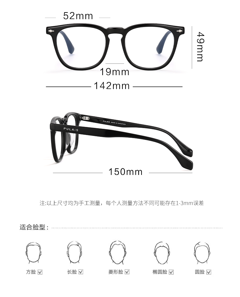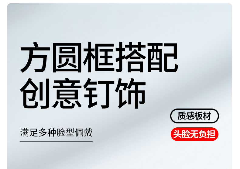 普莱斯光学镜框PBG24030A 韩系时尚素颜黑框 方圆框搭配创意钉饰 优质板材 男女同款 三色可选