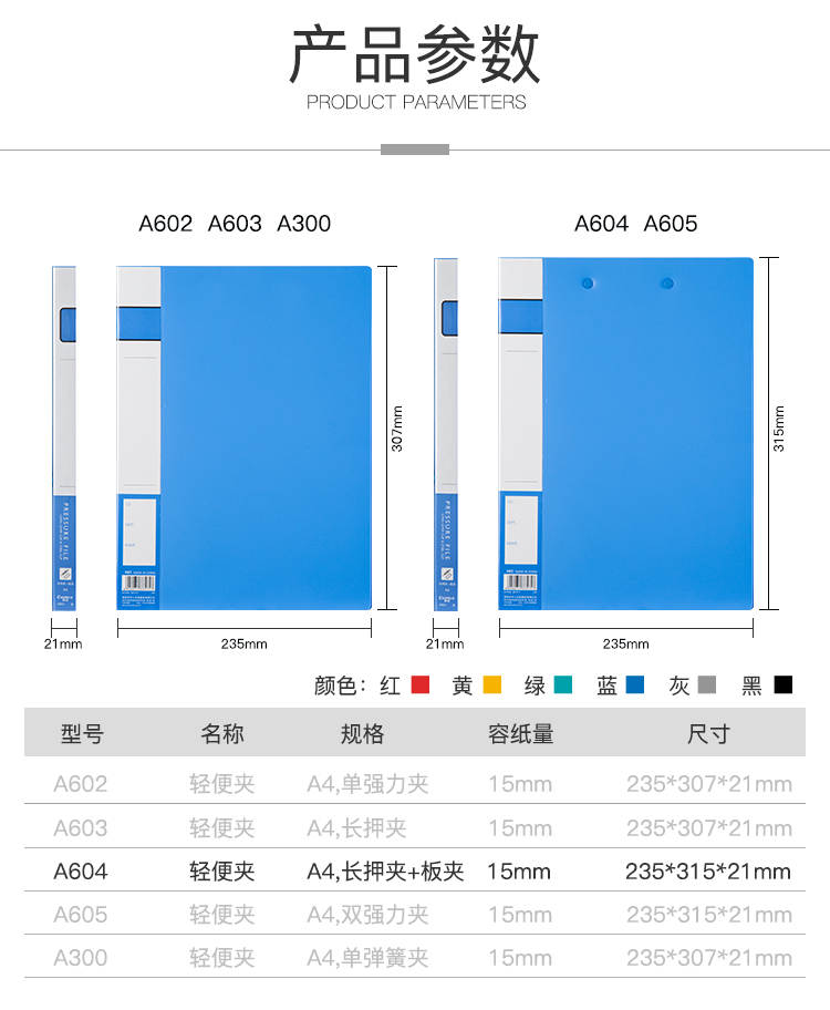 齐心A604 文件夹/资料夹/长押夹+板夹A4 蓝色