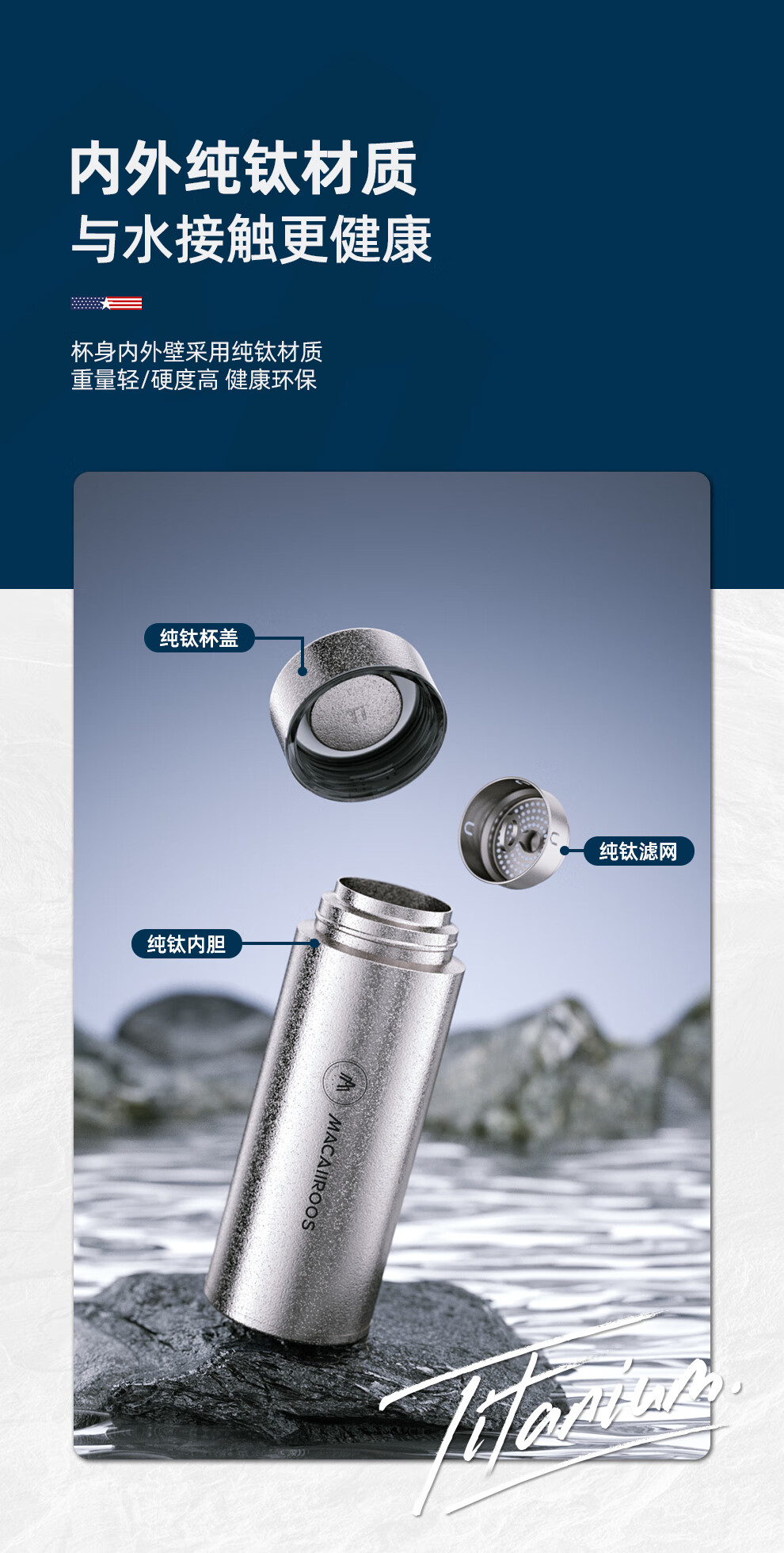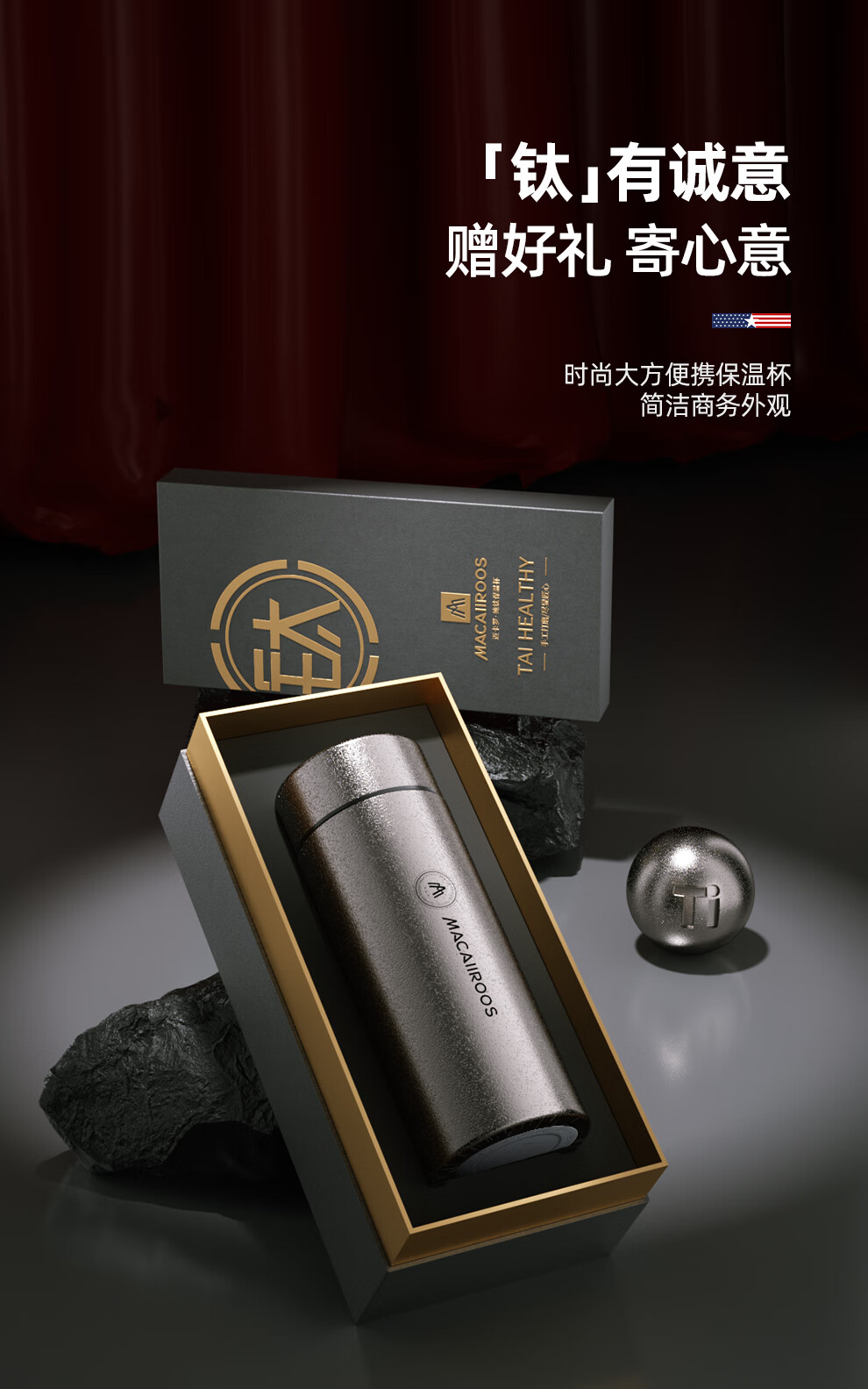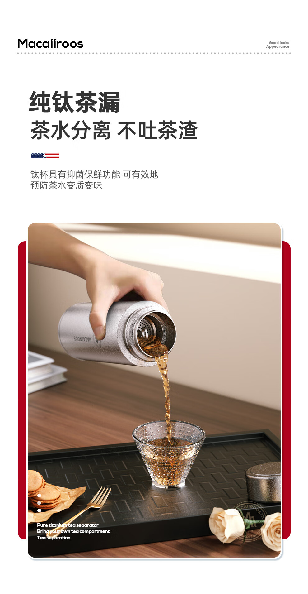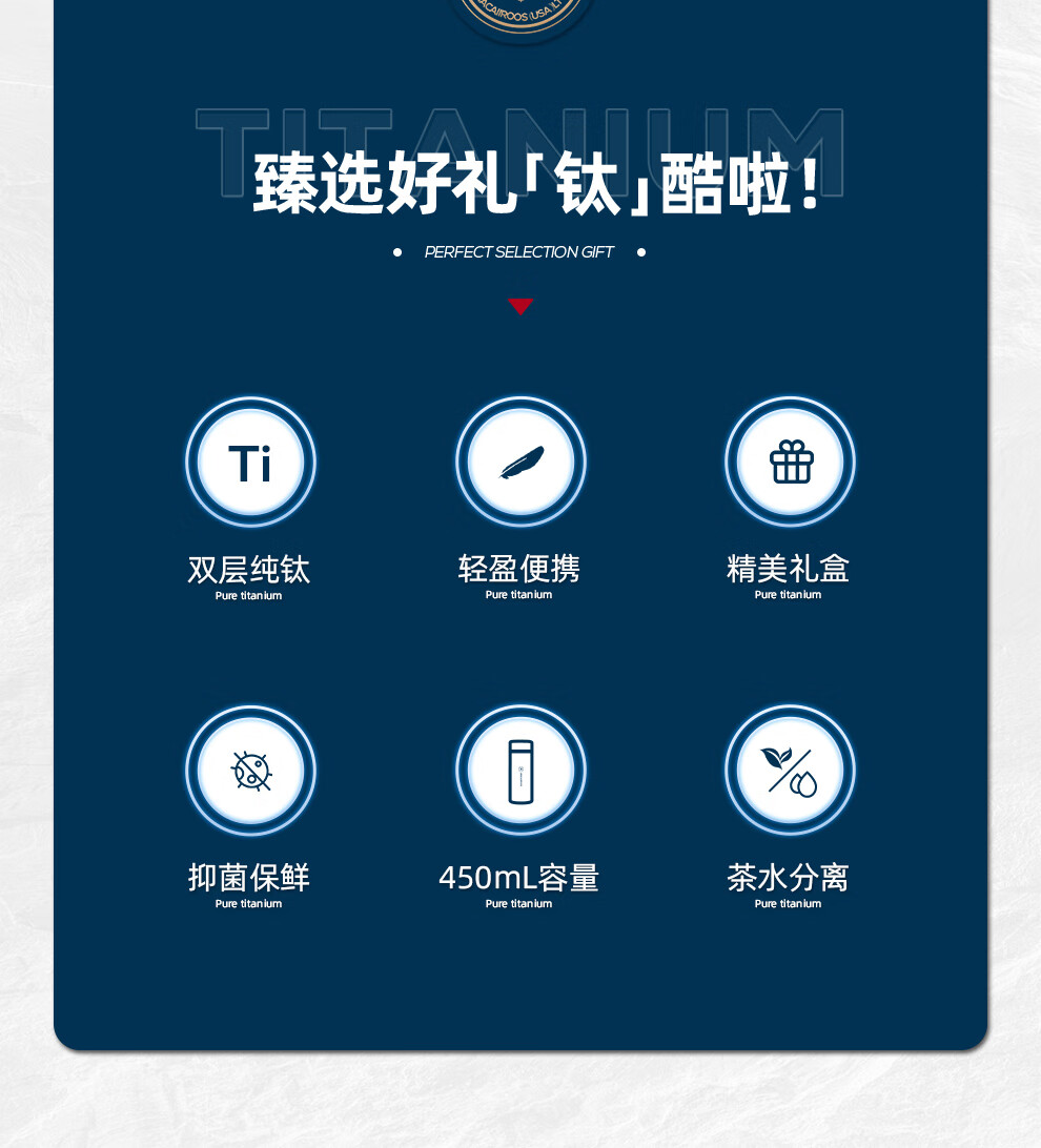【小家电】迈卡罗Macaiiroos保温杯 纯钛保温水杯茶水分离泡茶杯450ml全钛礼盒装杯子抑菌 MC-9450BW HF