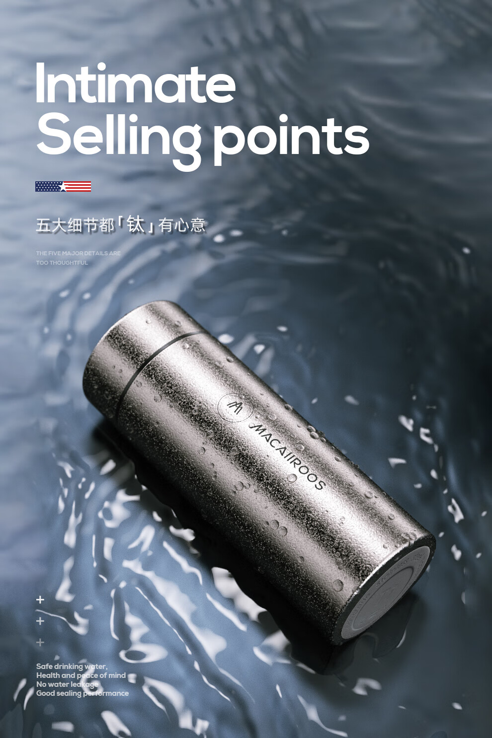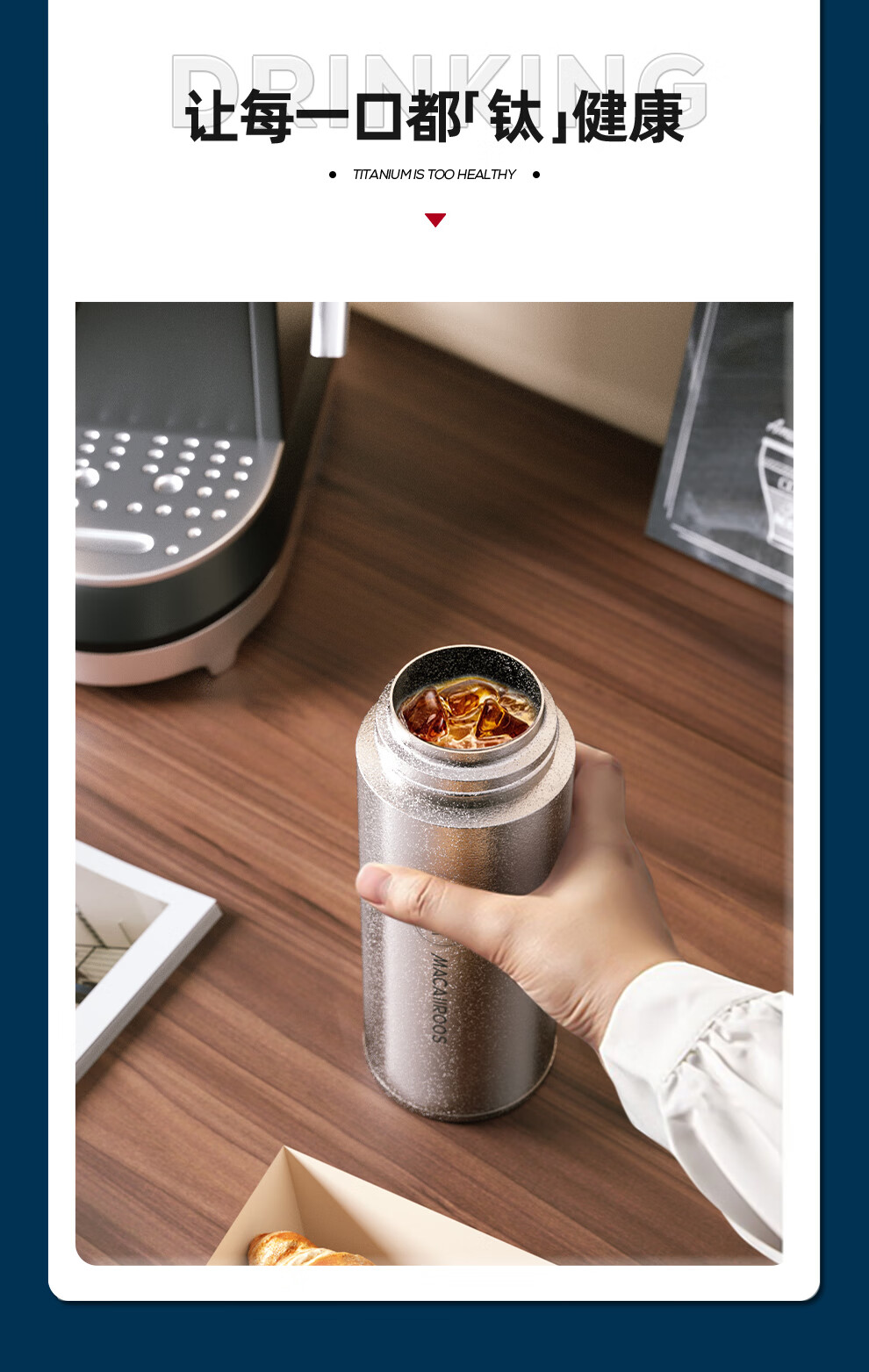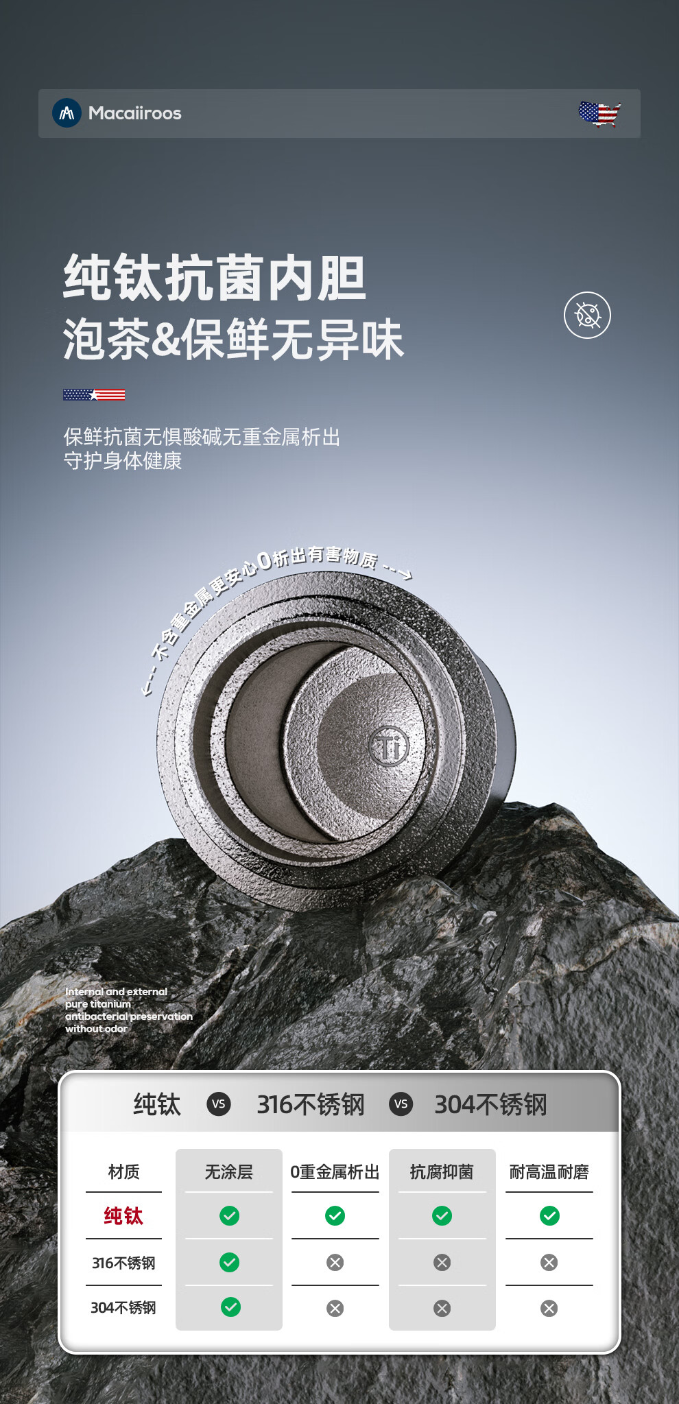 【小家电】迈卡罗Macaiiroos保温杯 纯钛保温水杯茶水分离泡茶杯450ml全钛礼盒装杯子抑菌 MC-9450BW HF