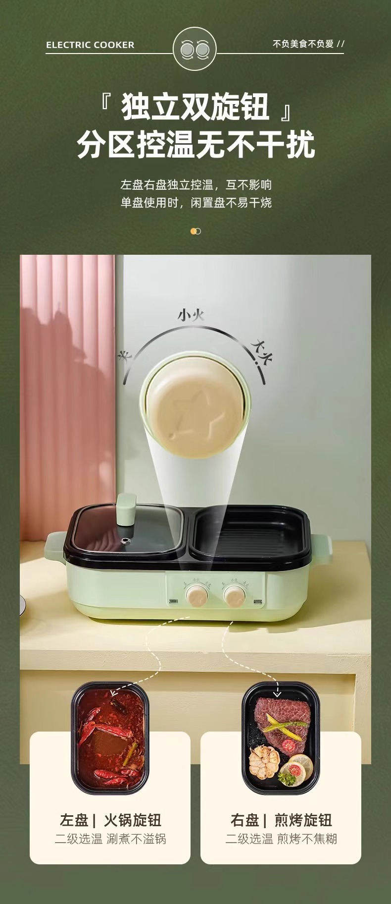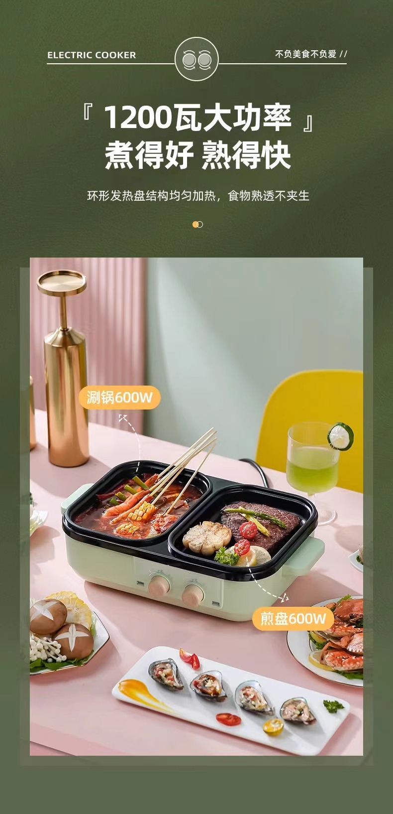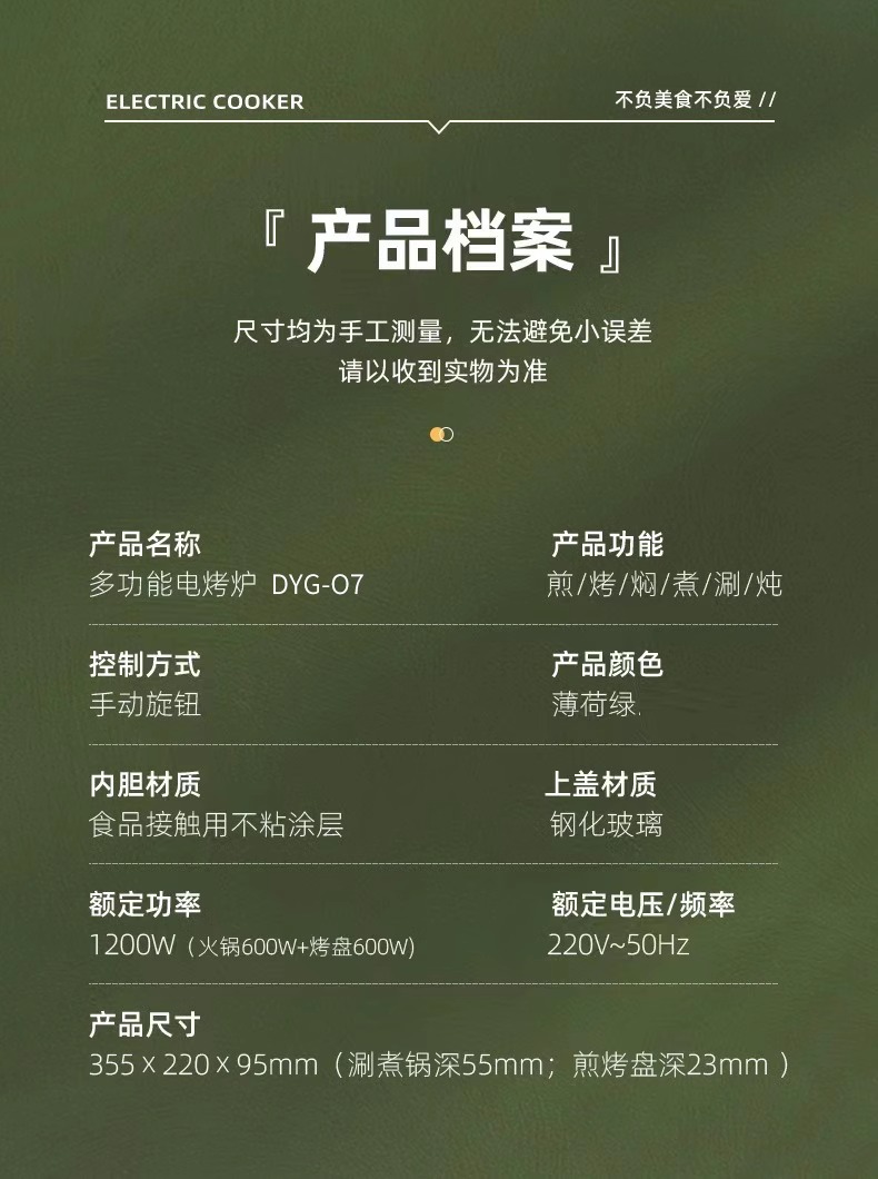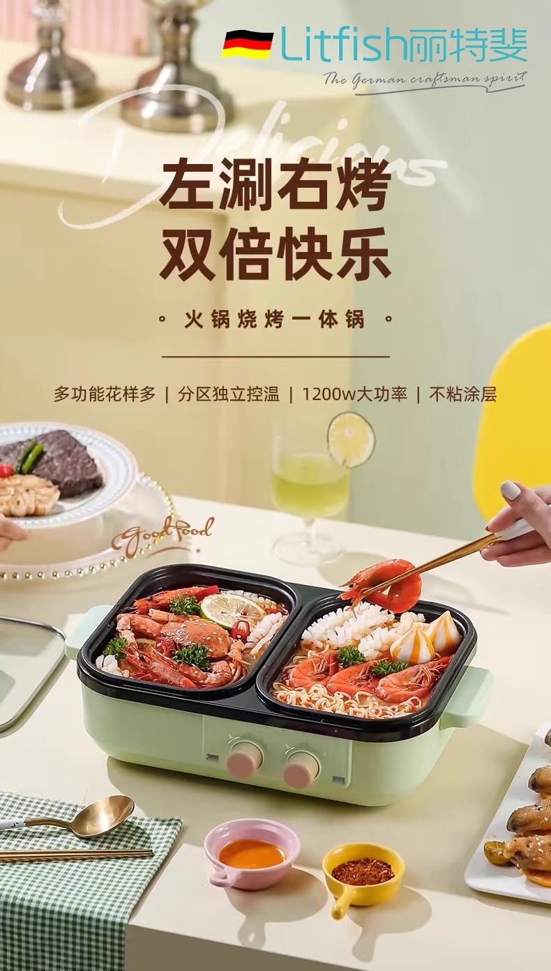 【小家电】丽特斐煎烤涮多功能料理锅 DYG-07 HF