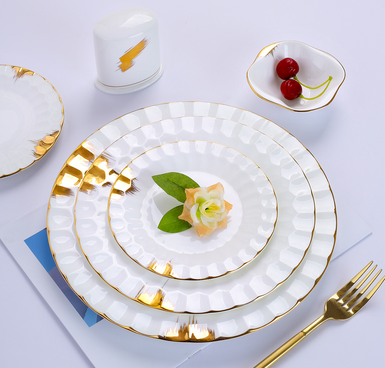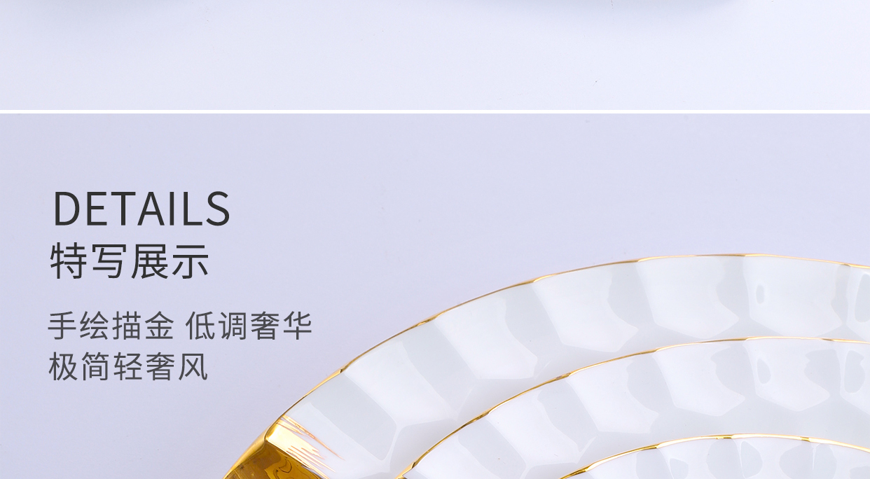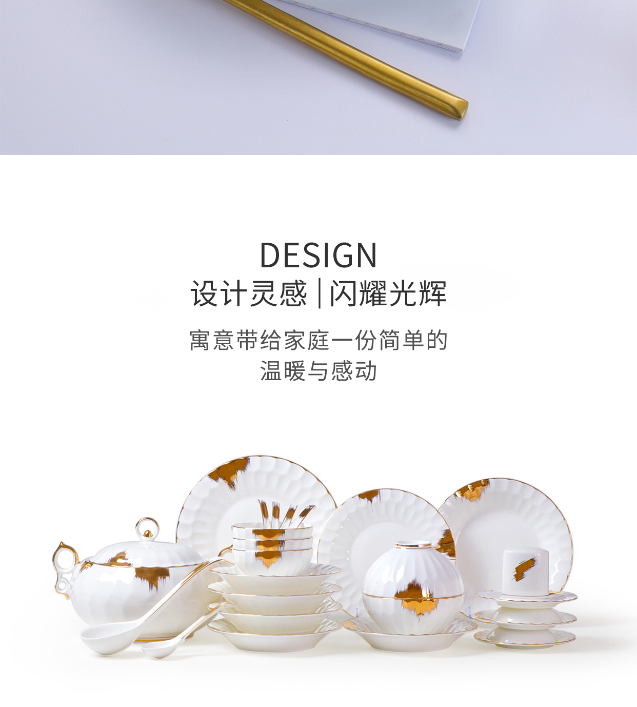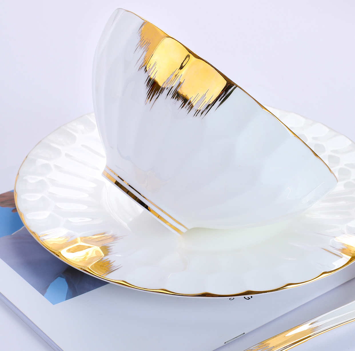 【特惠6折,仅1套,无货退款】轻奢骨瓷餐具套装欧式创意现代简约碗碟套装家用碗盘碟送礼陶瓷碗流金岁月