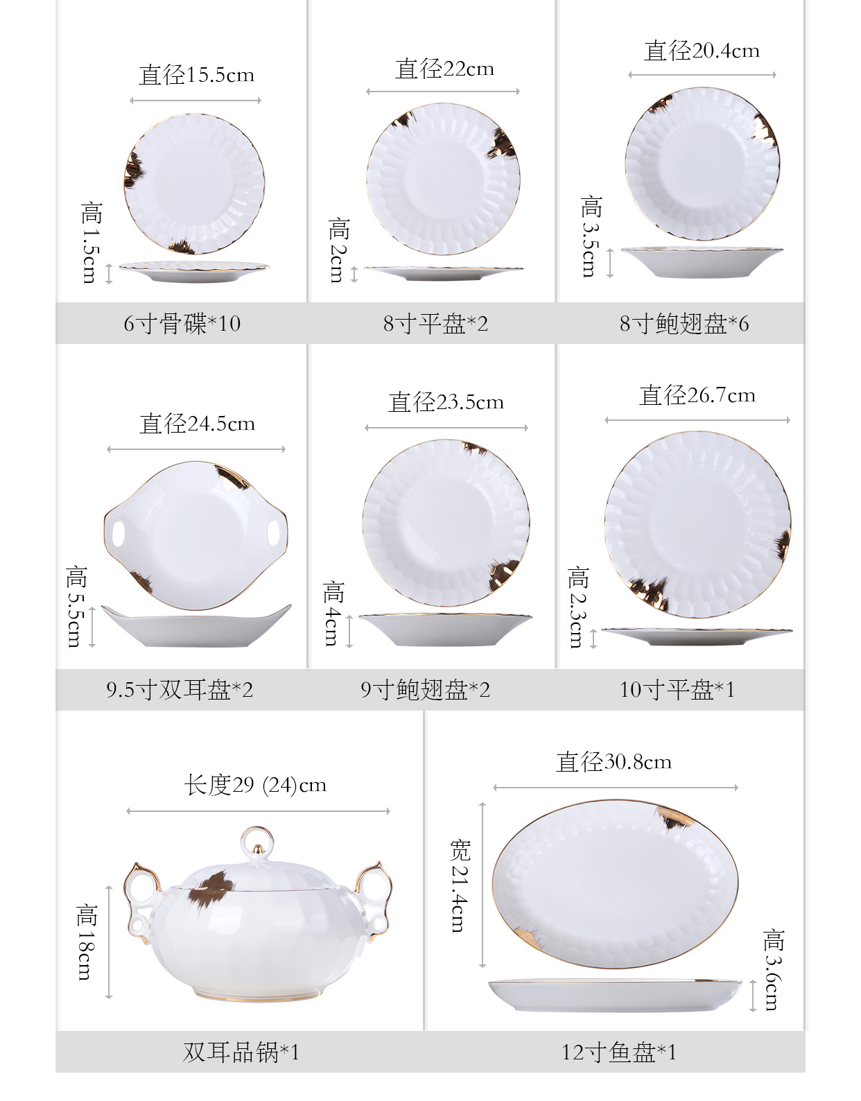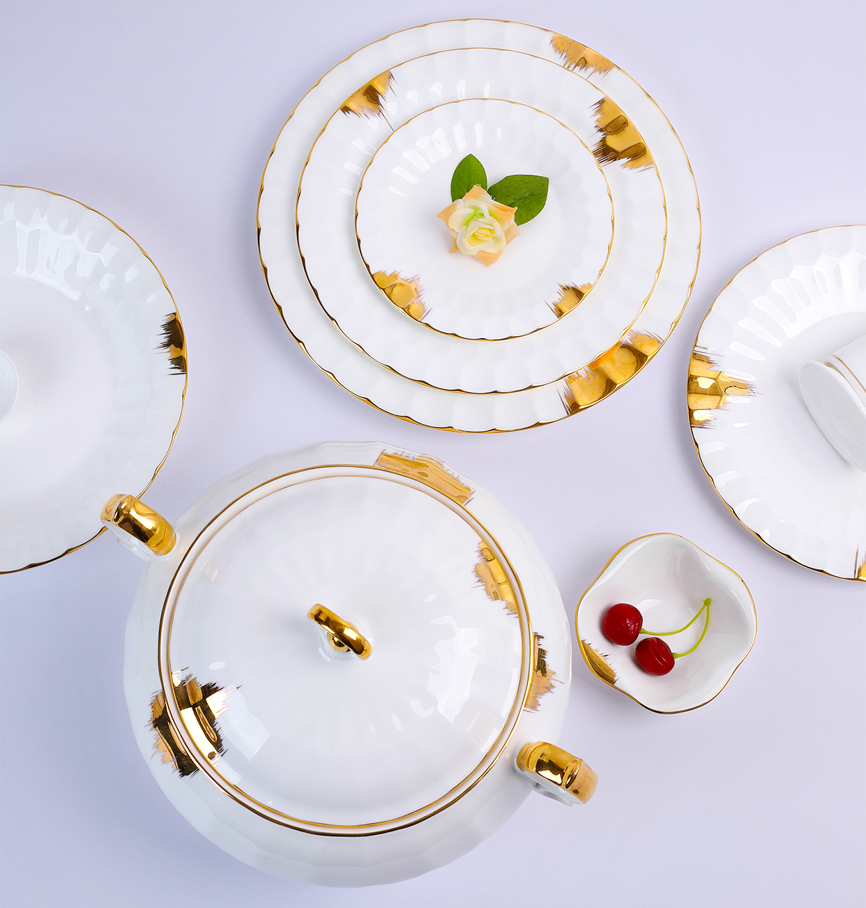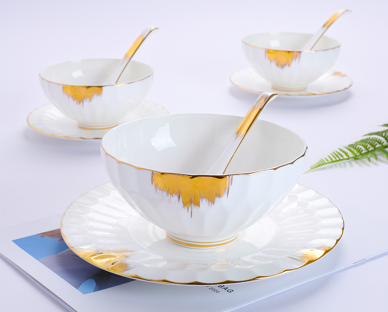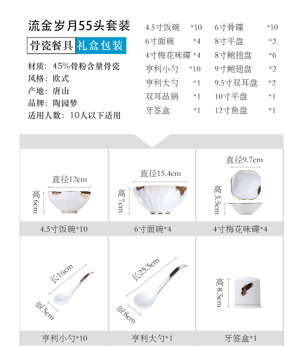【特惠6折,仅1套,无货退款】轻奢骨瓷餐具套装欧式创意现代简约碗碟套装家用碗盘碟送礼陶瓷碗流金岁月
