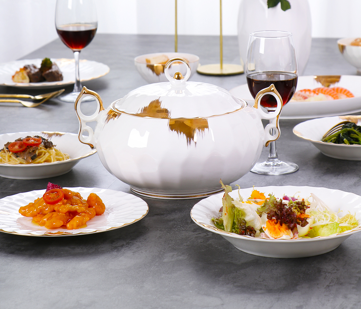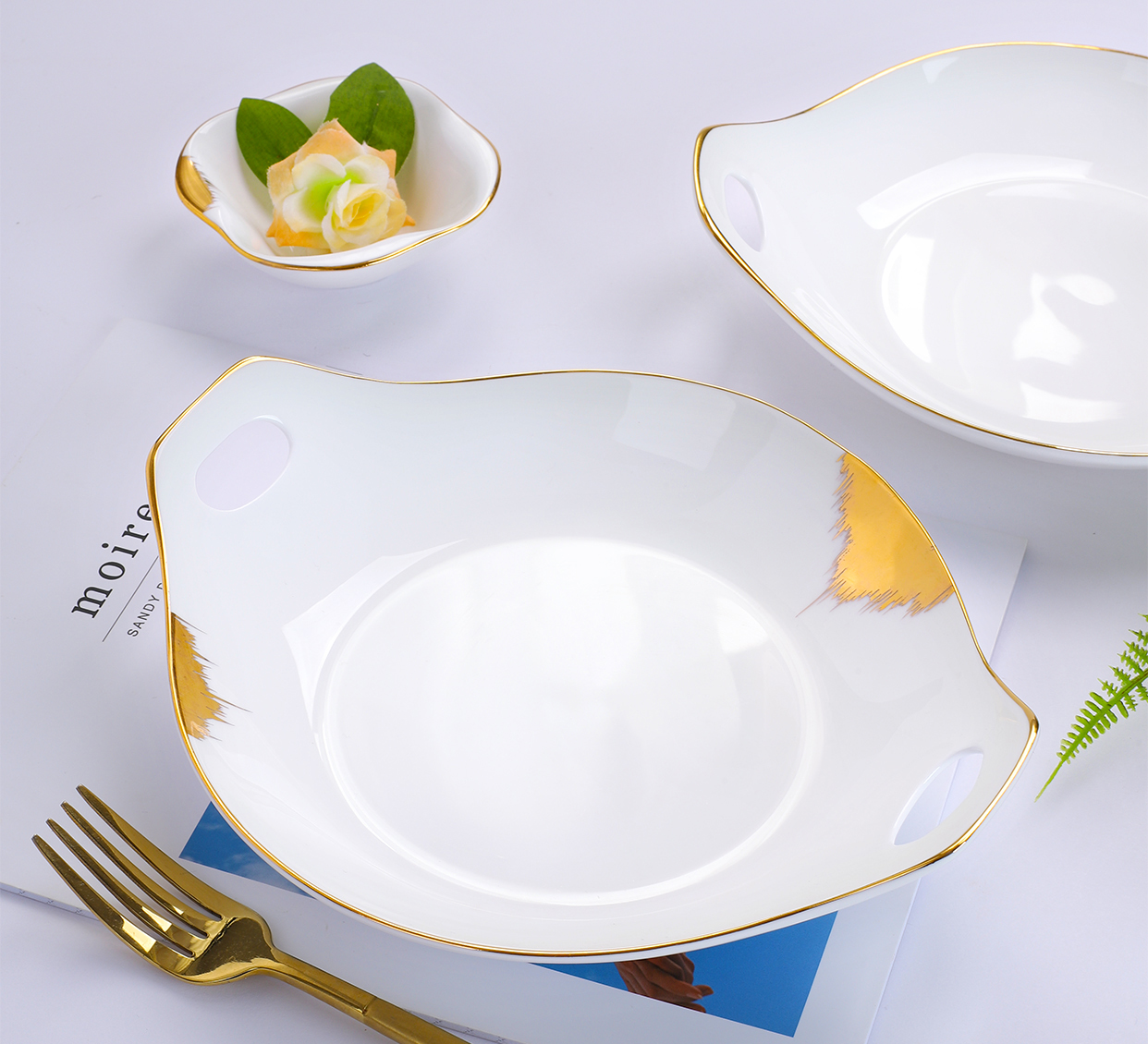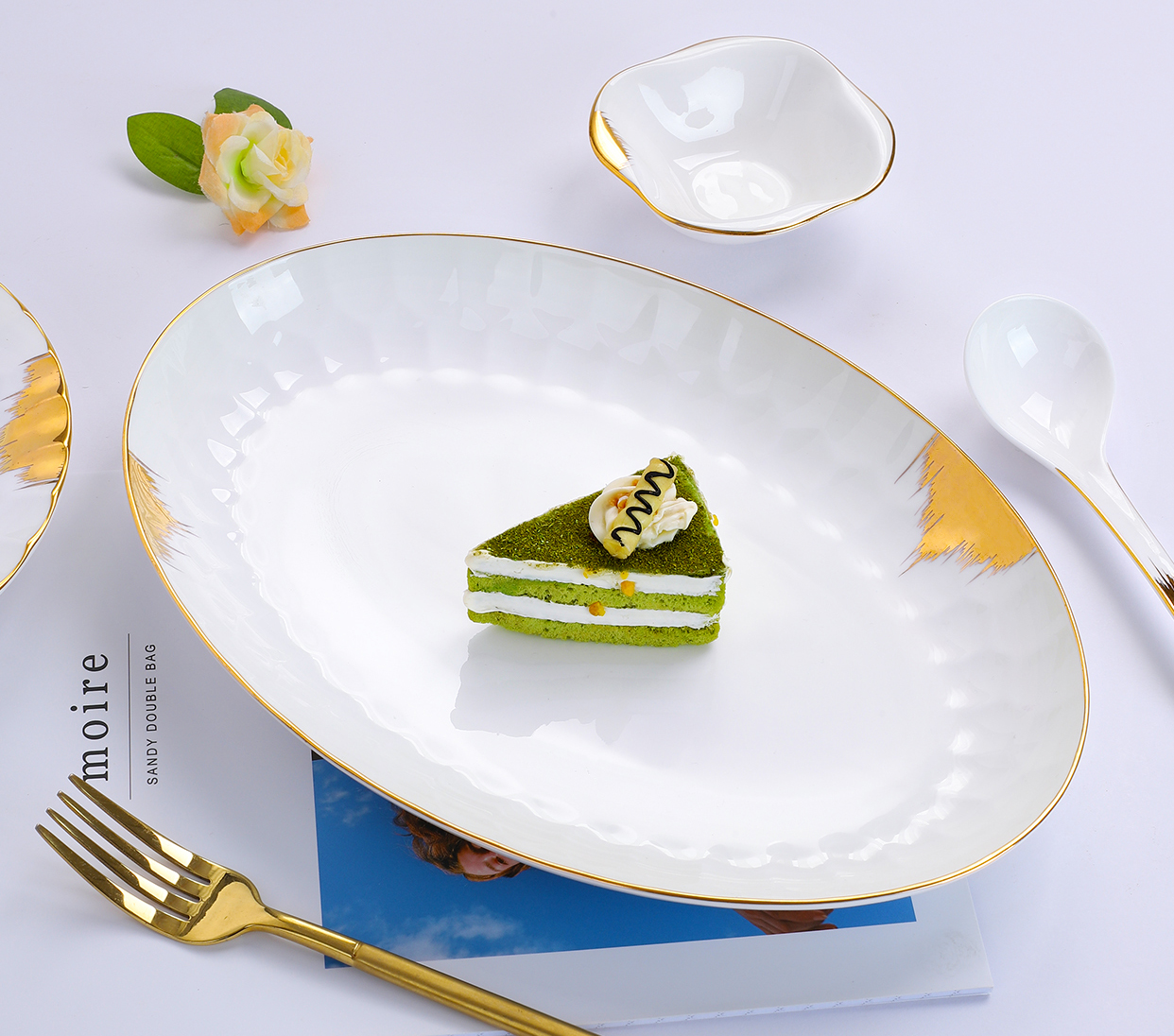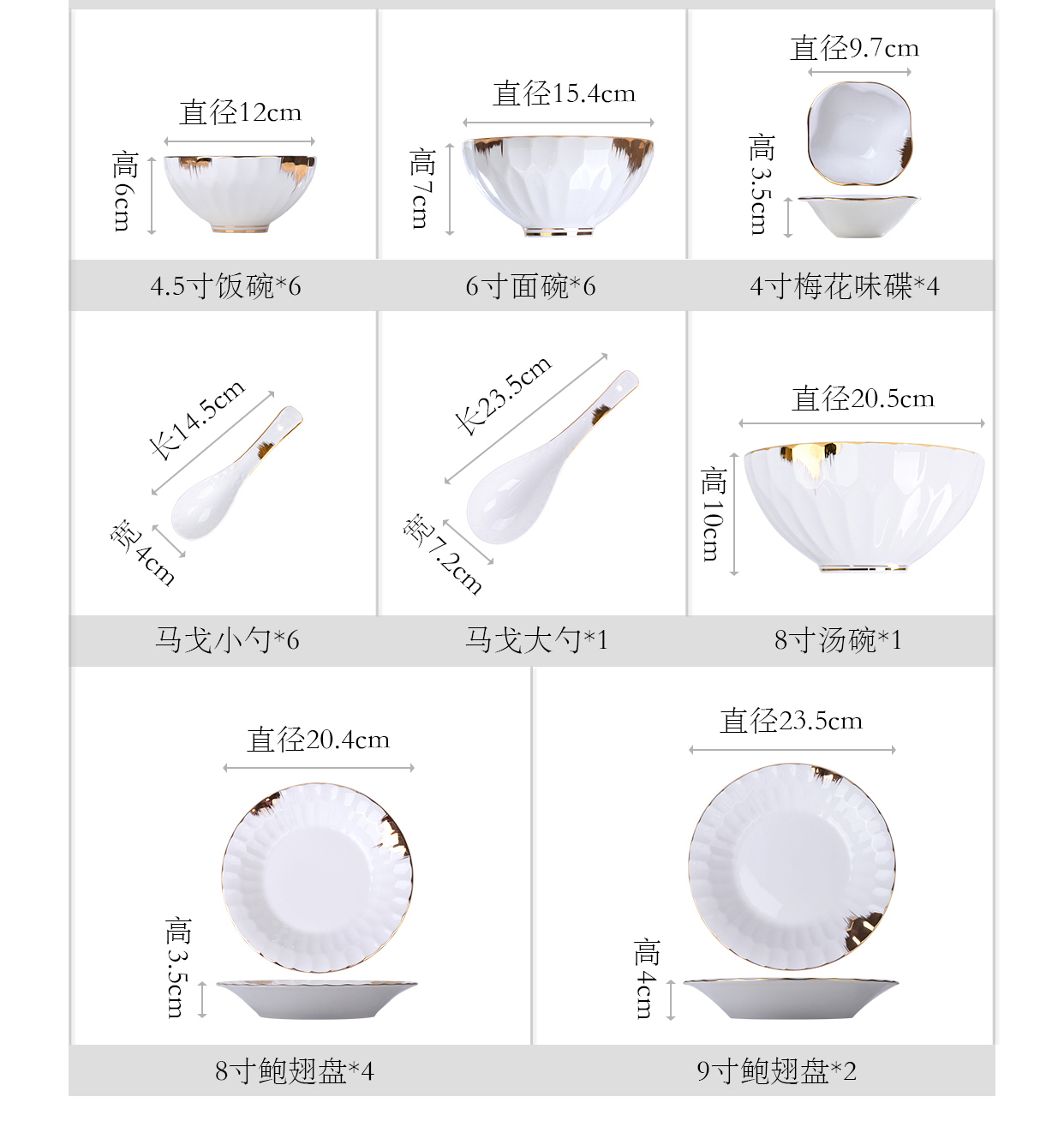 【特惠6折,仅1套,无货退款】轻奢骨瓷餐具套装欧式创意现代简约碗碟套装家用碗盘碟送礼陶瓷碗流金岁月