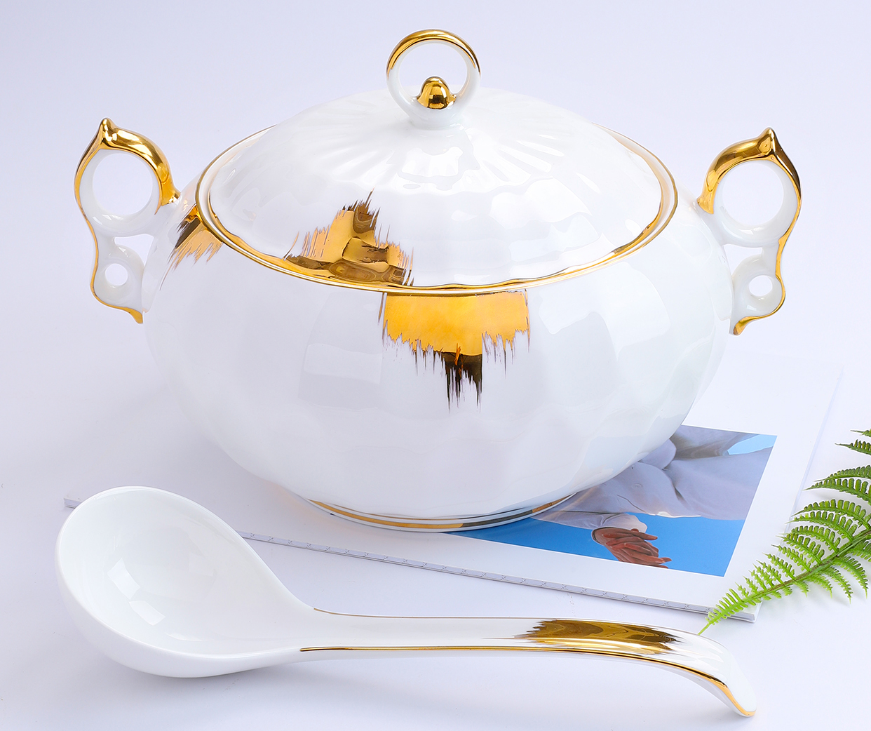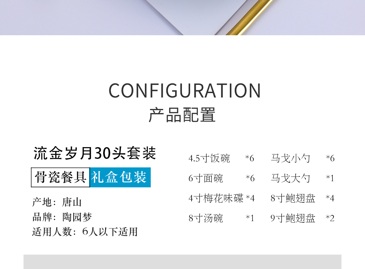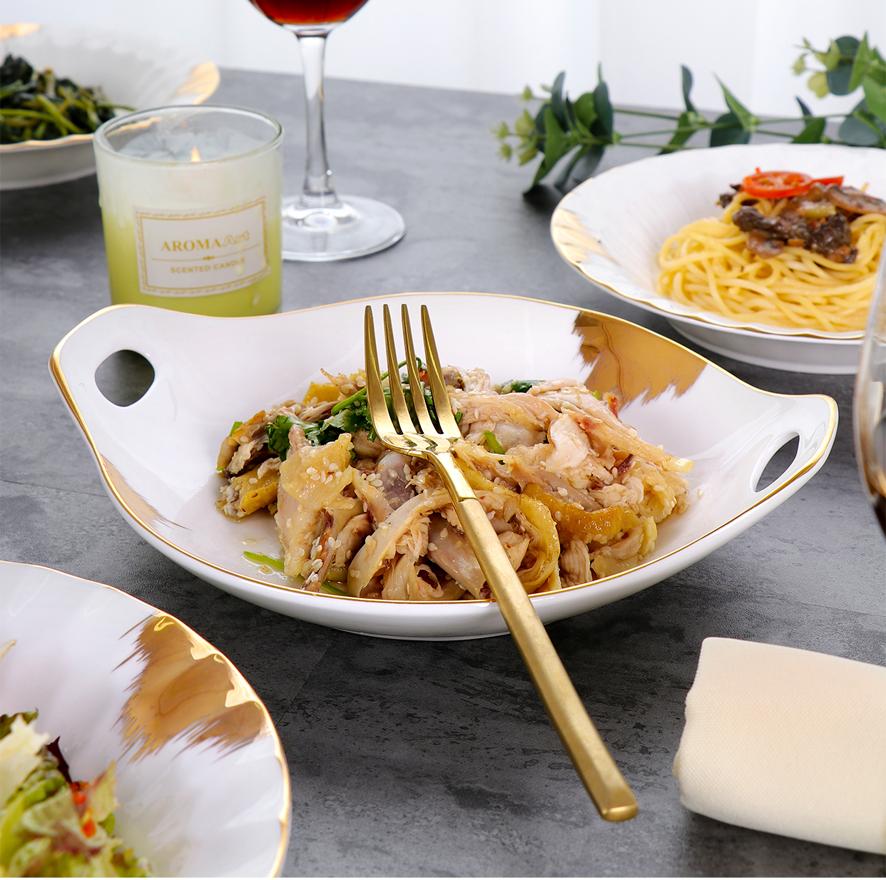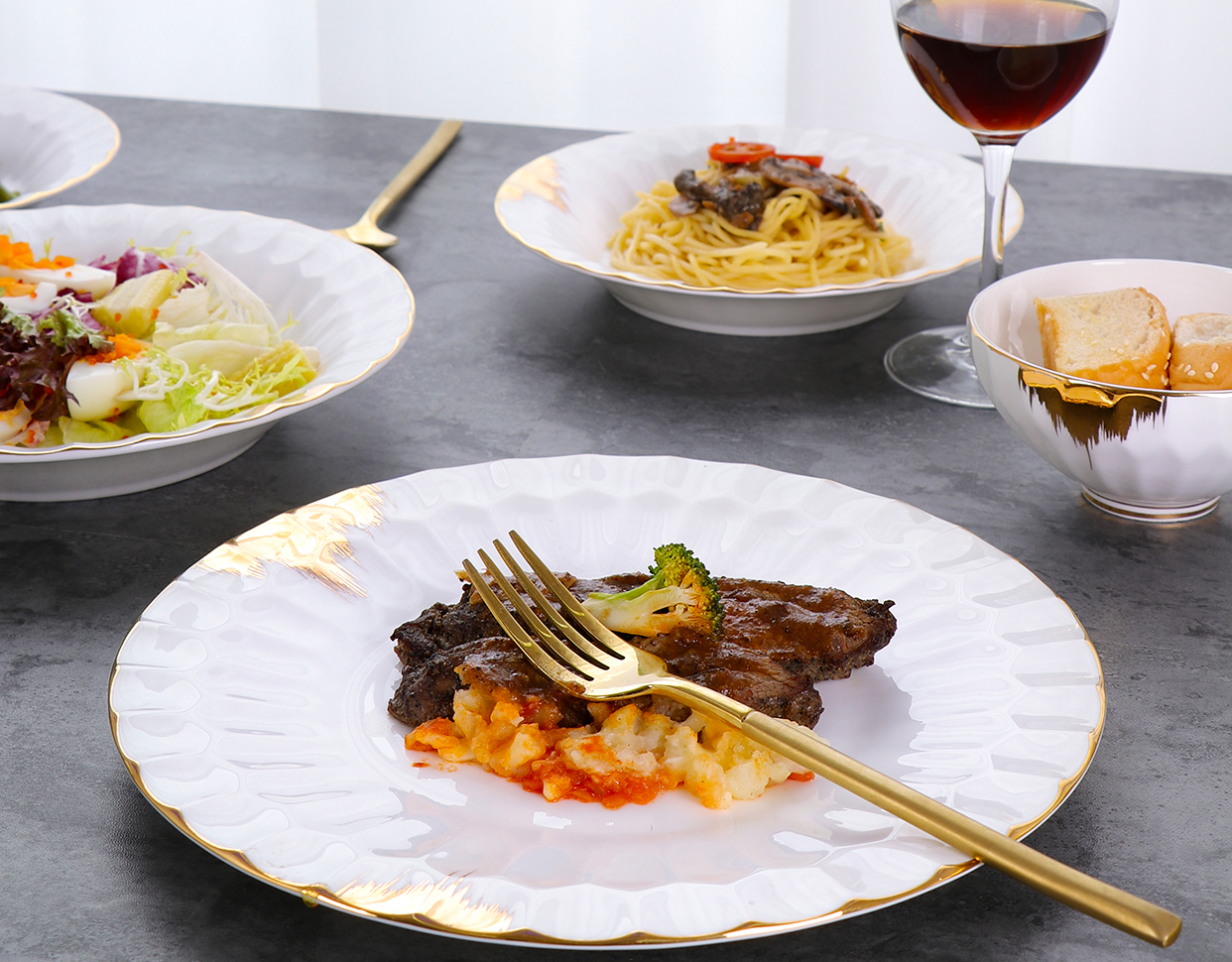 【特惠6折,仅1套,无货退款】轻奢骨瓷餐具套装欧式创意现代简约碗碟套装家用碗盘碟送礼陶瓷碗流金岁月