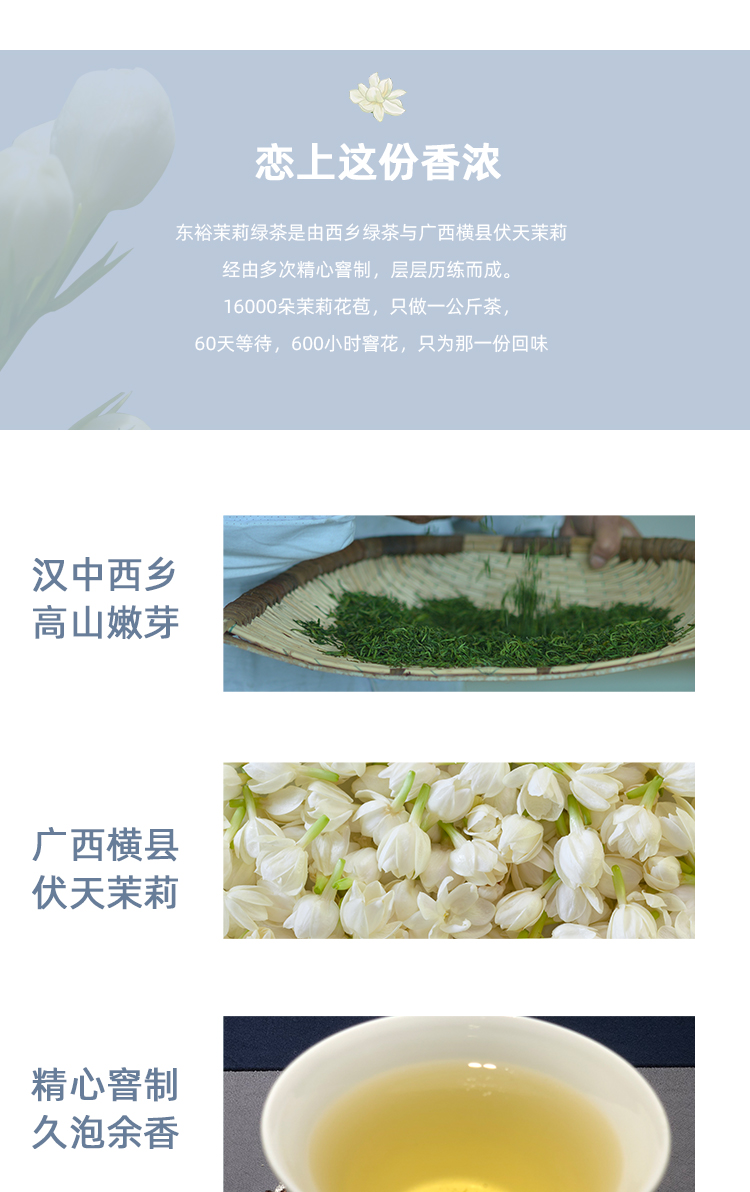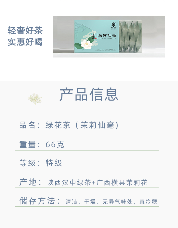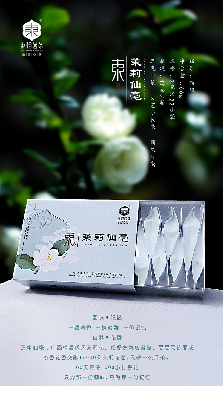 东裕茗茶茉莉仙毫66克盒装 精心窨制 久泡余香