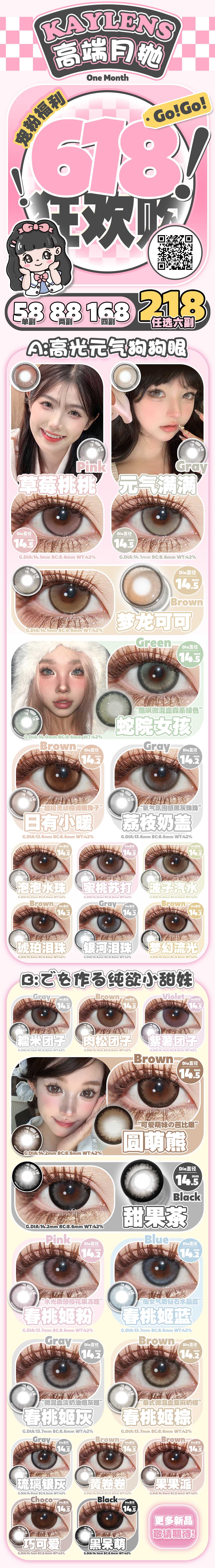 (618囤货活动)(月抛)Kaylens 58/副 88/2副 168/4副 218/6副 (0-800度 不含525/575)