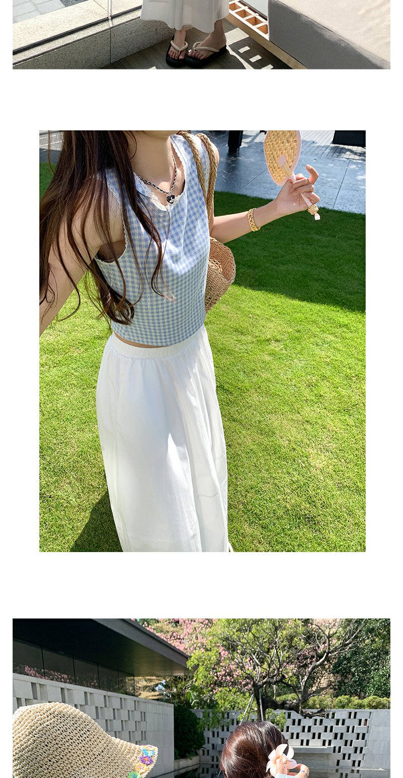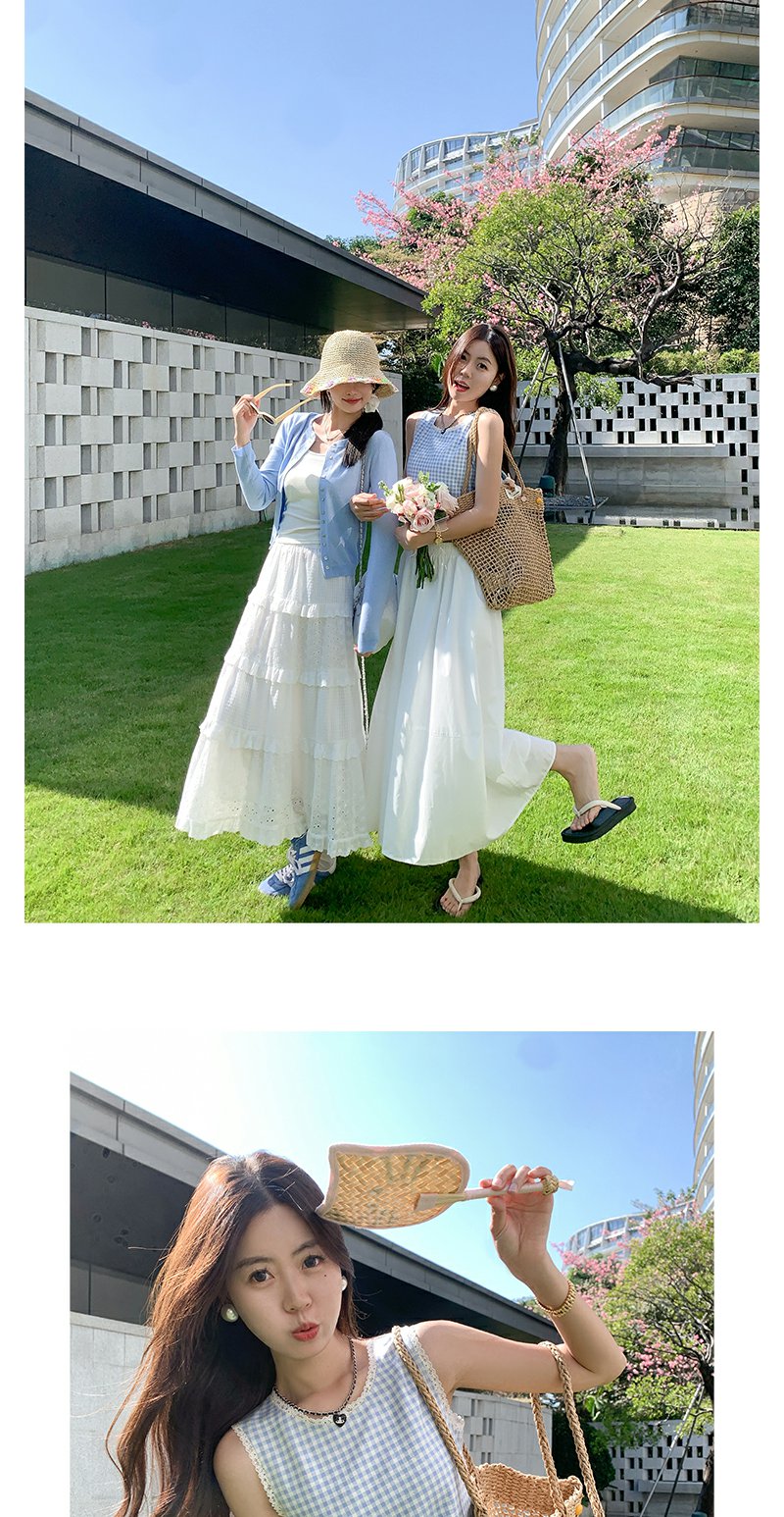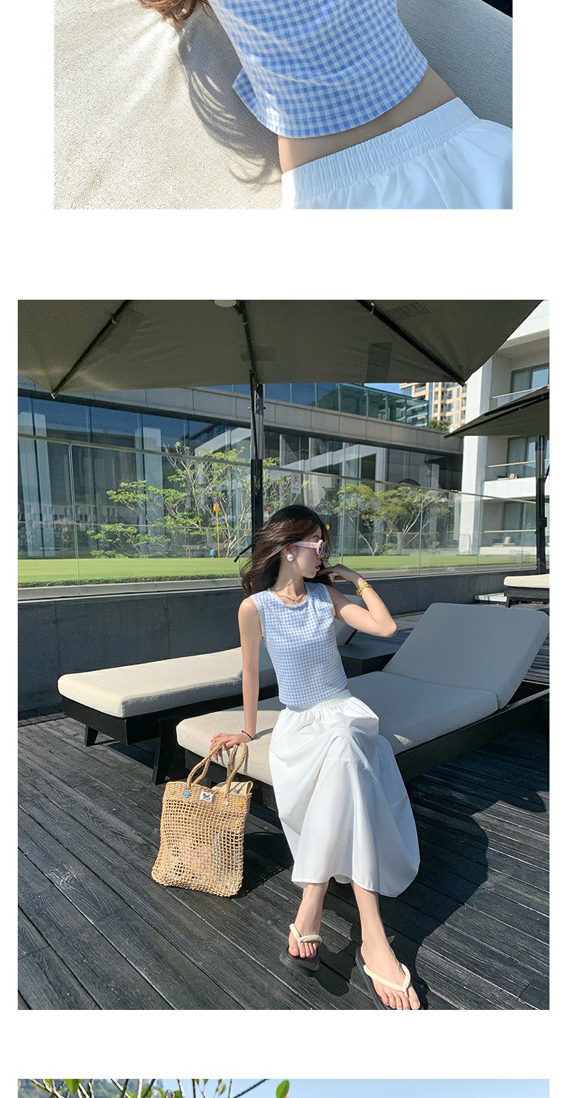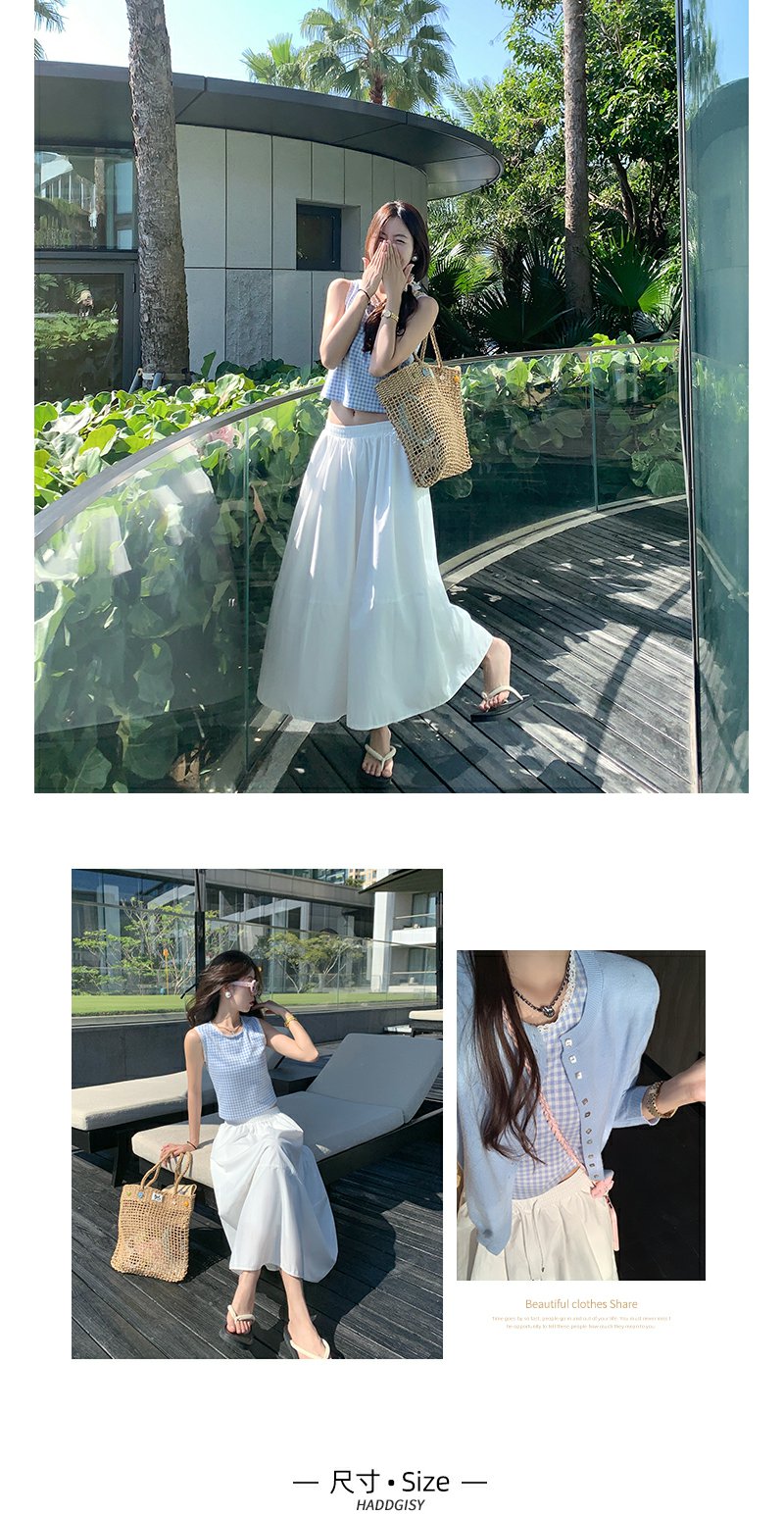 <曾小咸推荐>蓝色格子背心白色半裙蓝色开衫
