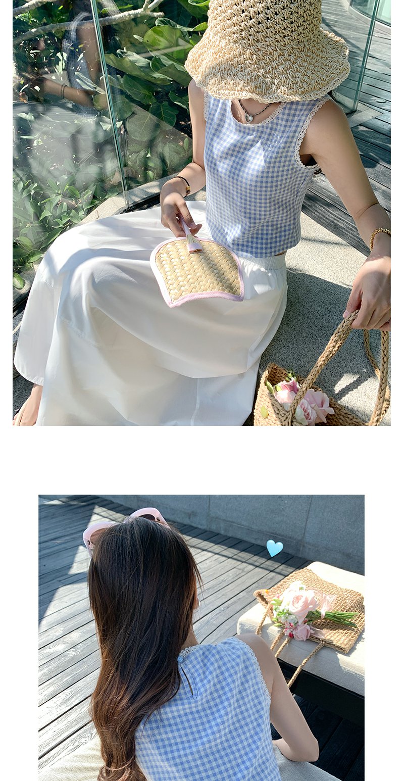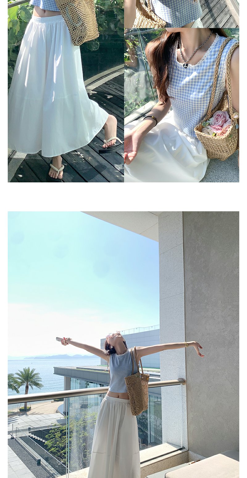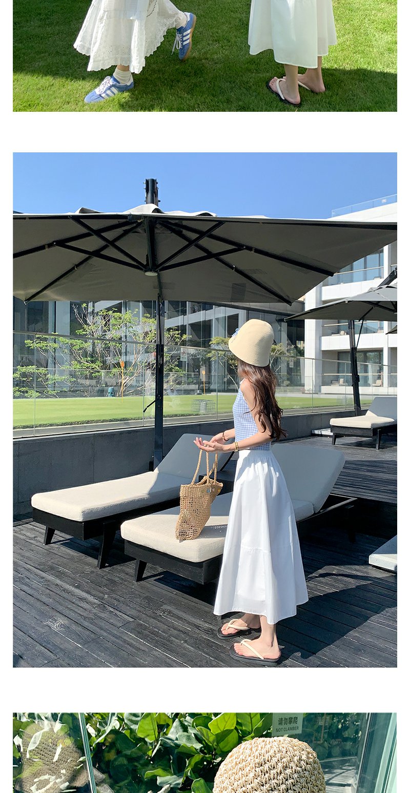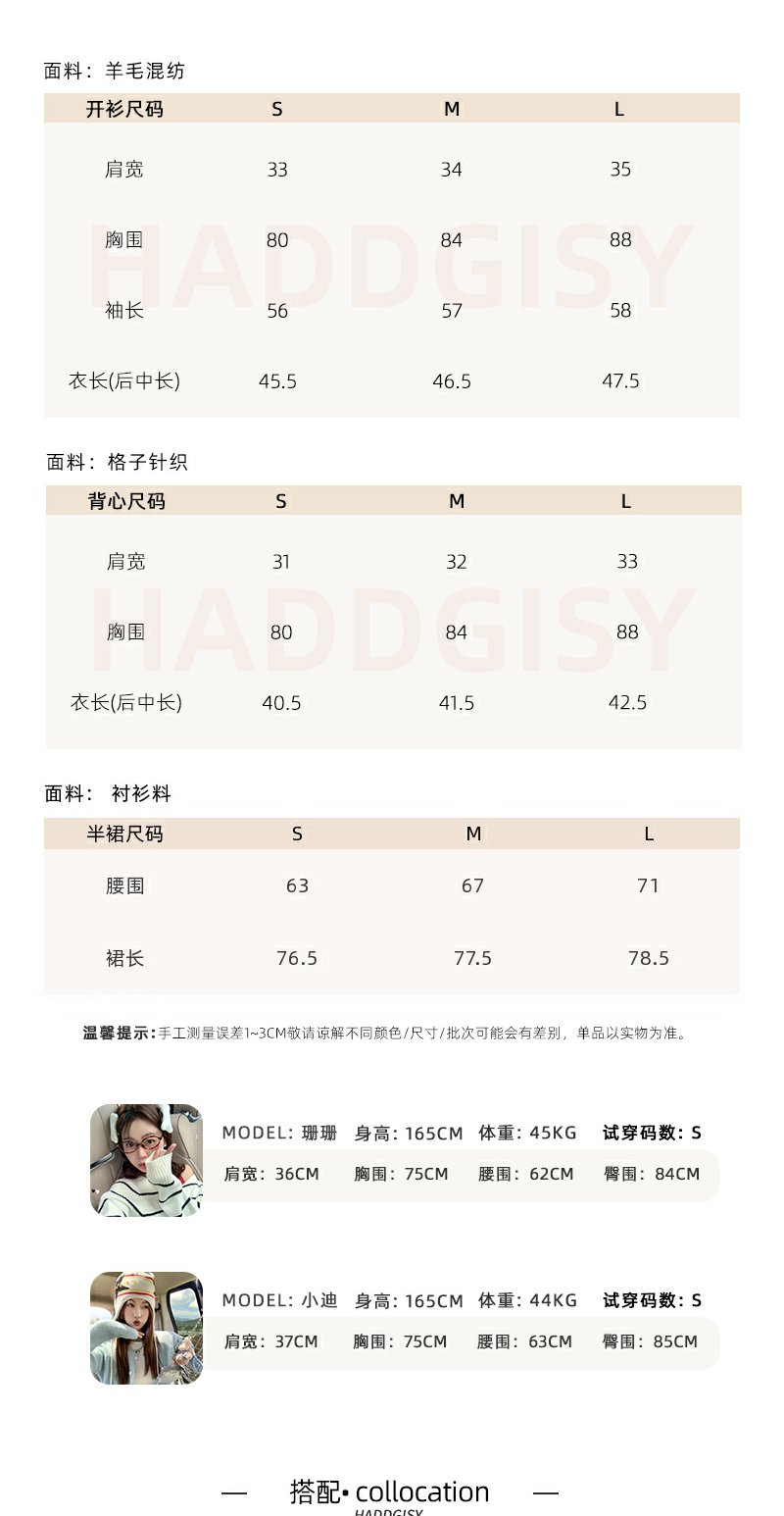 <曾小咸推荐>蓝色格子背心白色半裙蓝色开衫