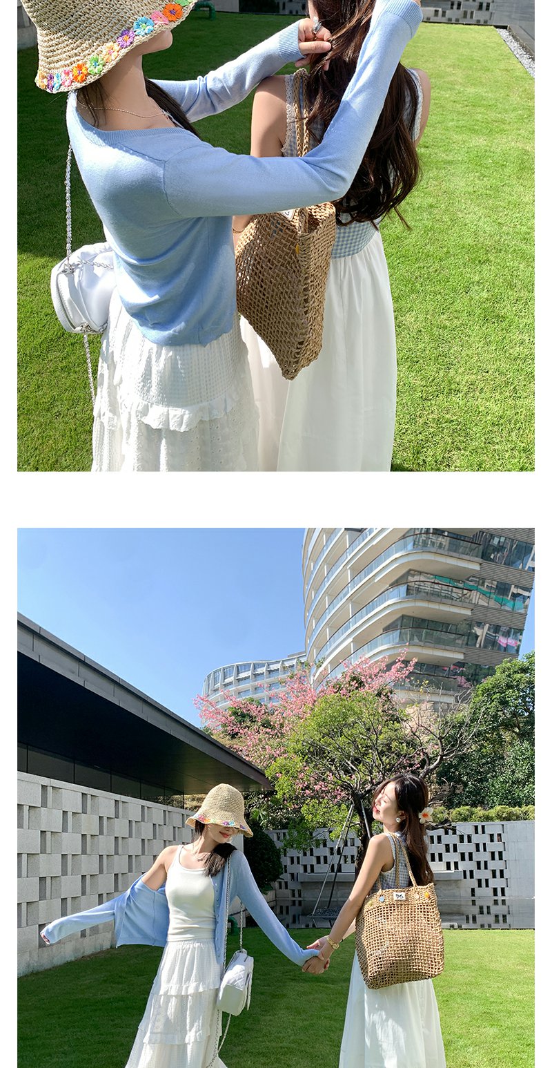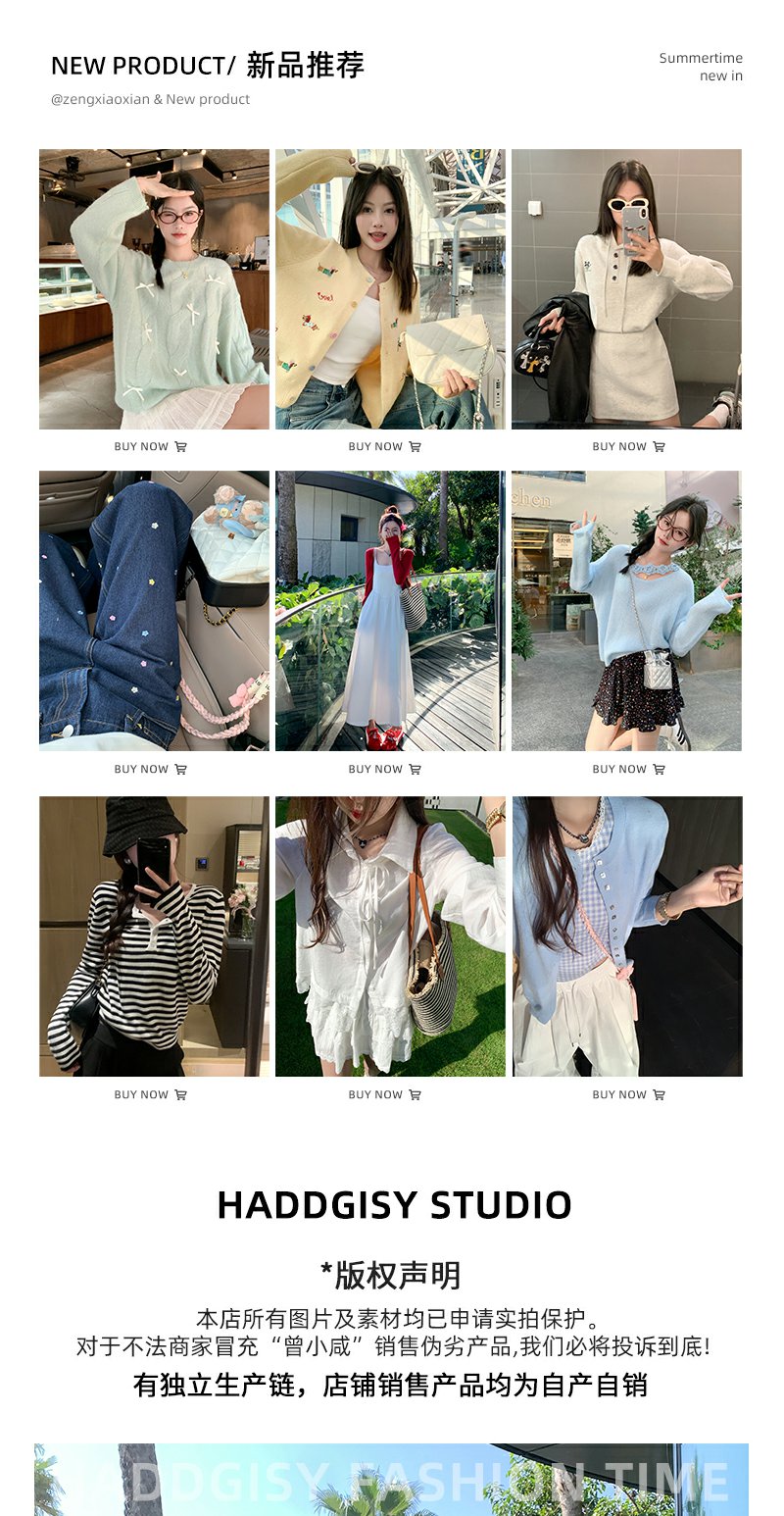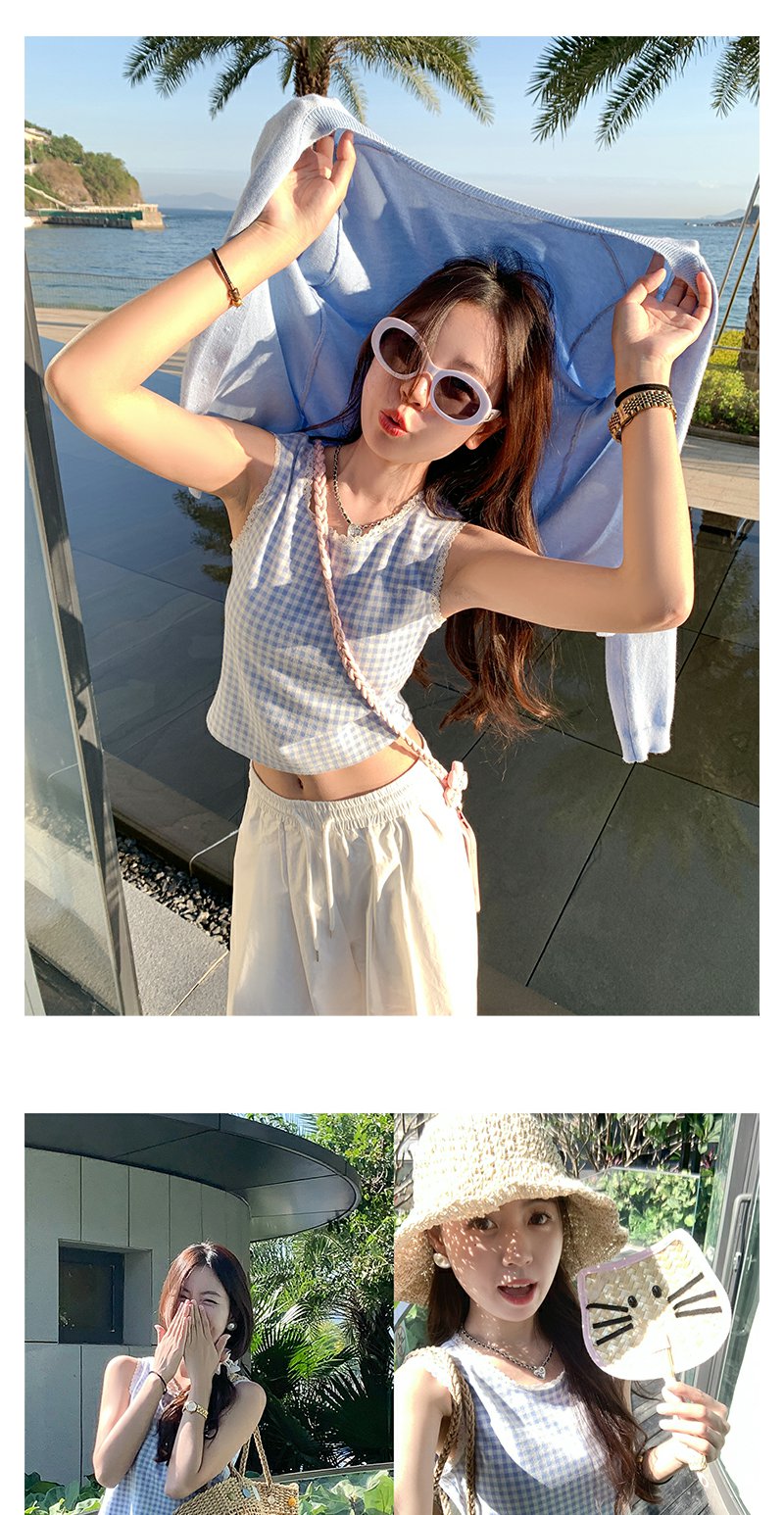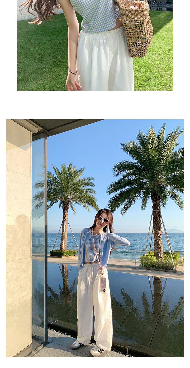<曾小咸推荐>蓝色格子背心白色半裙蓝色开衫