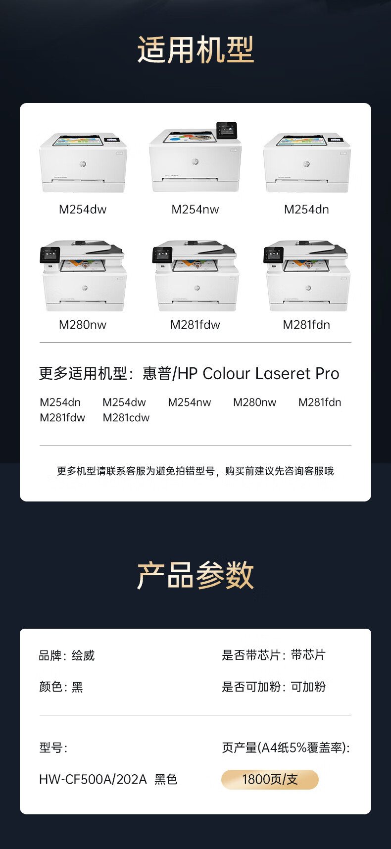 绘威臻享版202a硒鼓cf500a适用惠普281fdw硒鼓 m254dw打印机墨盒m281fdw m280nw粉盒带芯片黑色
