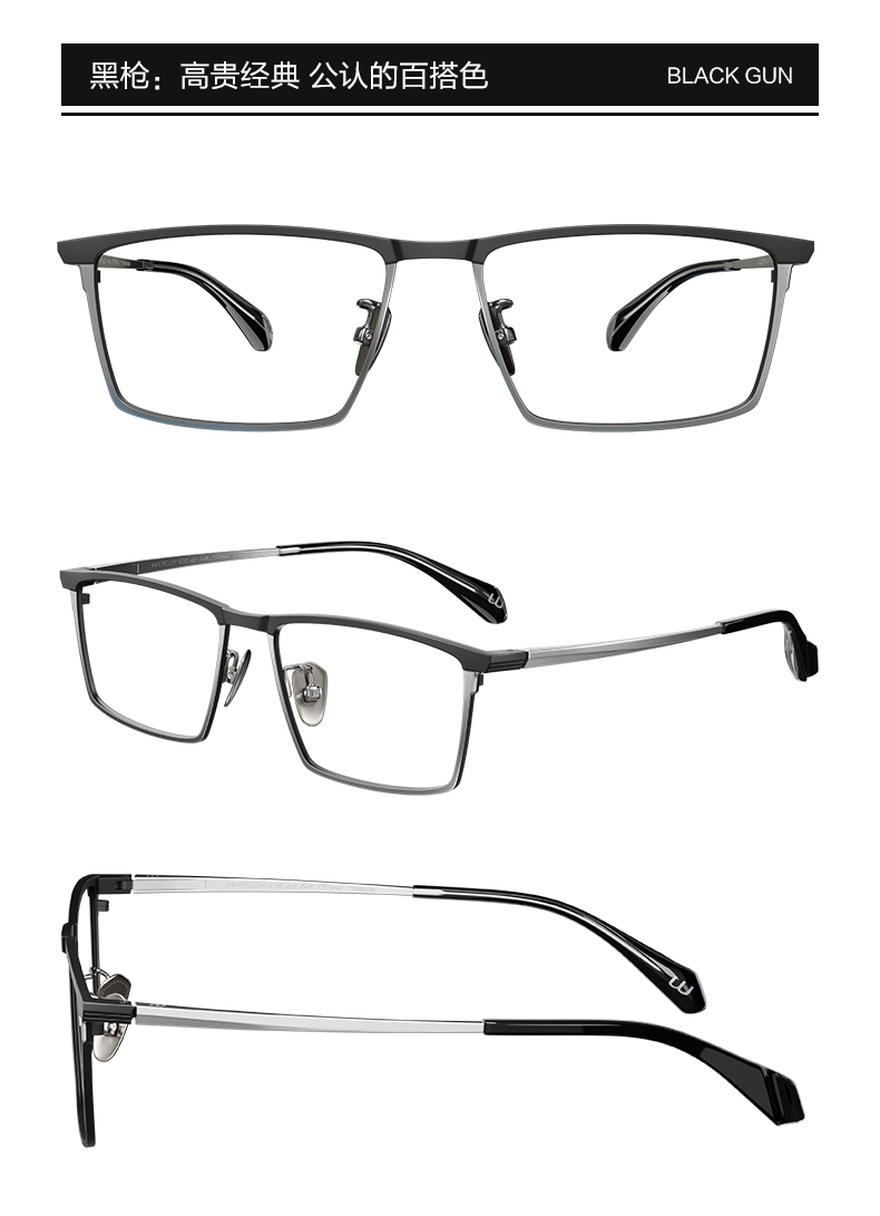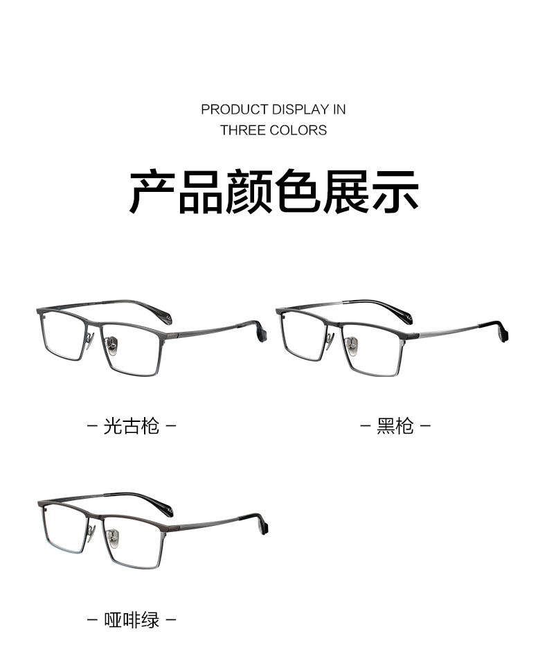 普莱斯光学镜框B8567 经典全框 半钛材质 舒适鼻托 稳固桩头 复古休闲 三色可选