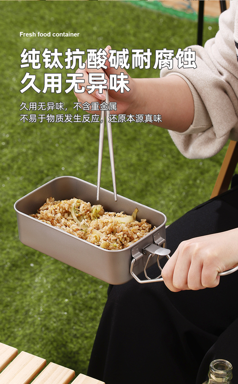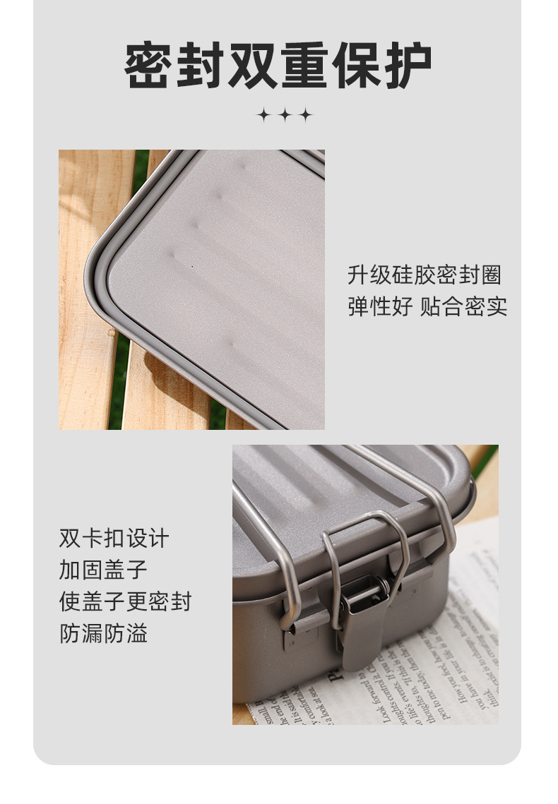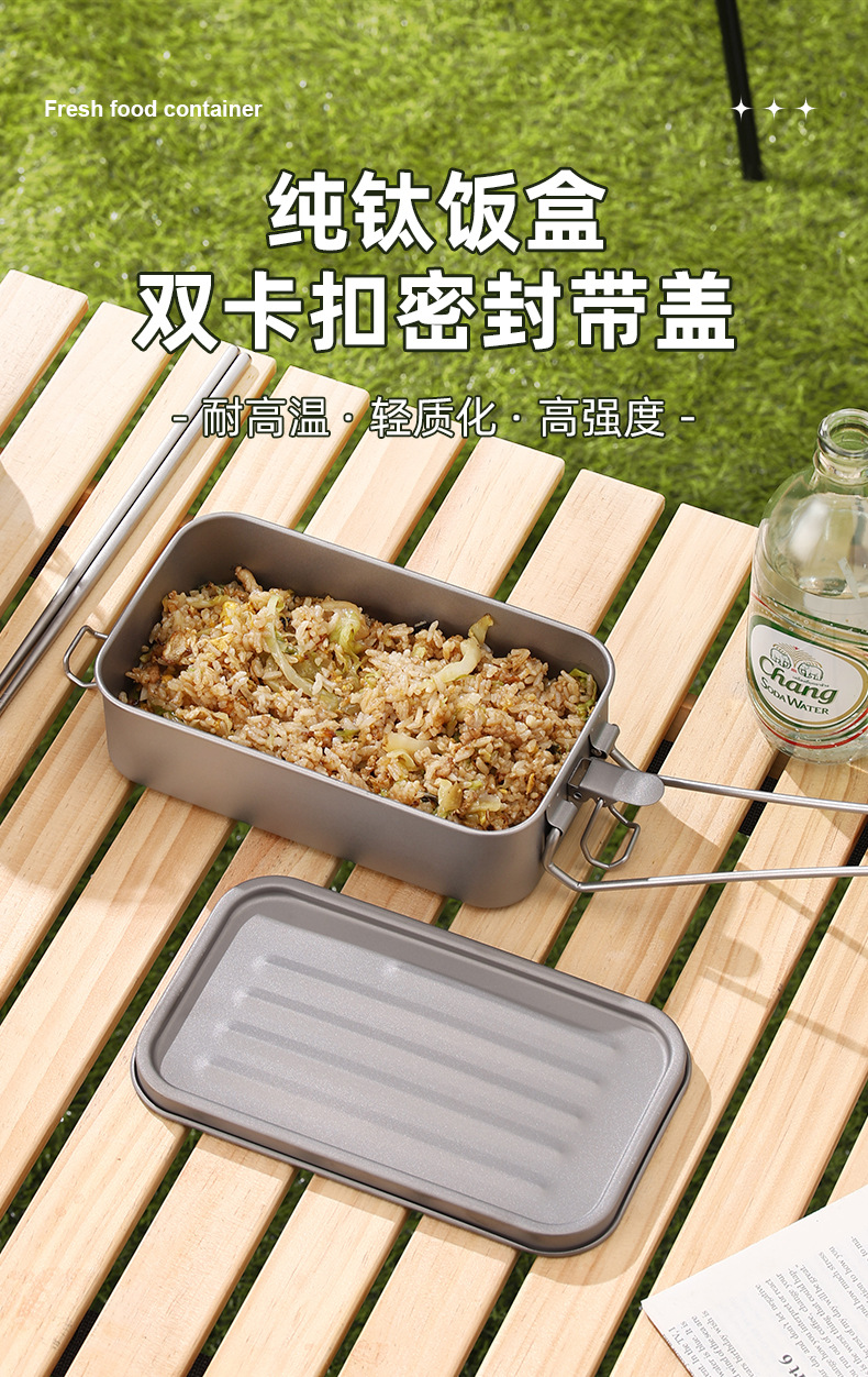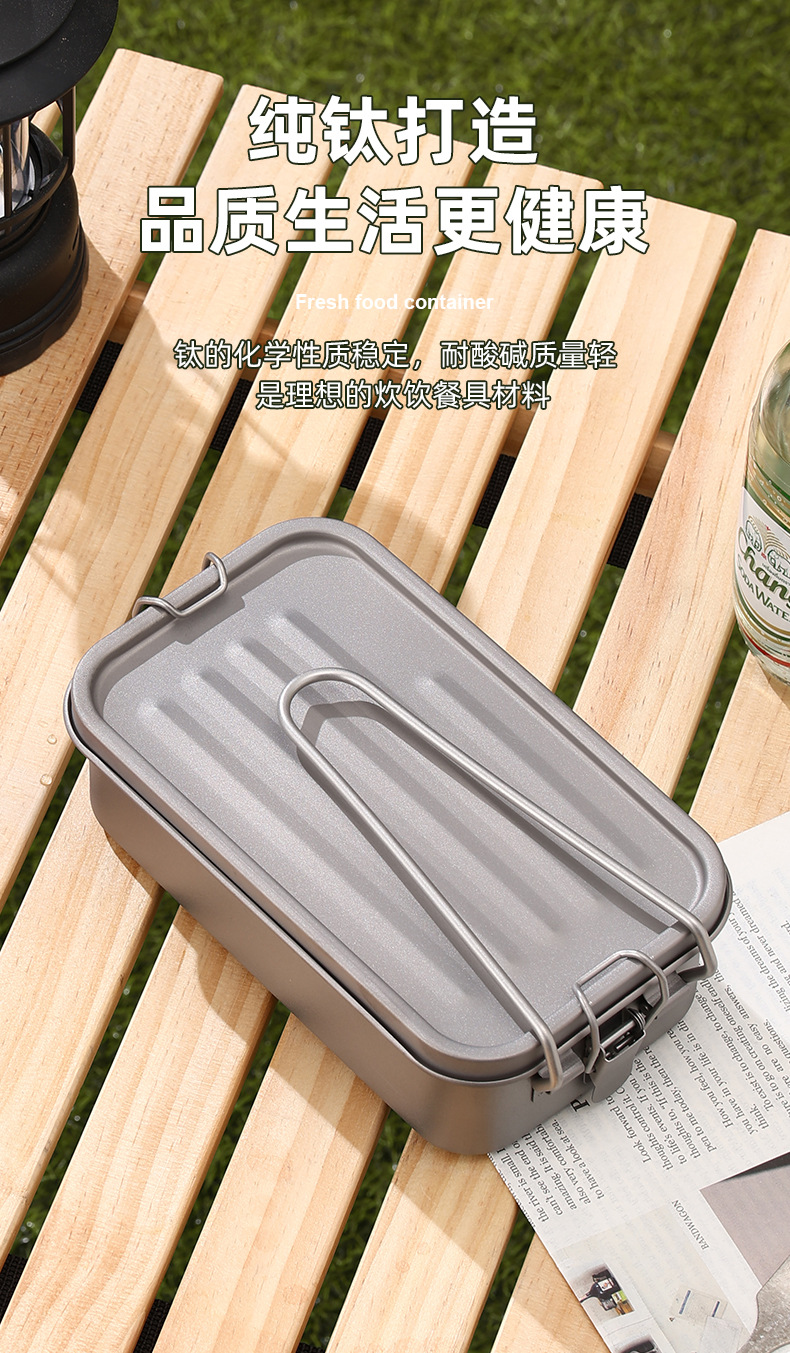 【纯钛户外密封盒】纯钛户外饭盒密封野营便当盒学生餐盒午餐盒野餐盒便携餐具叉勺筷