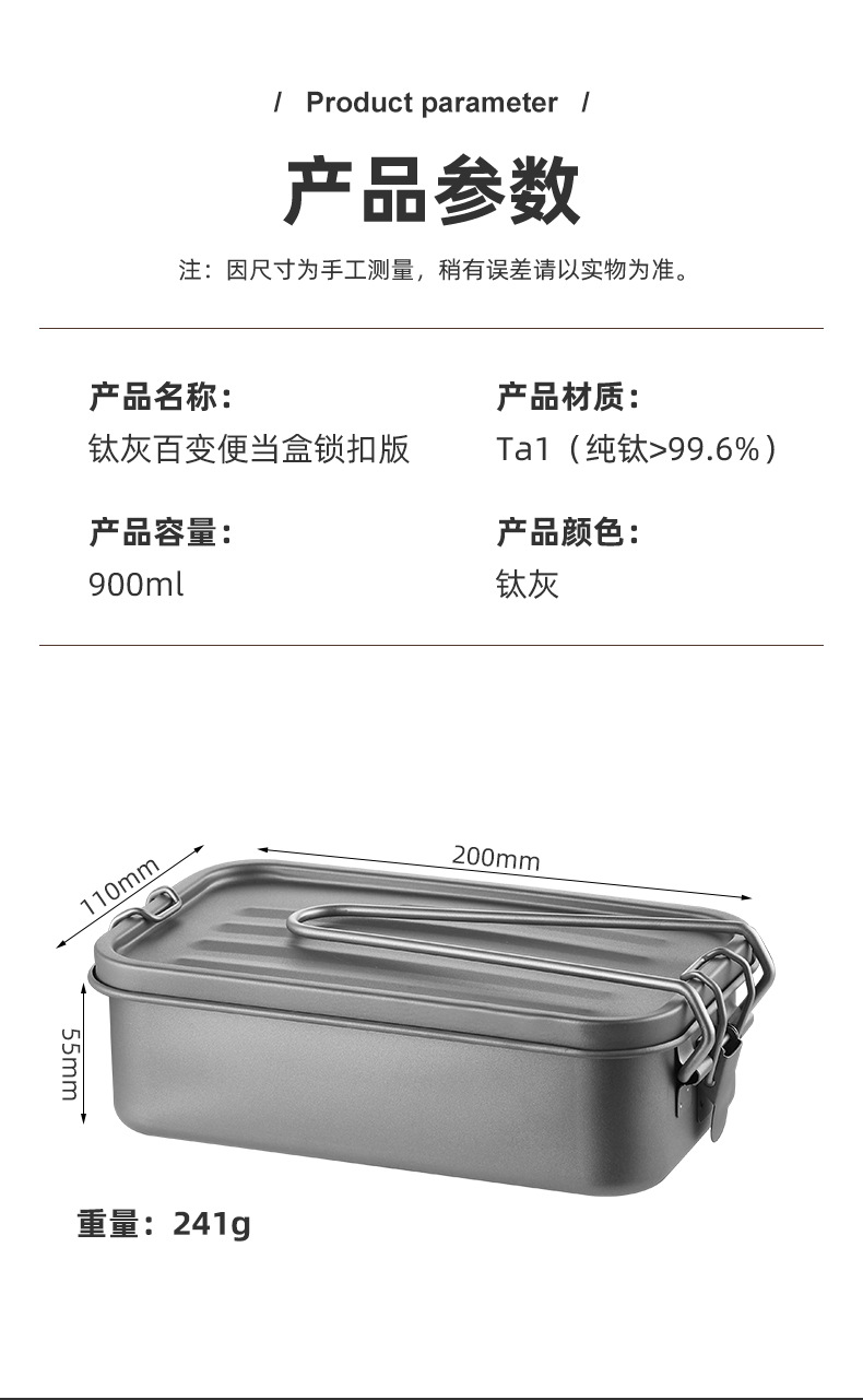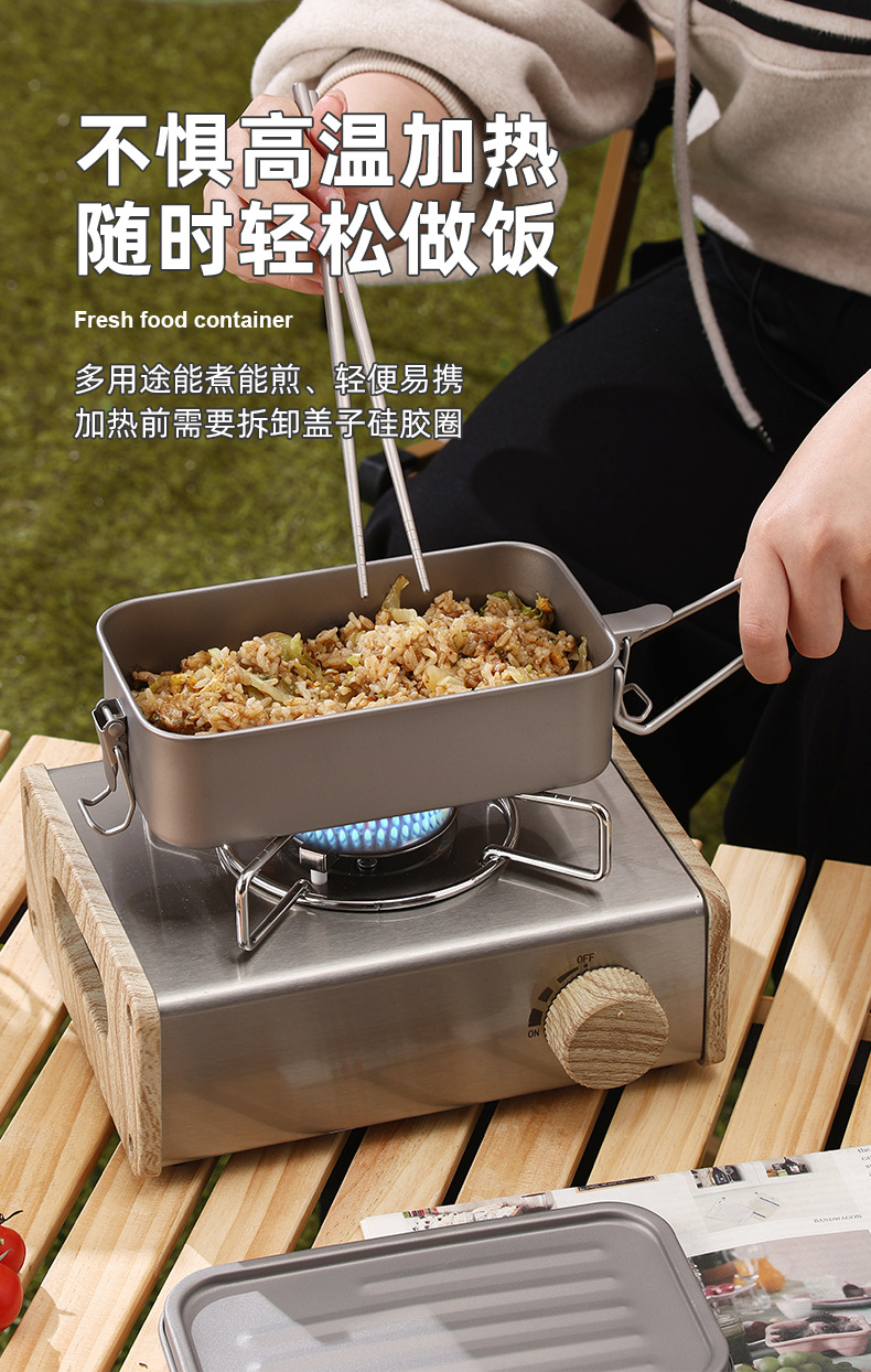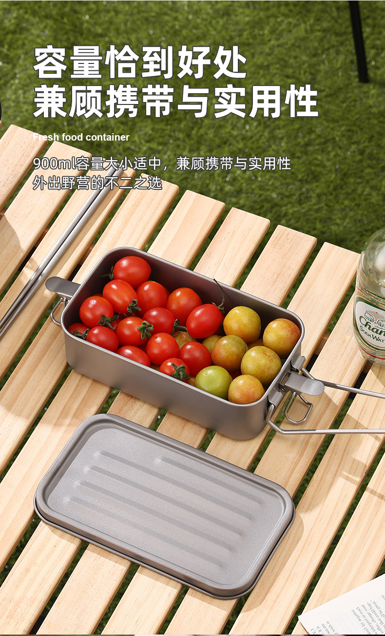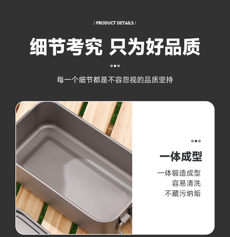【纯钛户外密封盒】纯钛户外饭盒密封野营便当盒学生餐盒午餐盒野餐盒便携餐具叉勺筷