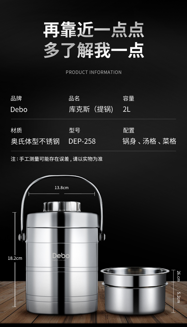 Debo德铂库克斯提锅不锈钢三层保温桶超大容量高档饭盒便当食格