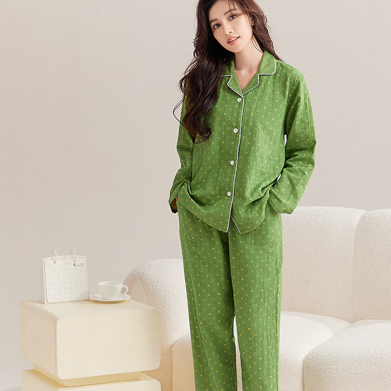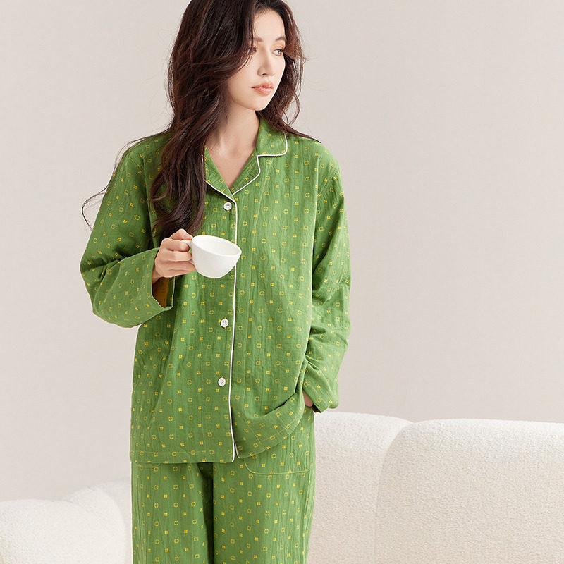 日式无印全棉双层纱家居服良品睡衣纯棉居家服女士四季套装花妍系
