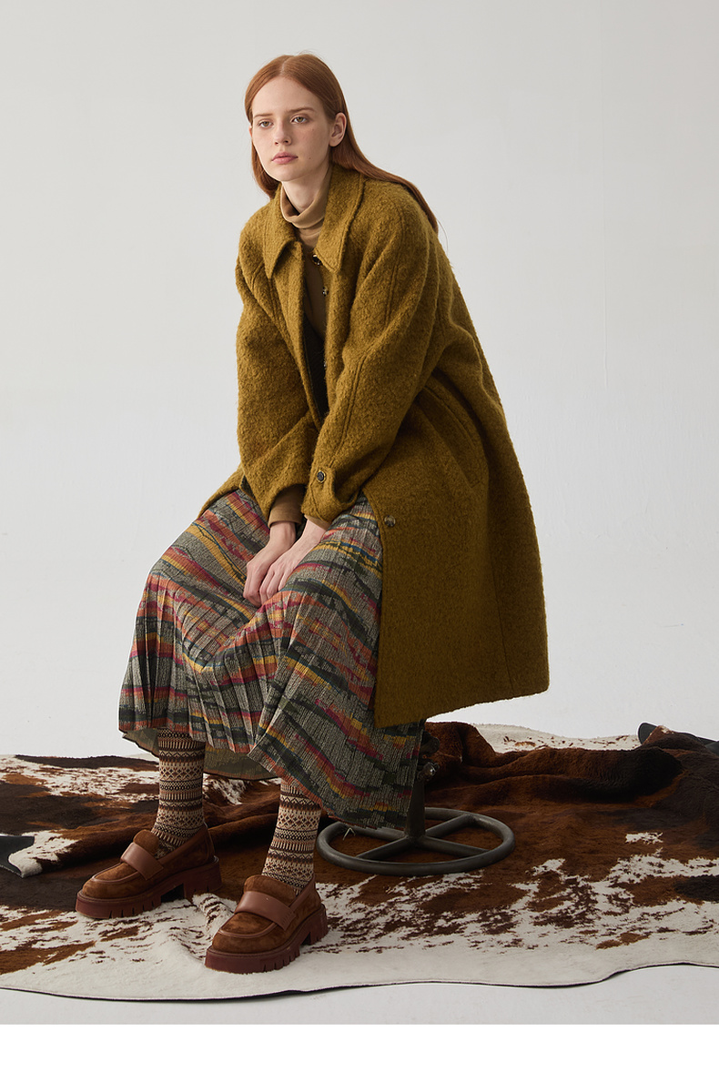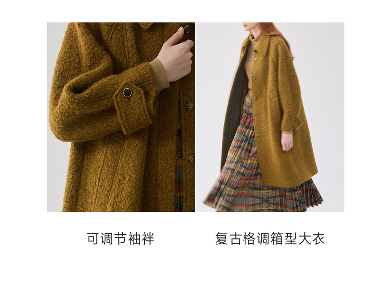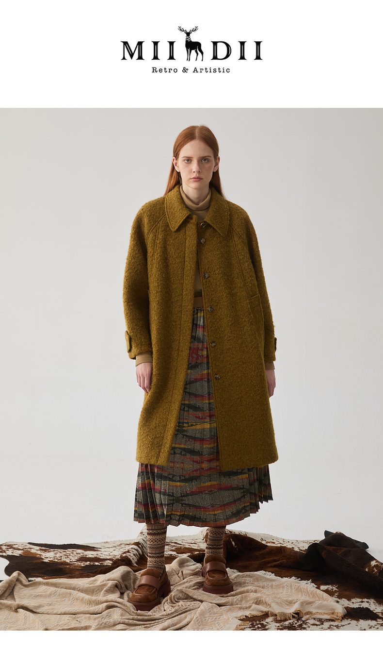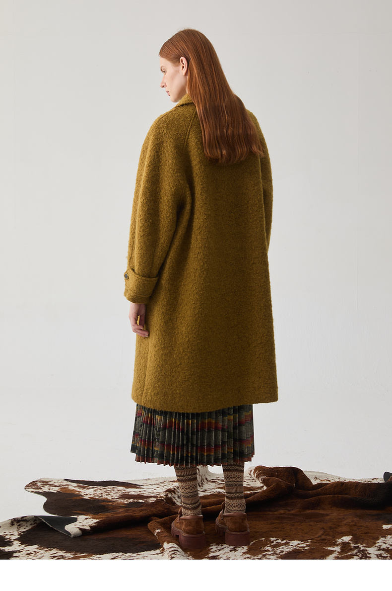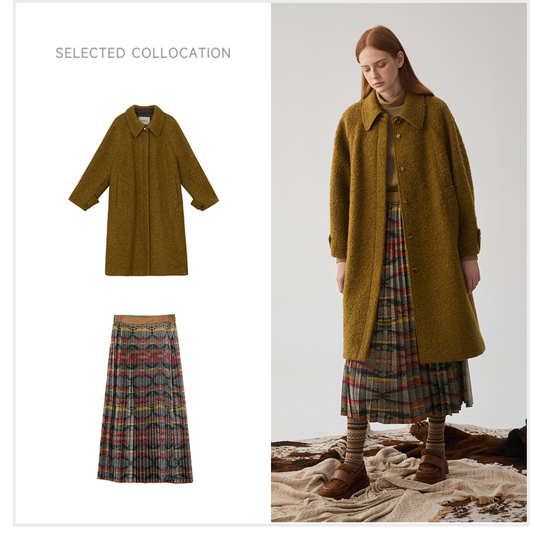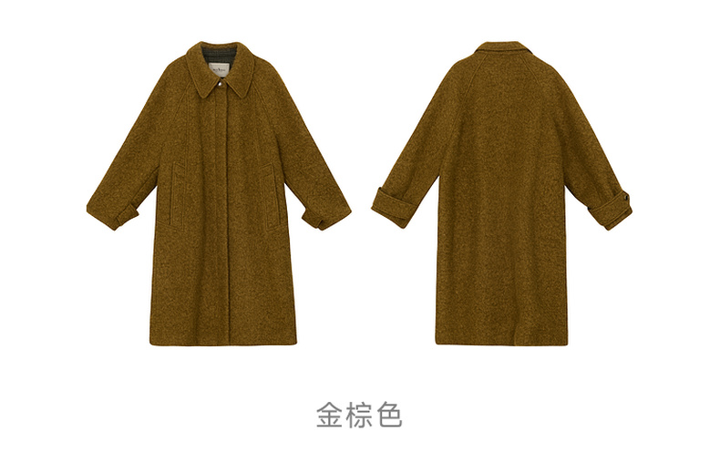 谜底翻领毛呢大衣女2024冬新品复古风金棕色大廓形呢子244MD1517