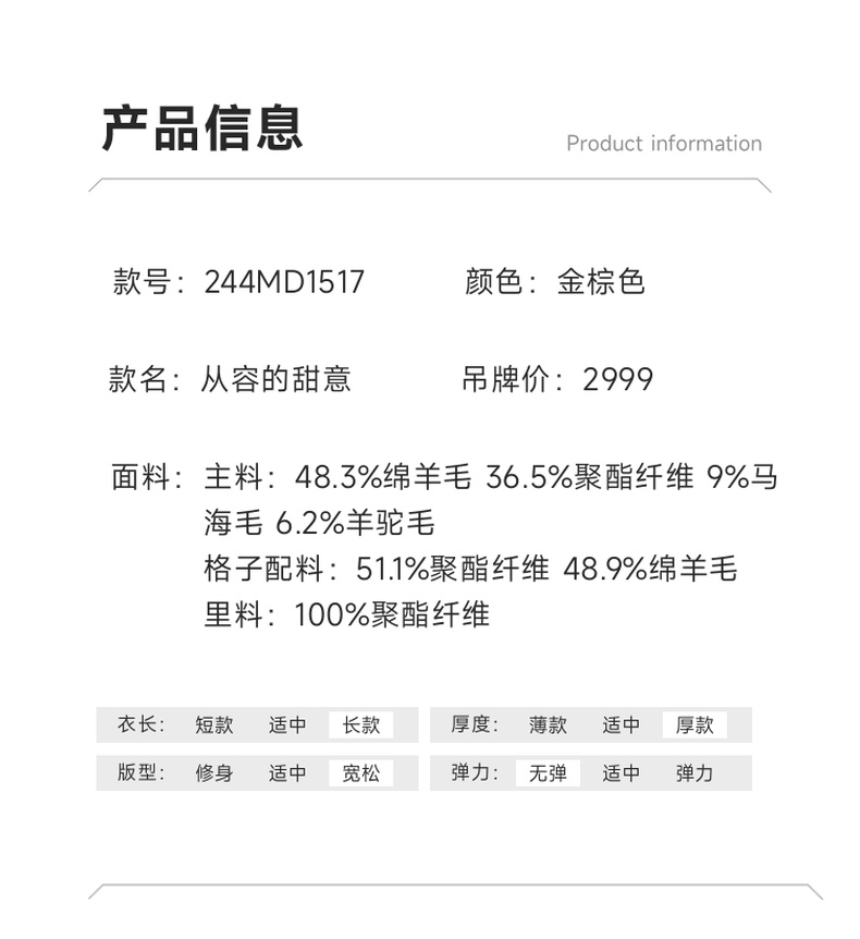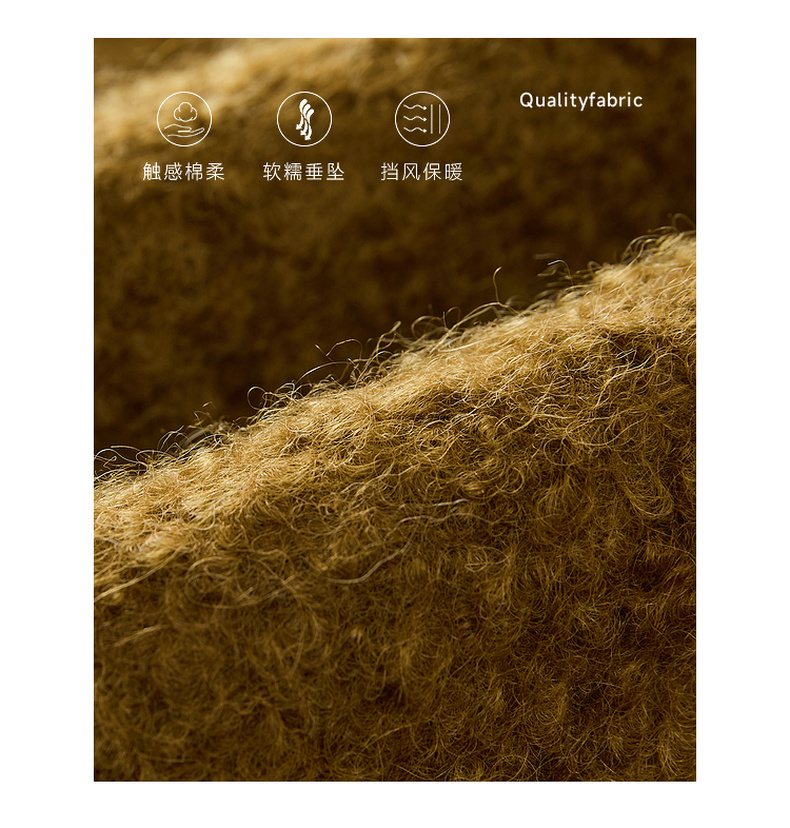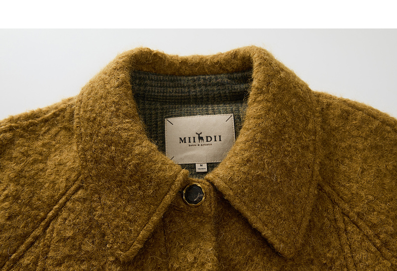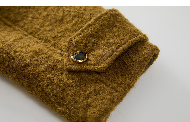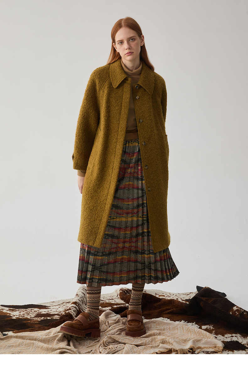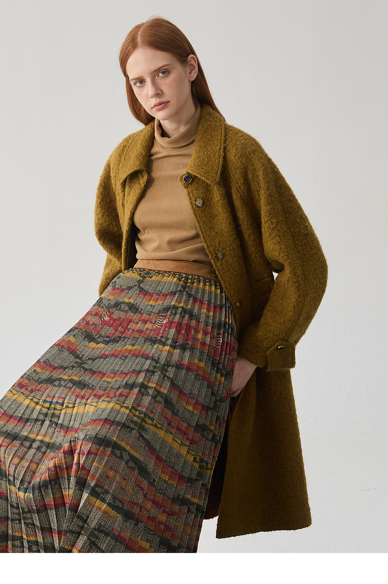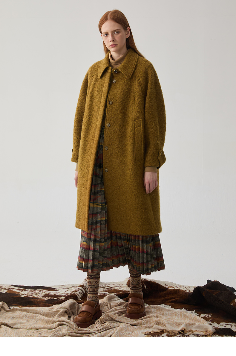 谜底翻领毛呢大衣女2024冬新品复古风金棕色大廓形呢子244MD1517