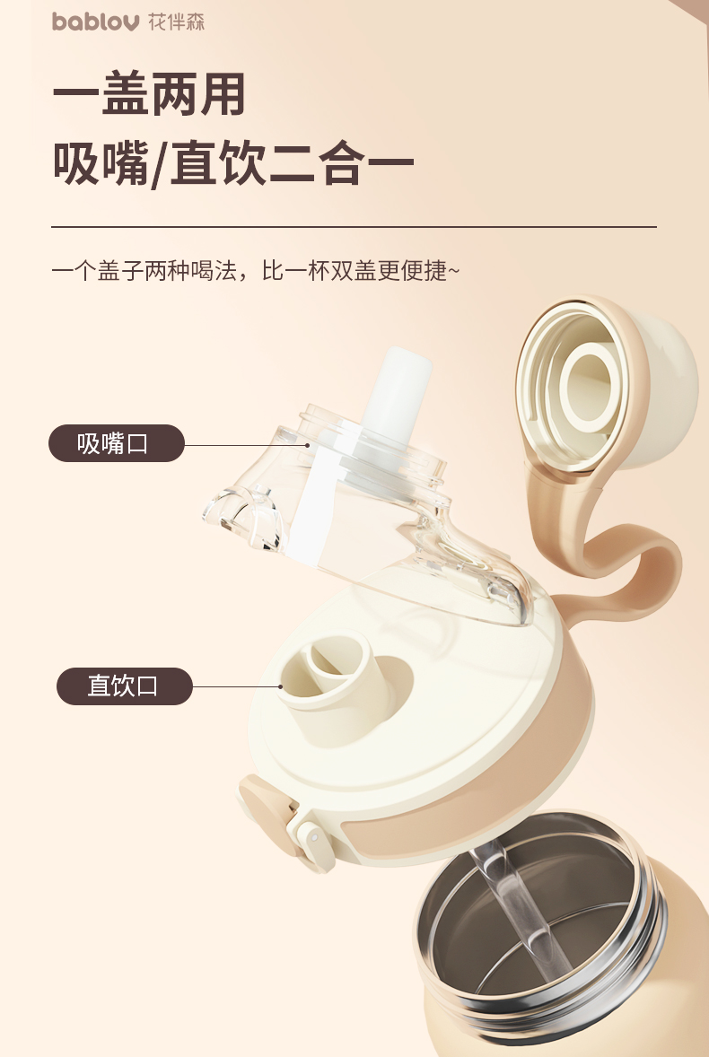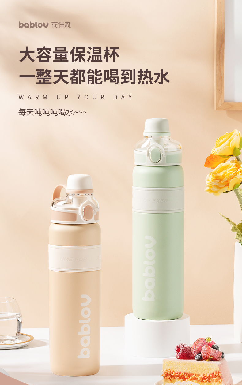 bablov大容量保温杯女学生水杯子儿童带吸管316不锈钢水壶高颜值