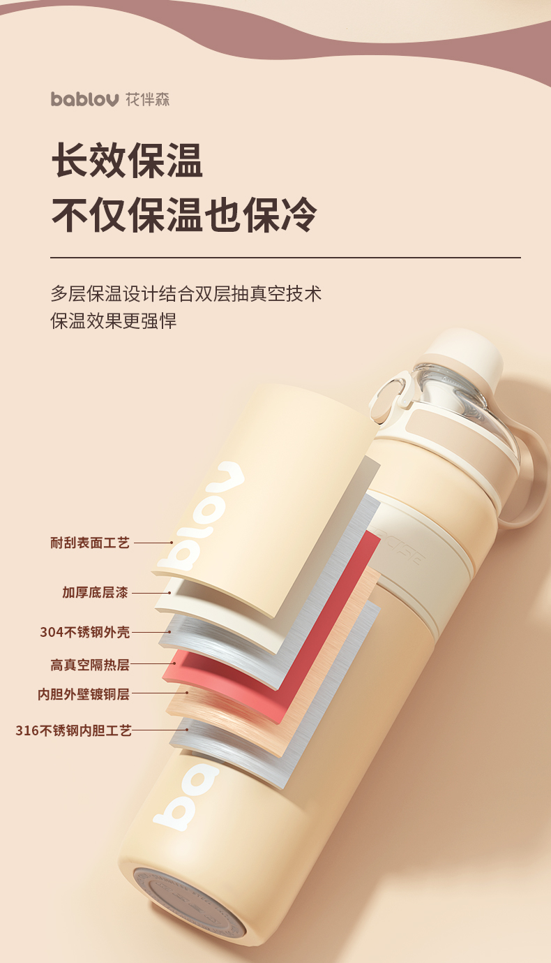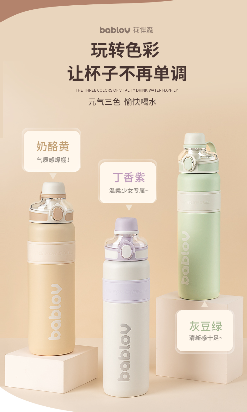 - BABLOV关注中国人的饮水健康,更不断探索未知可能性,专注于新生代自我个性表达,创造玩味新潮的产品体系。希望将水杯带入Z世代年轻人的生活,传递更多“饮”响力。