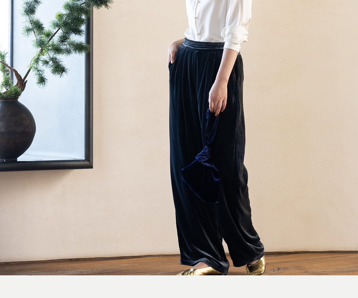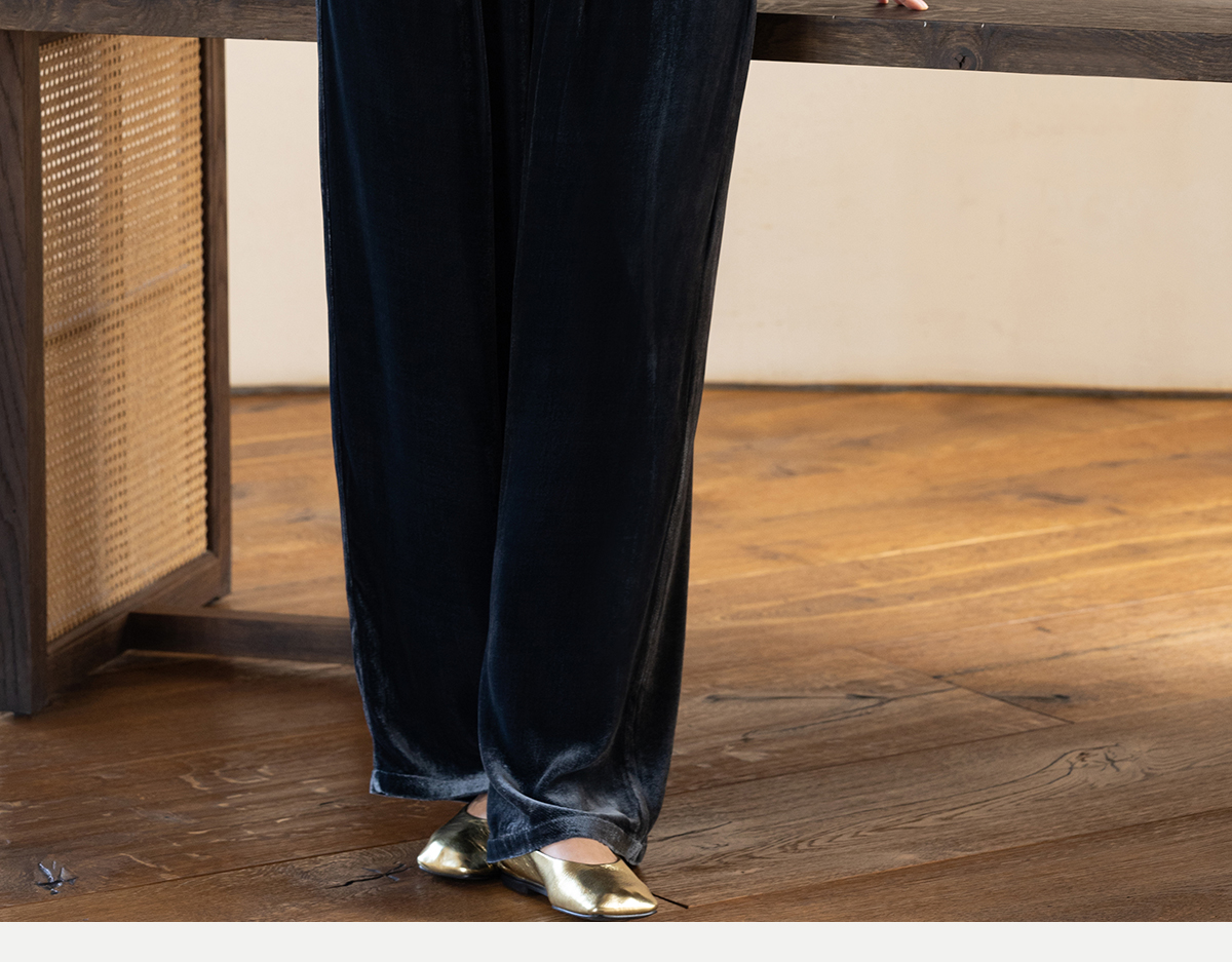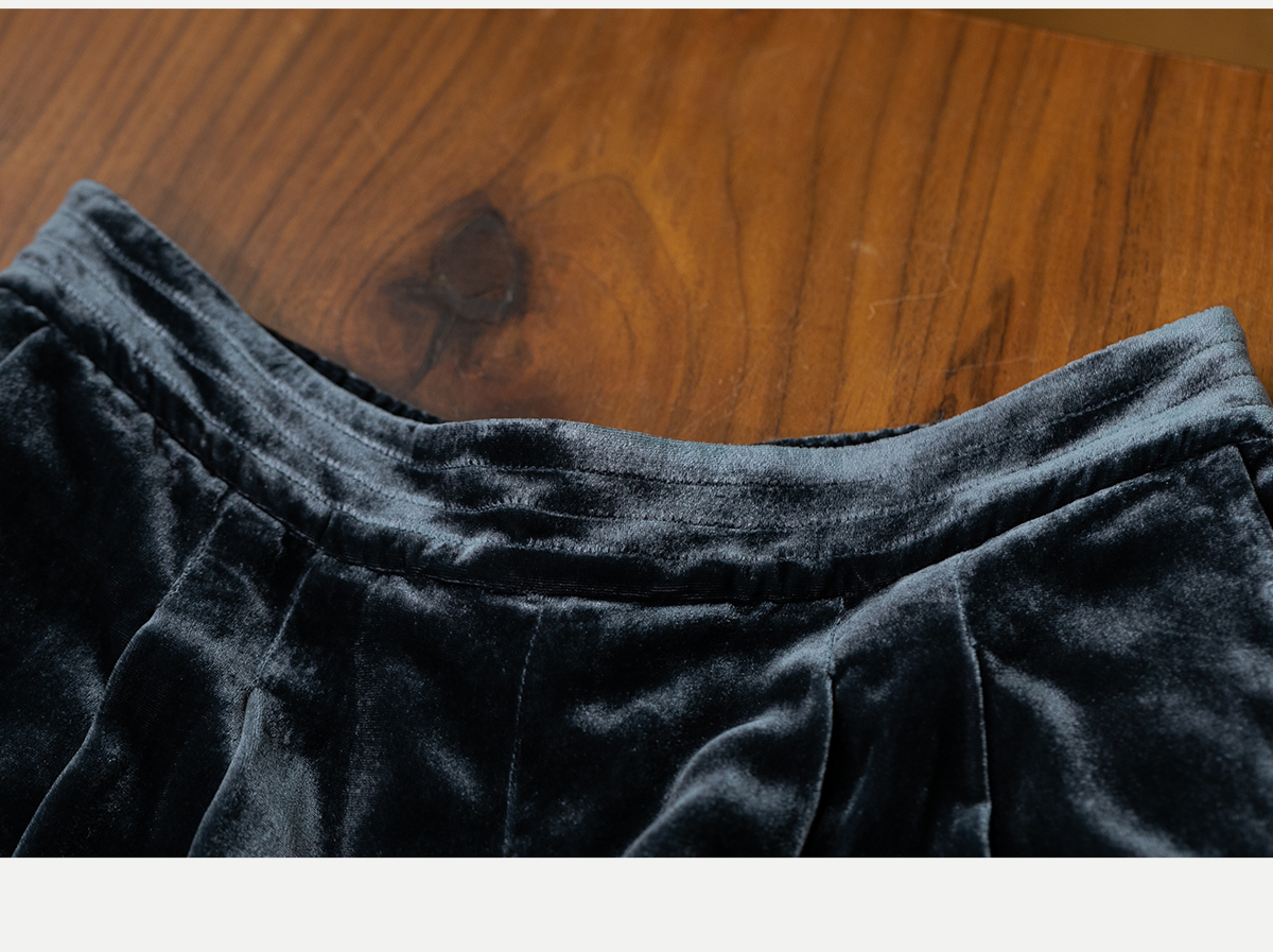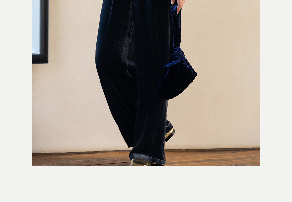 牧衣游原创 丝绒净色休闲长裤新款垂感显瘦蓝色宽松百搭裤子 今喜