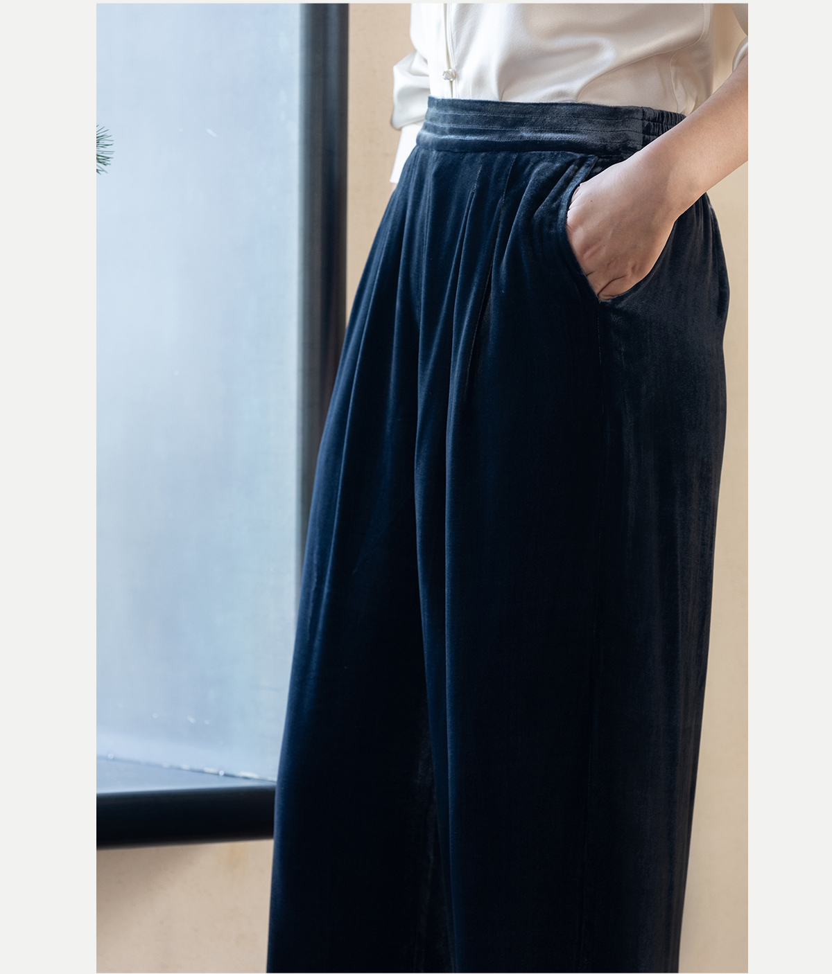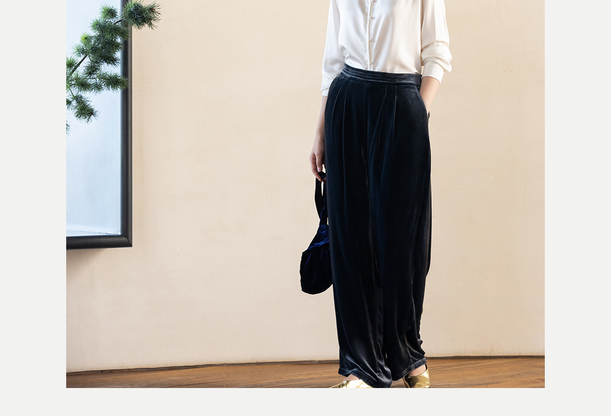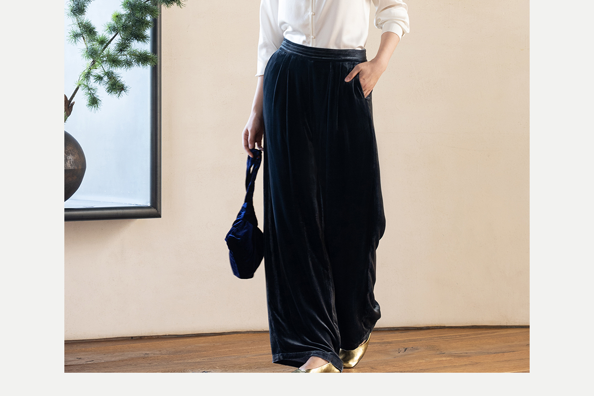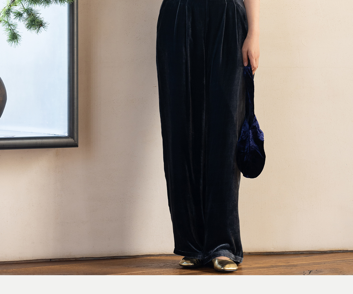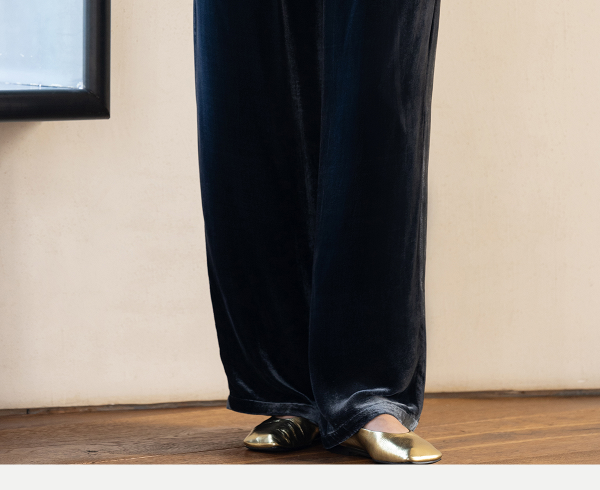 牧衣游原创 丝绒净色休闲长裤新款垂感显瘦蓝色宽松百搭裤子 今喜
