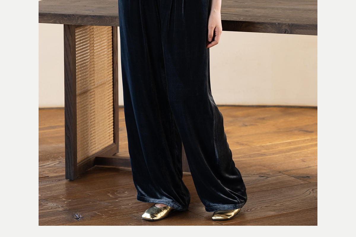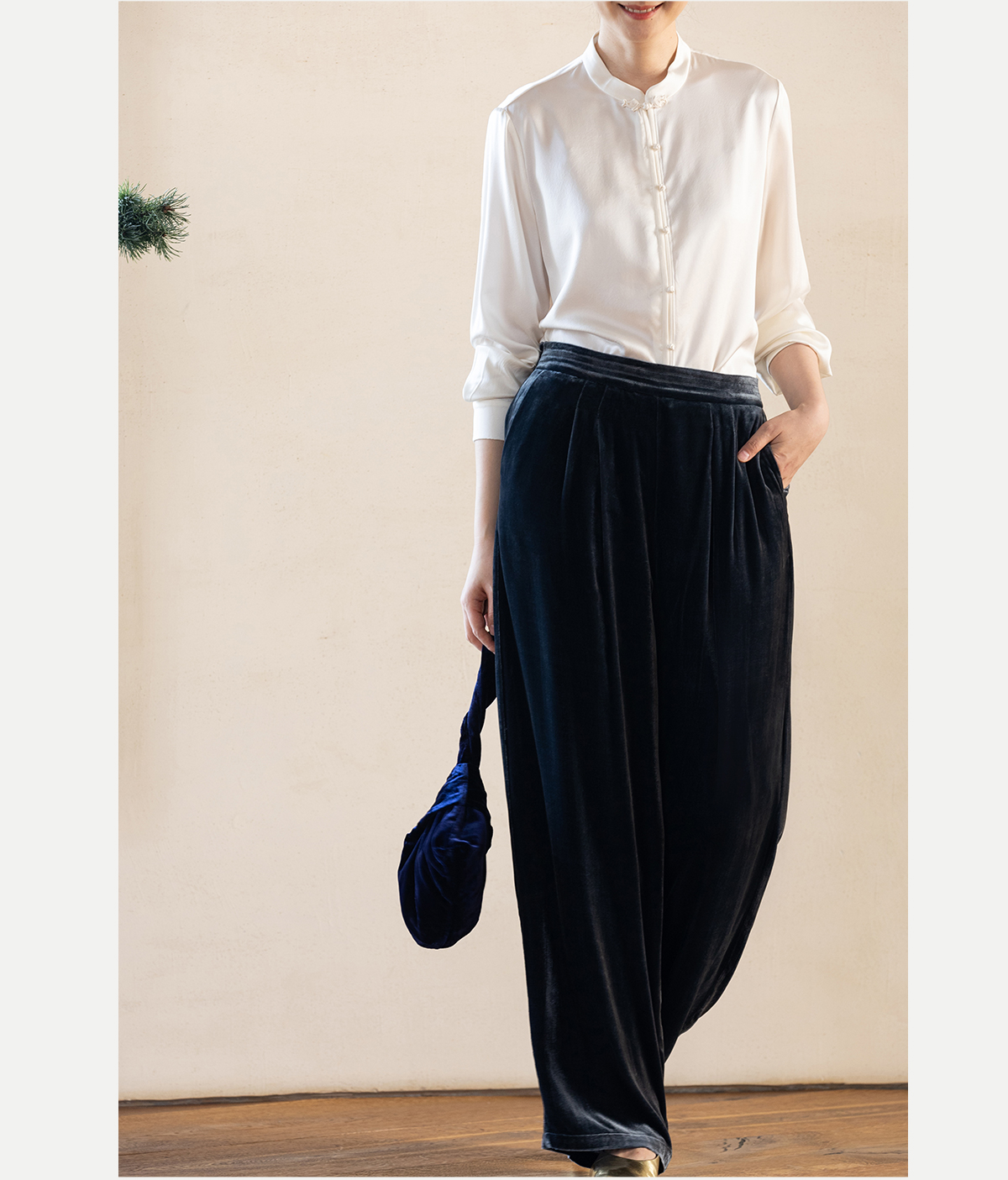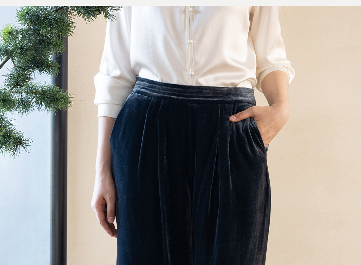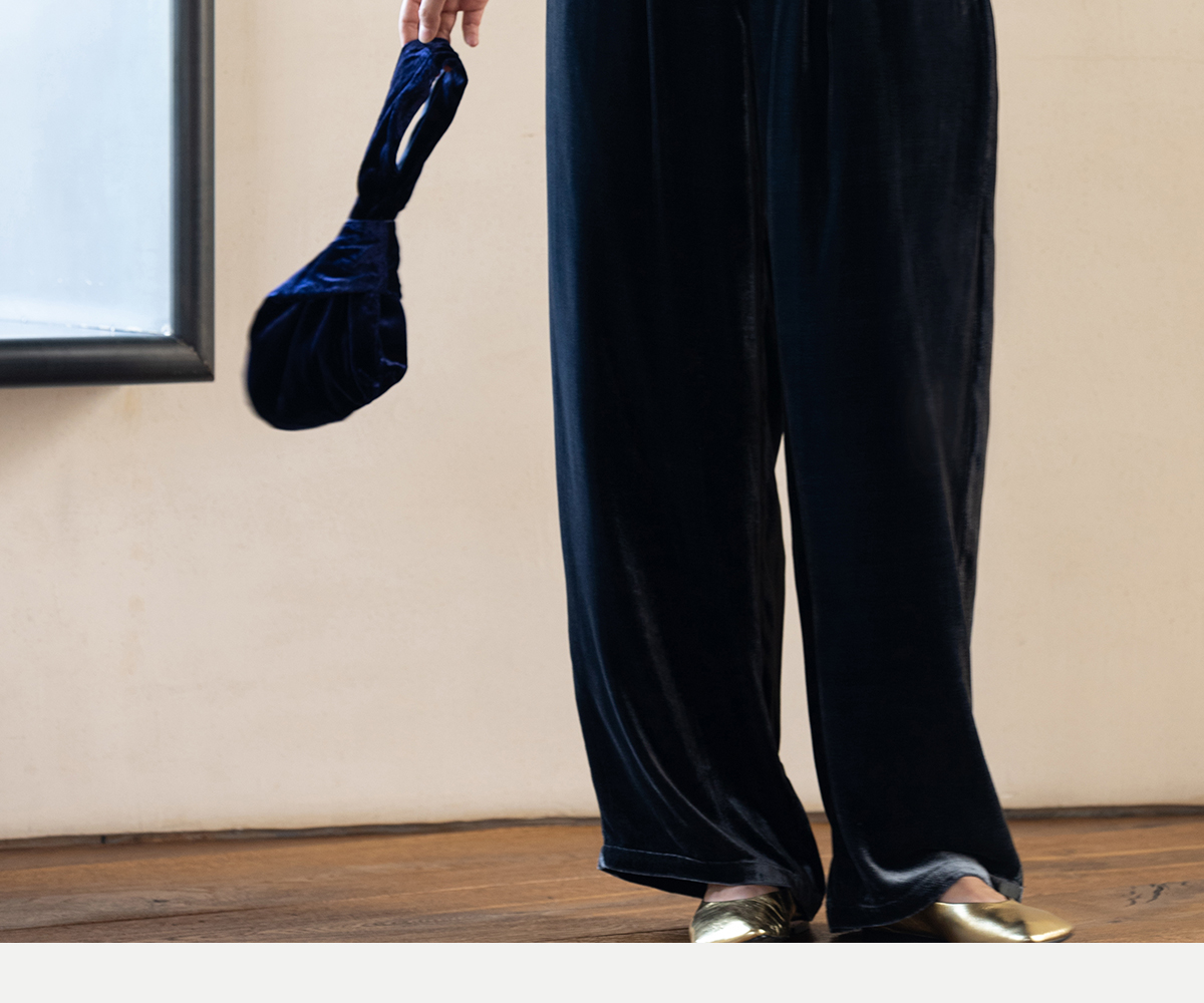 牧衣游原创 丝绒净色休闲长裤新款垂感显瘦蓝色宽松百搭裤子 今喜