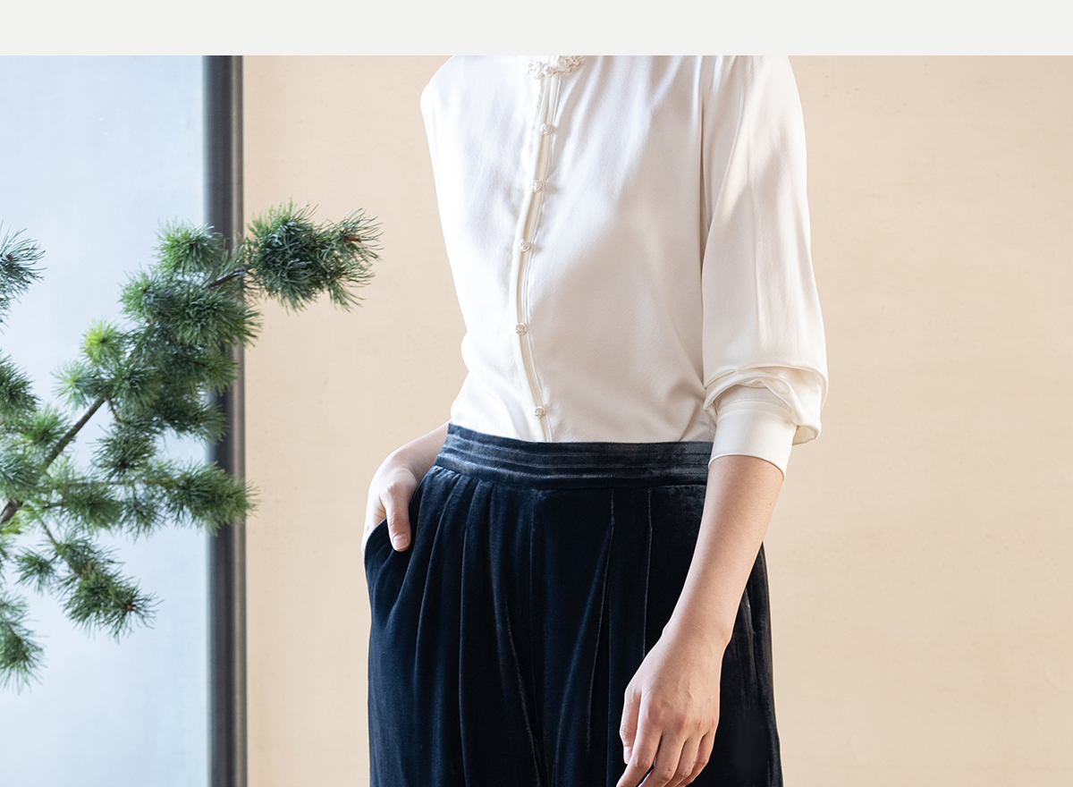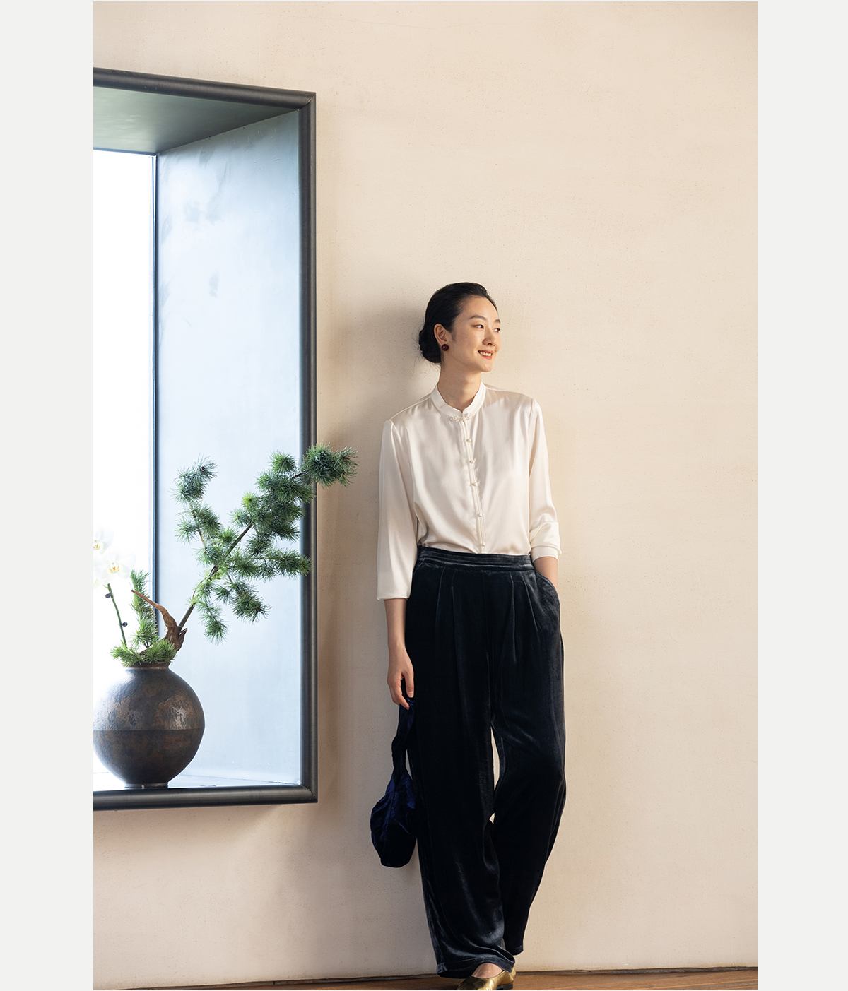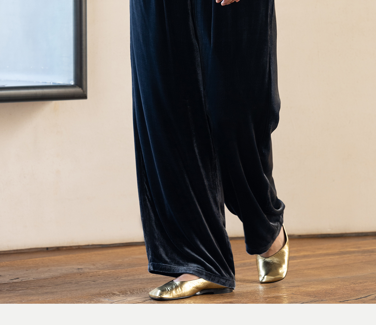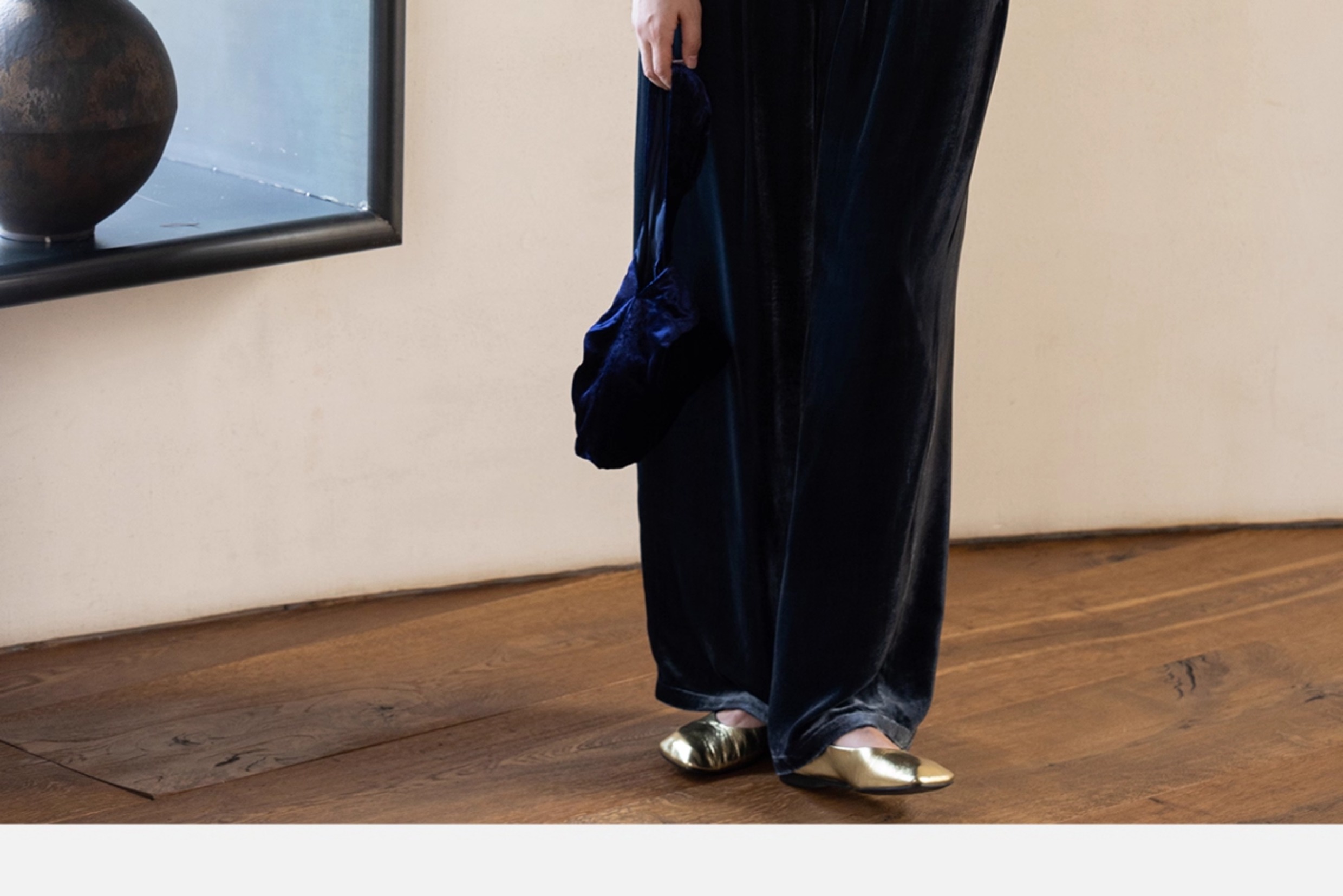牧衣游原创 丝绒净色休闲长裤新款垂感显瘦蓝色宽松百搭裤子 今喜