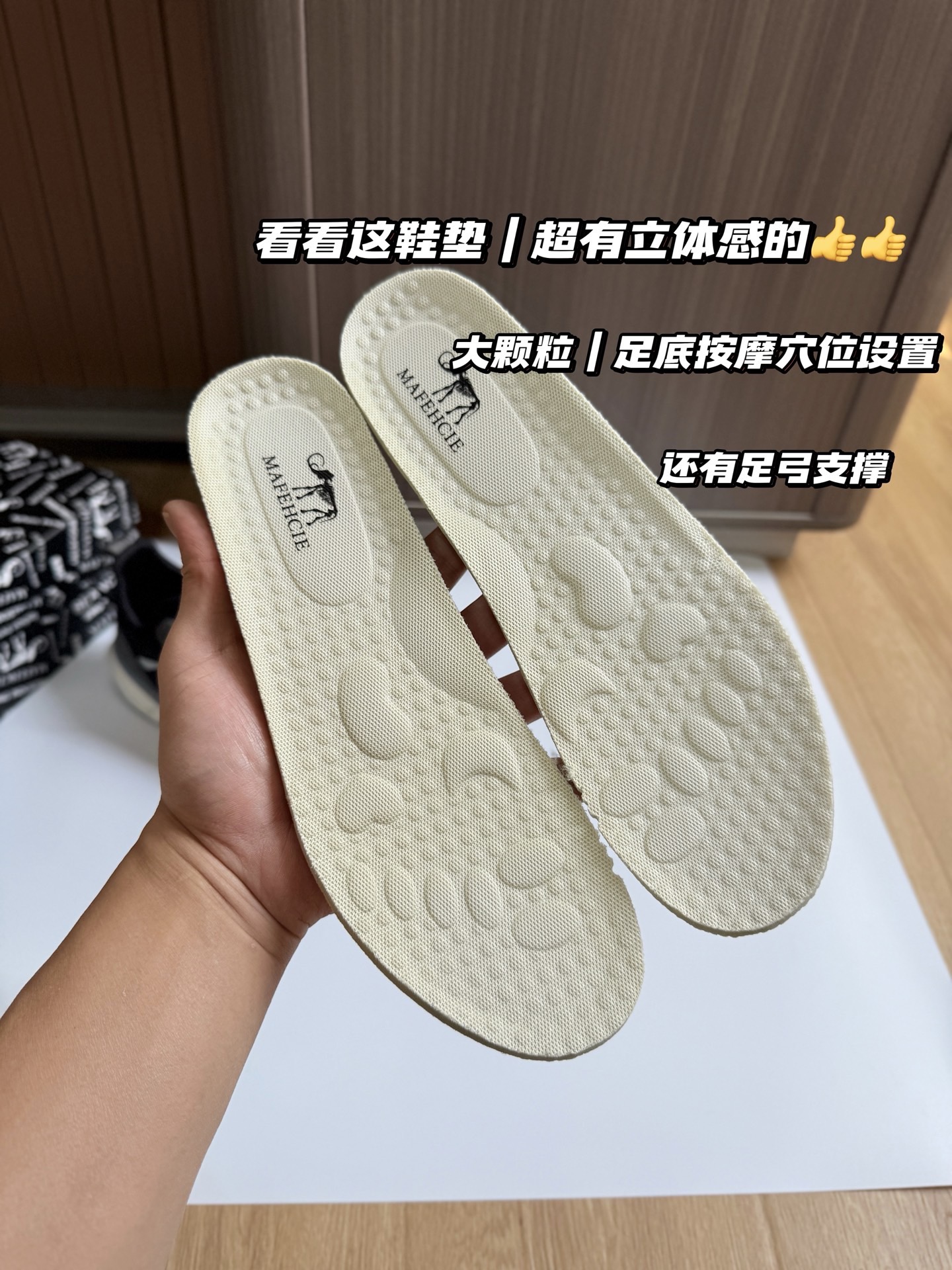 鞋垫非常优秀|加厚的海波丽减震稳型鞋垫,面衬接触面全部增加了立体凸起的按摩颗粒