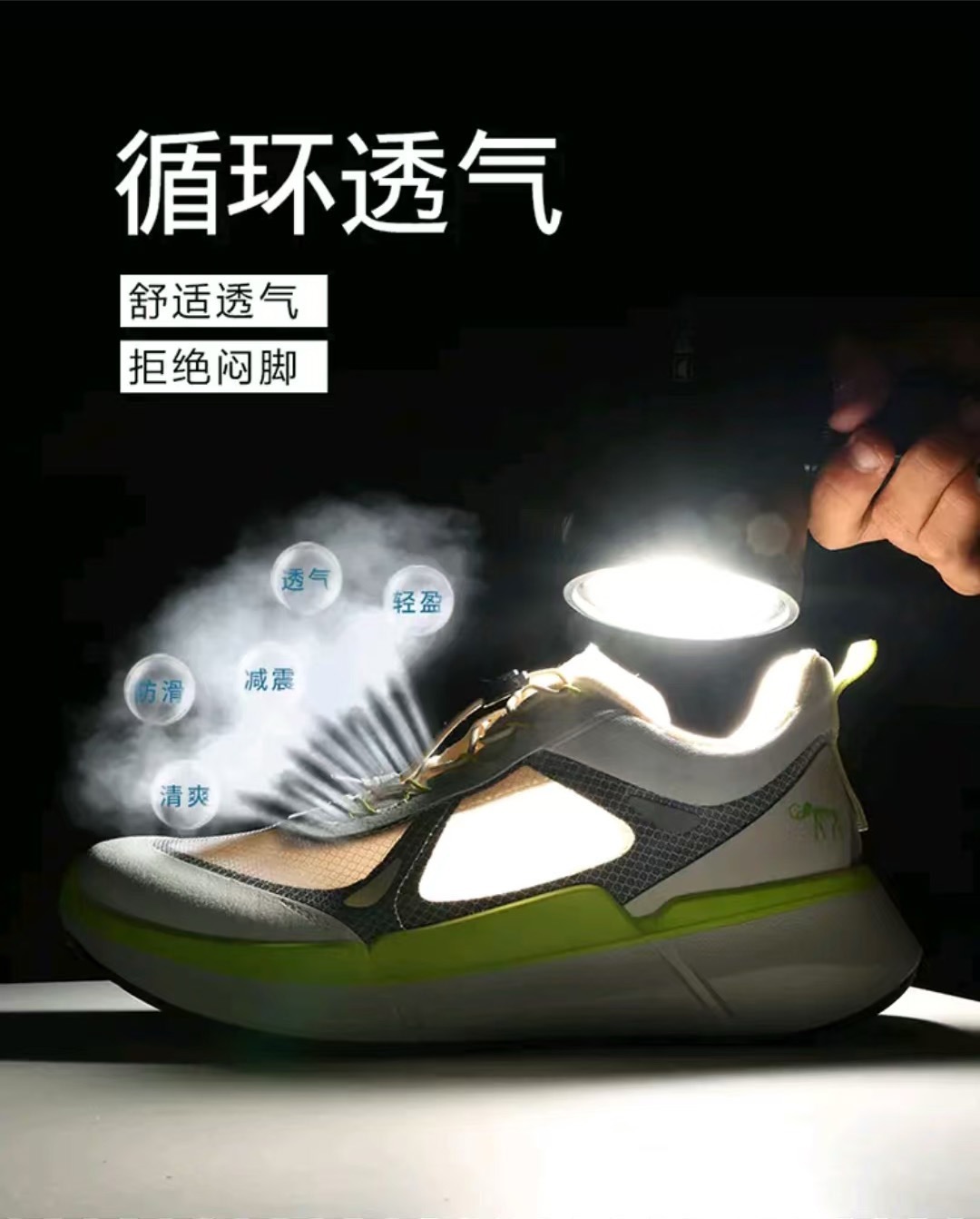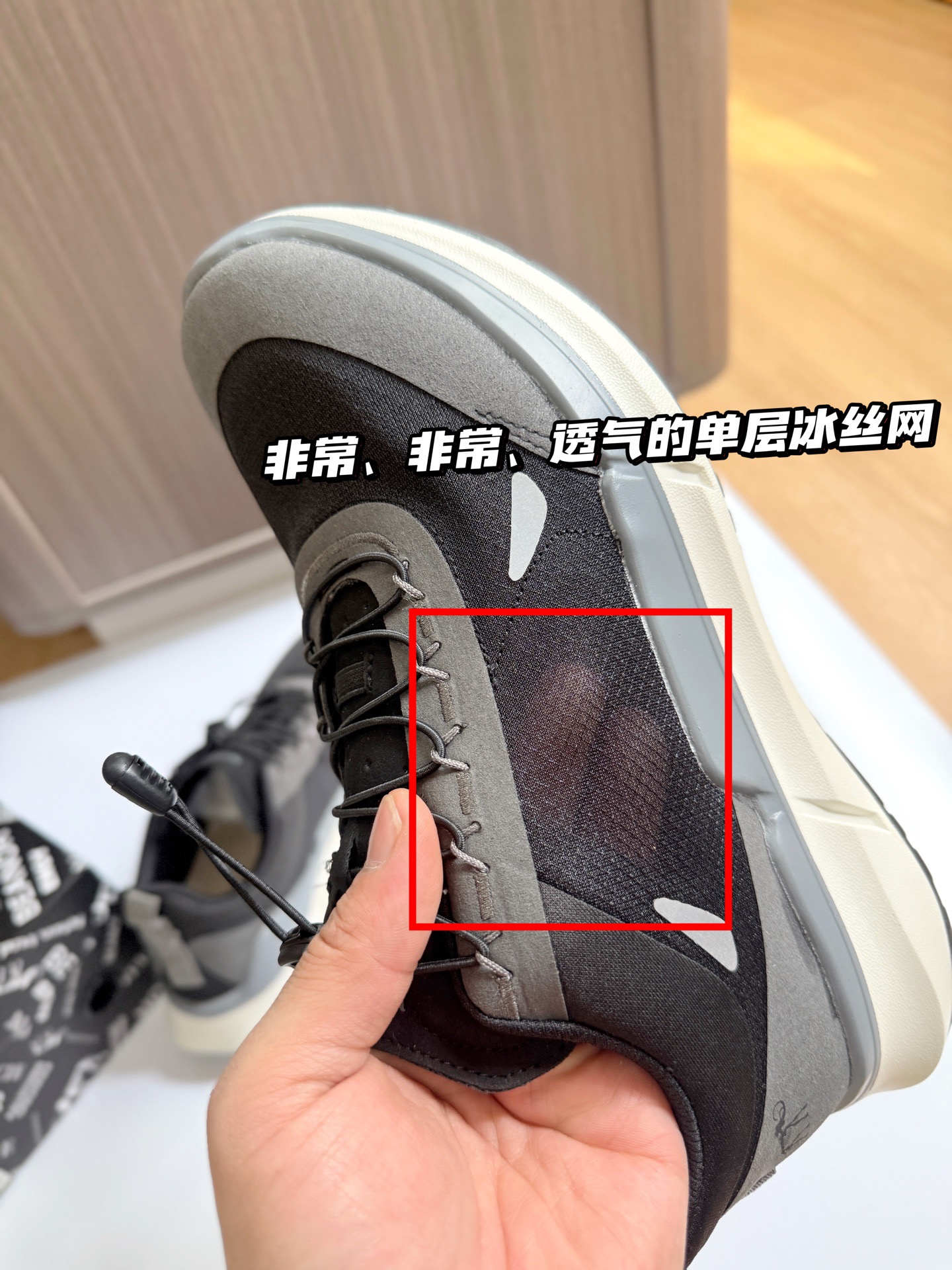 超级轻薄的透气冰丝网面|搭配内里细密纱网,能有效的透气和隔绝砂石的入侵