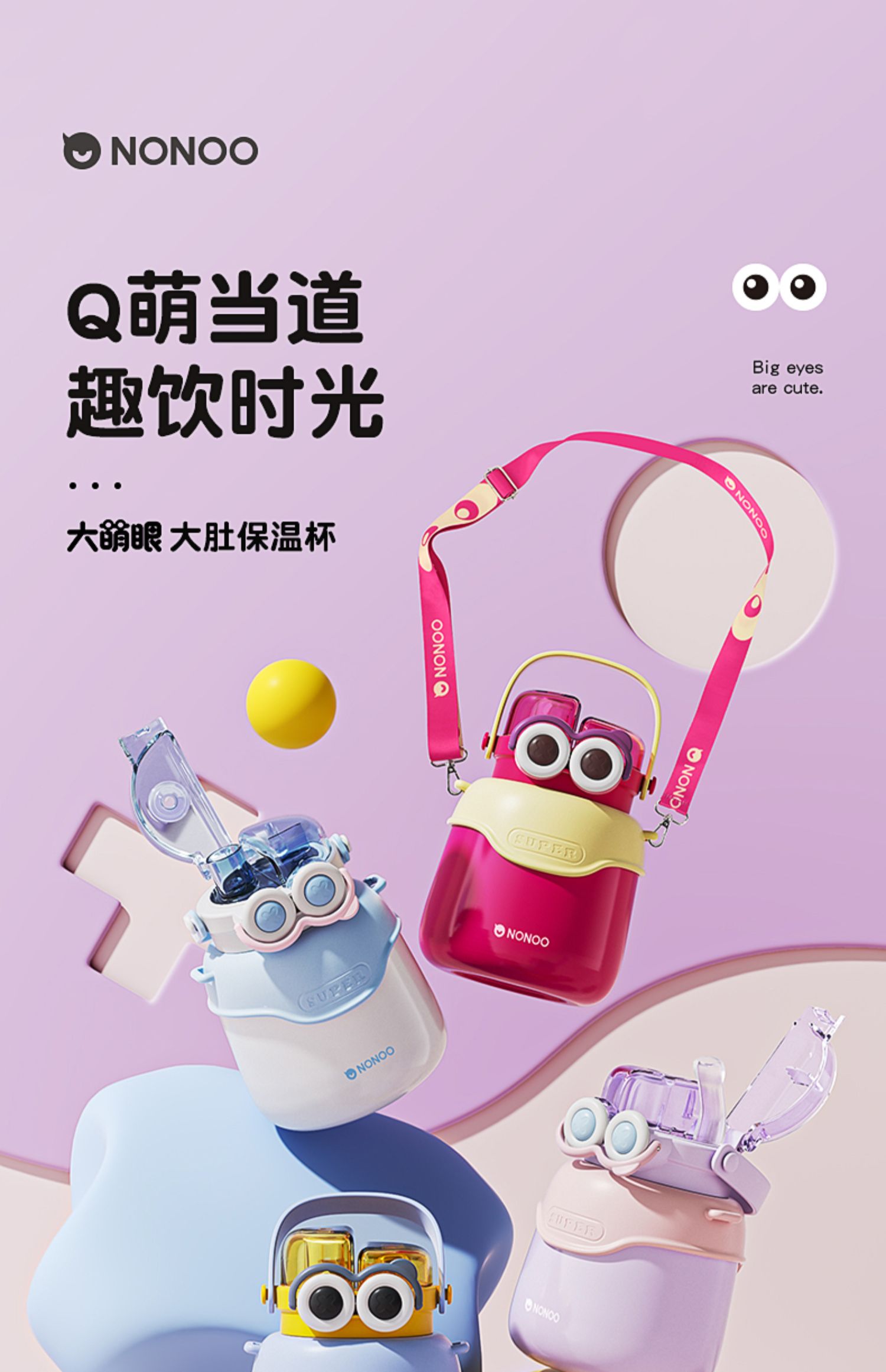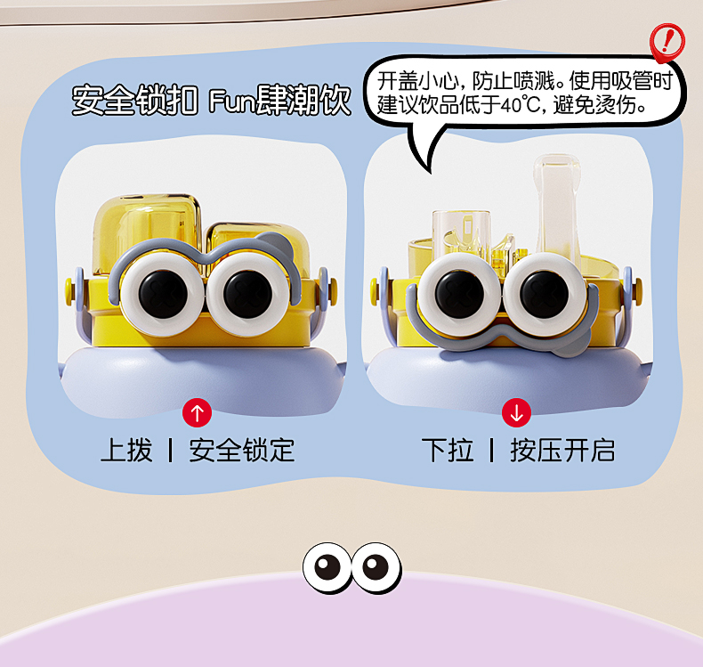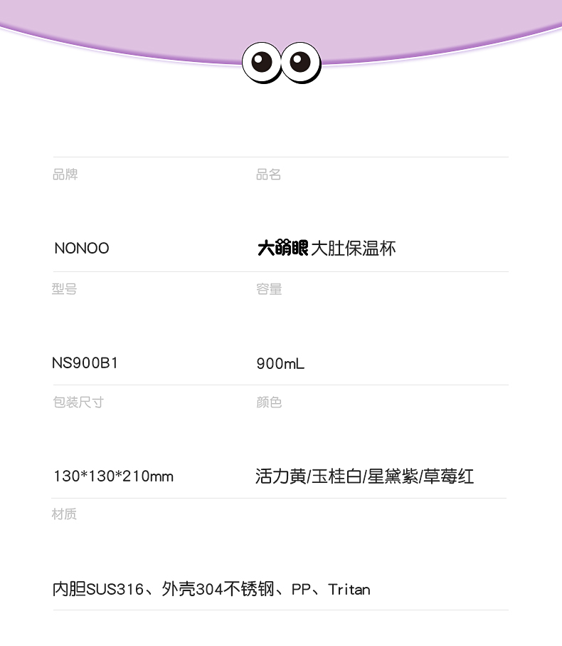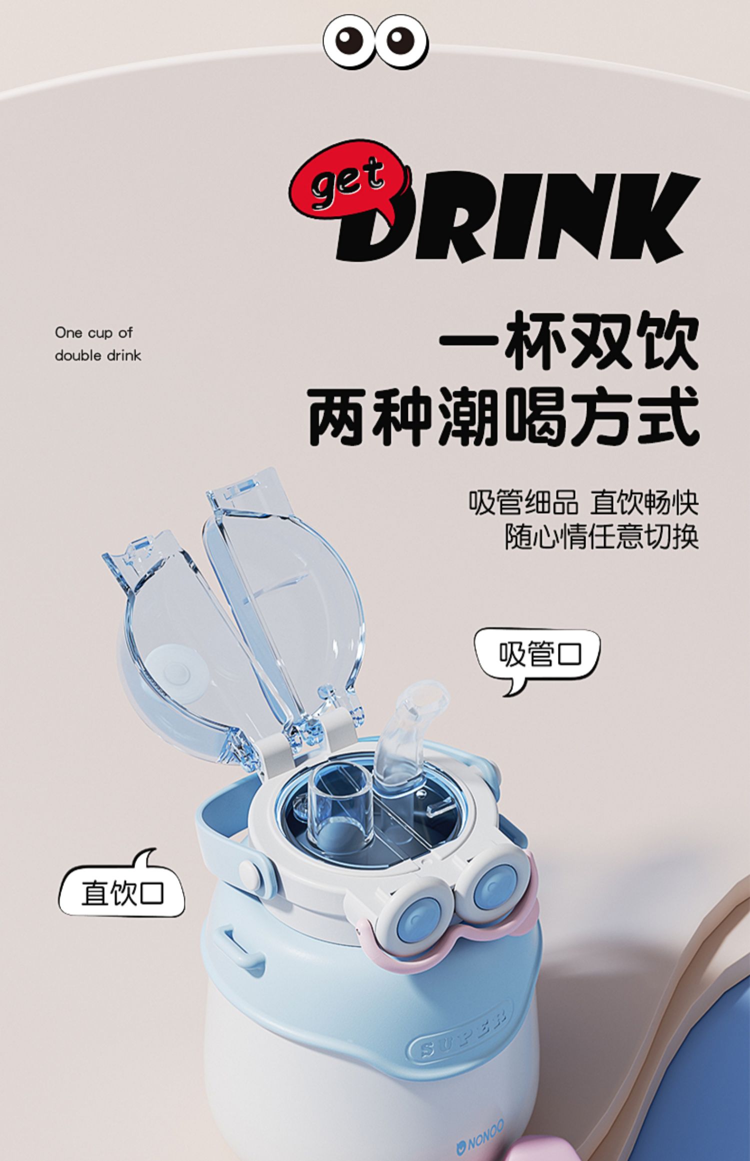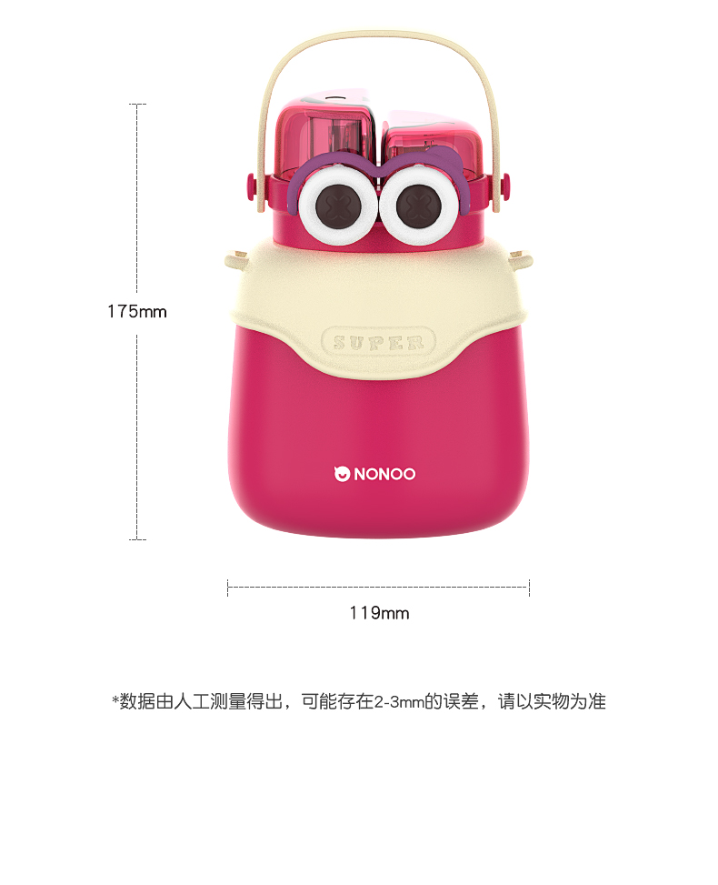【清仓特惠5折,仅3套无货退款】NONOO大眼萌大肚杯保温杯高颜值儿童学生大容量双饮口吸管杯+水杯(玉桂白)【不支持补差,非质量问题不退不换】S