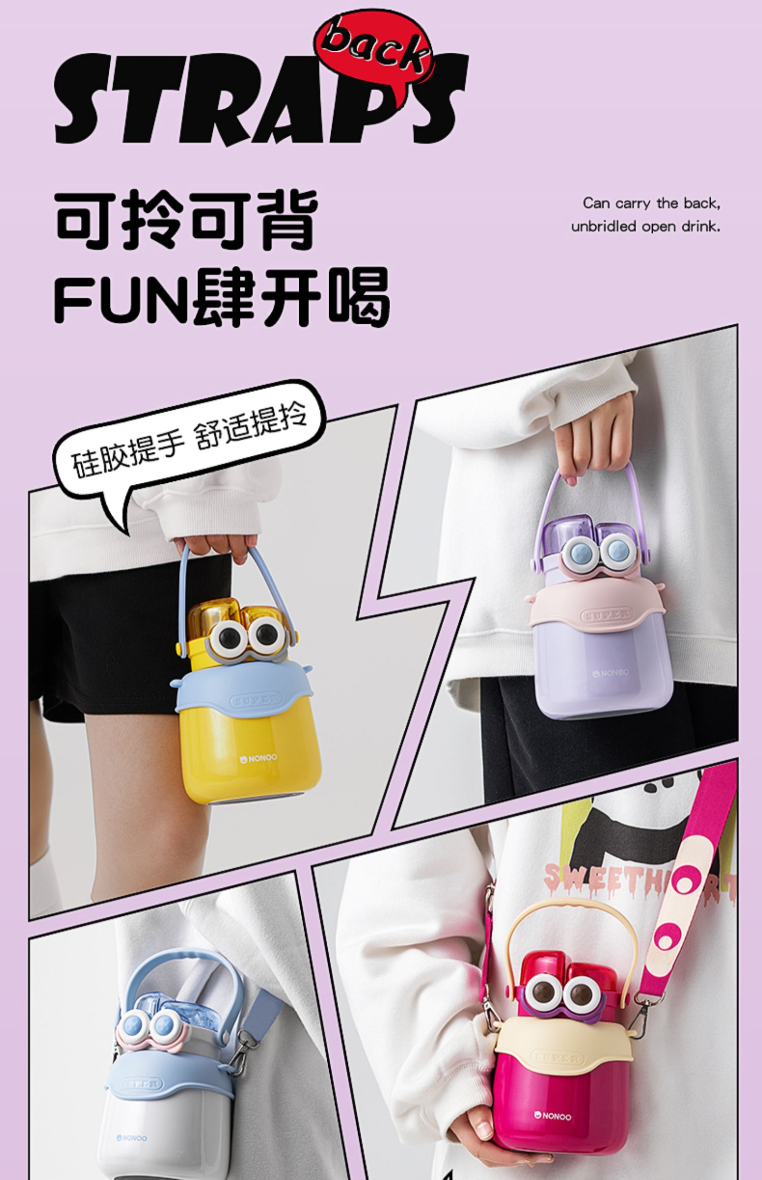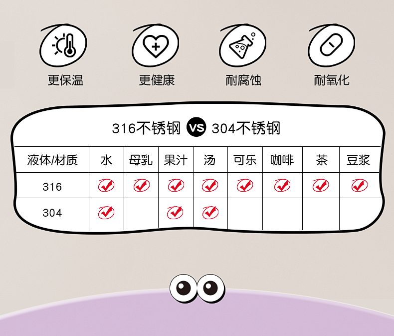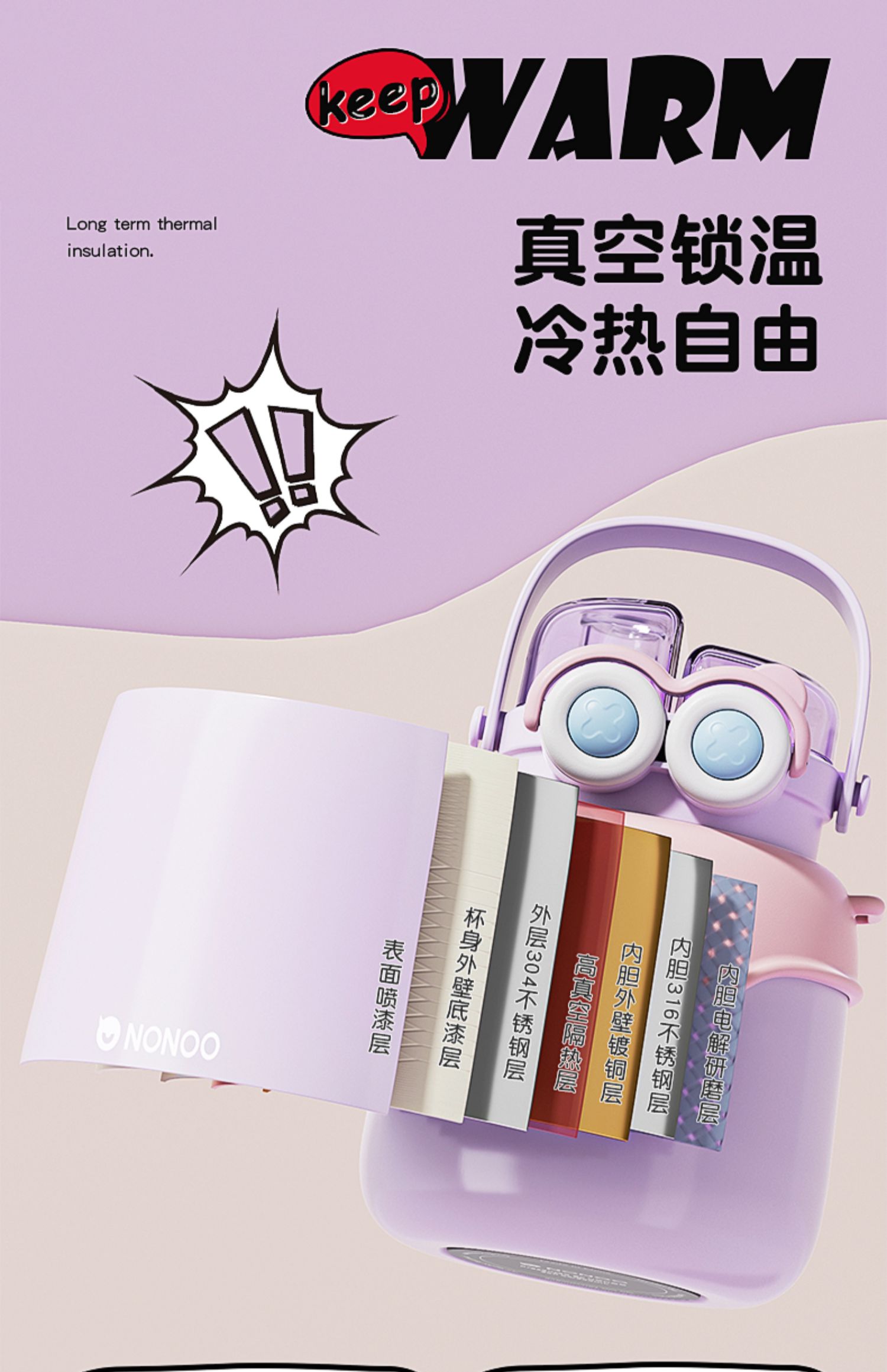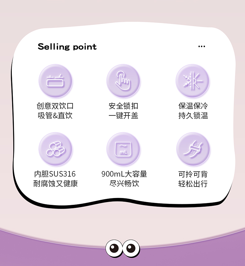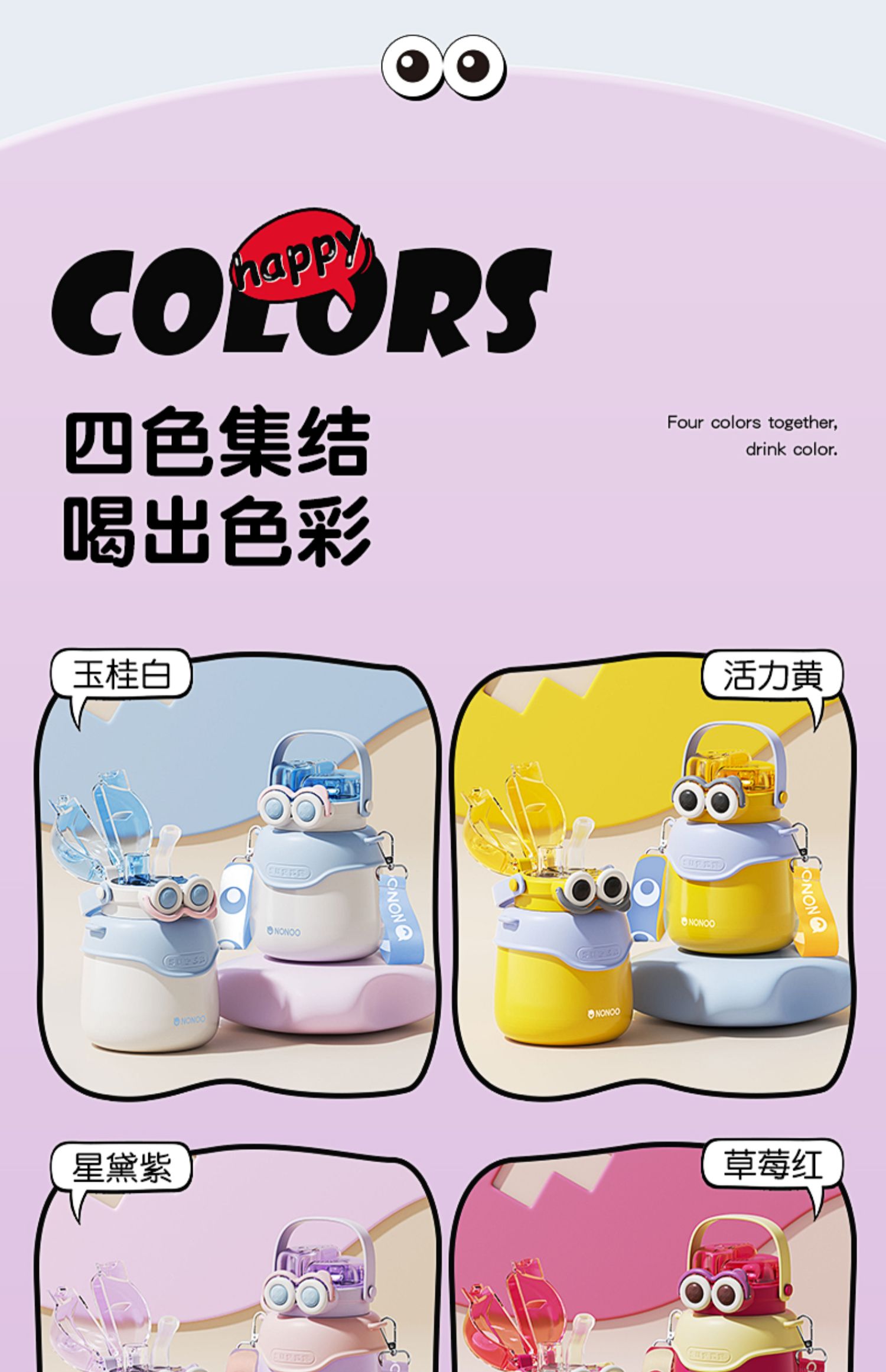【清仓特惠5折,仅3套无货退款】NONOO大眼萌大肚杯保温杯高颜值儿童学生大容量双饮口吸管杯+水杯(玉桂白)【不支持补差,非质量问题不退不换】S
