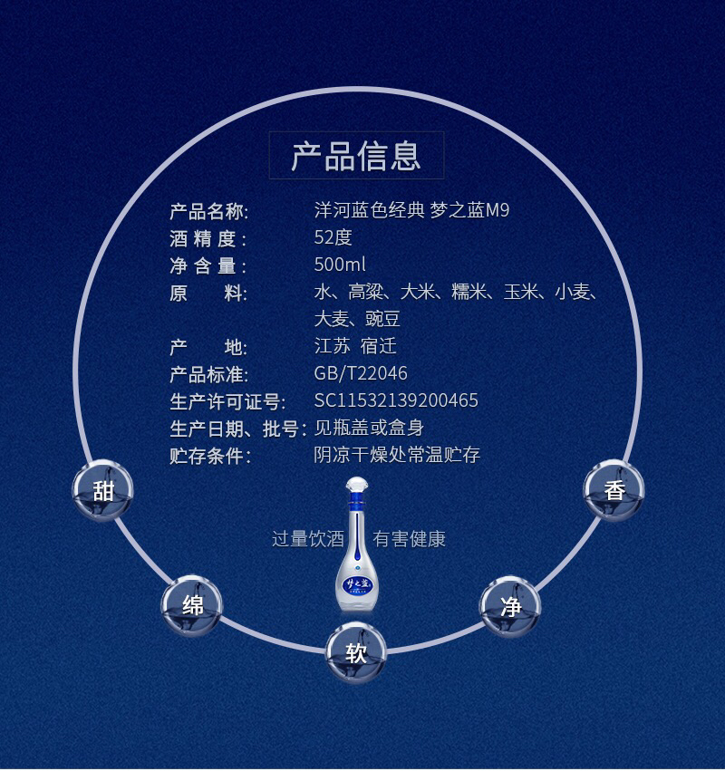 2018年·52度洋河梦之蓝M9 500ML