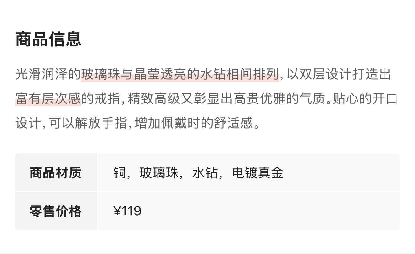 OUDAL奥黛儿 双层玻璃珠水钻开口戒指 7174