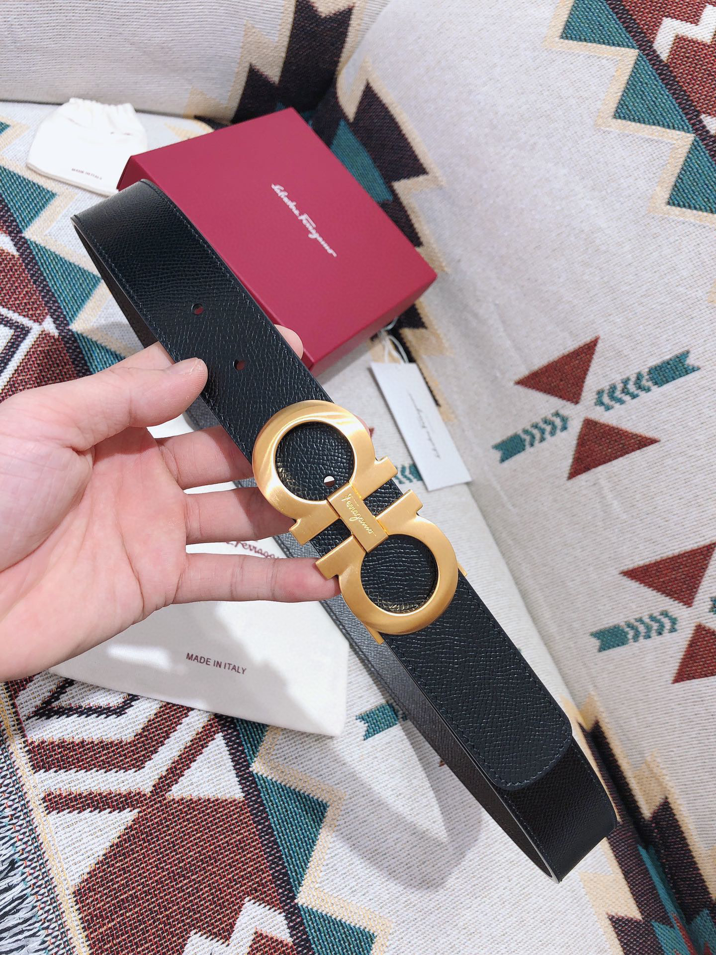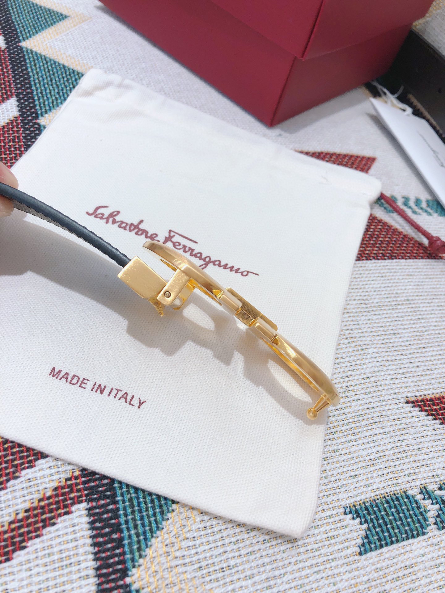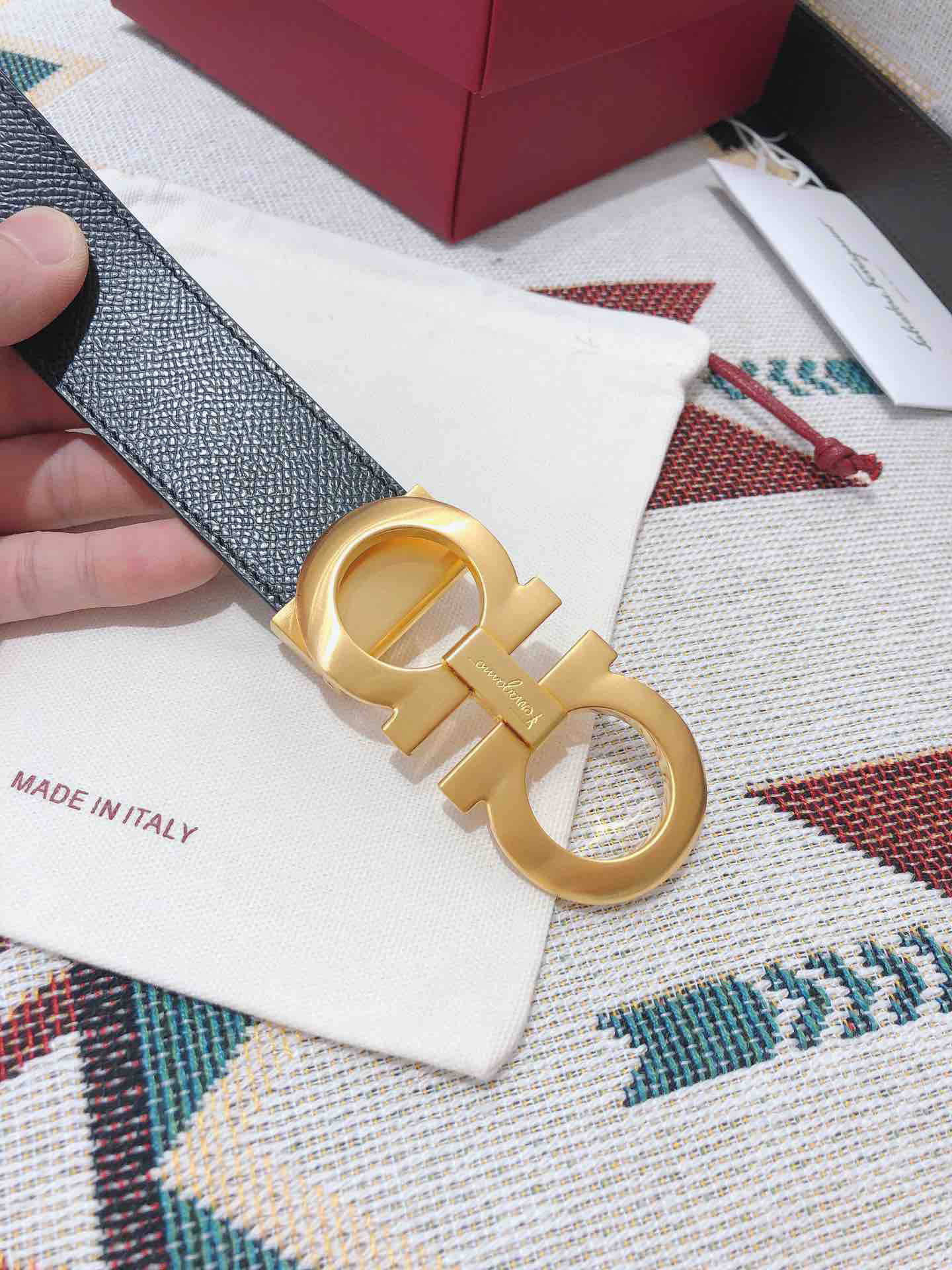 SF菲拉格慕-金色扣-掌纹牛皮