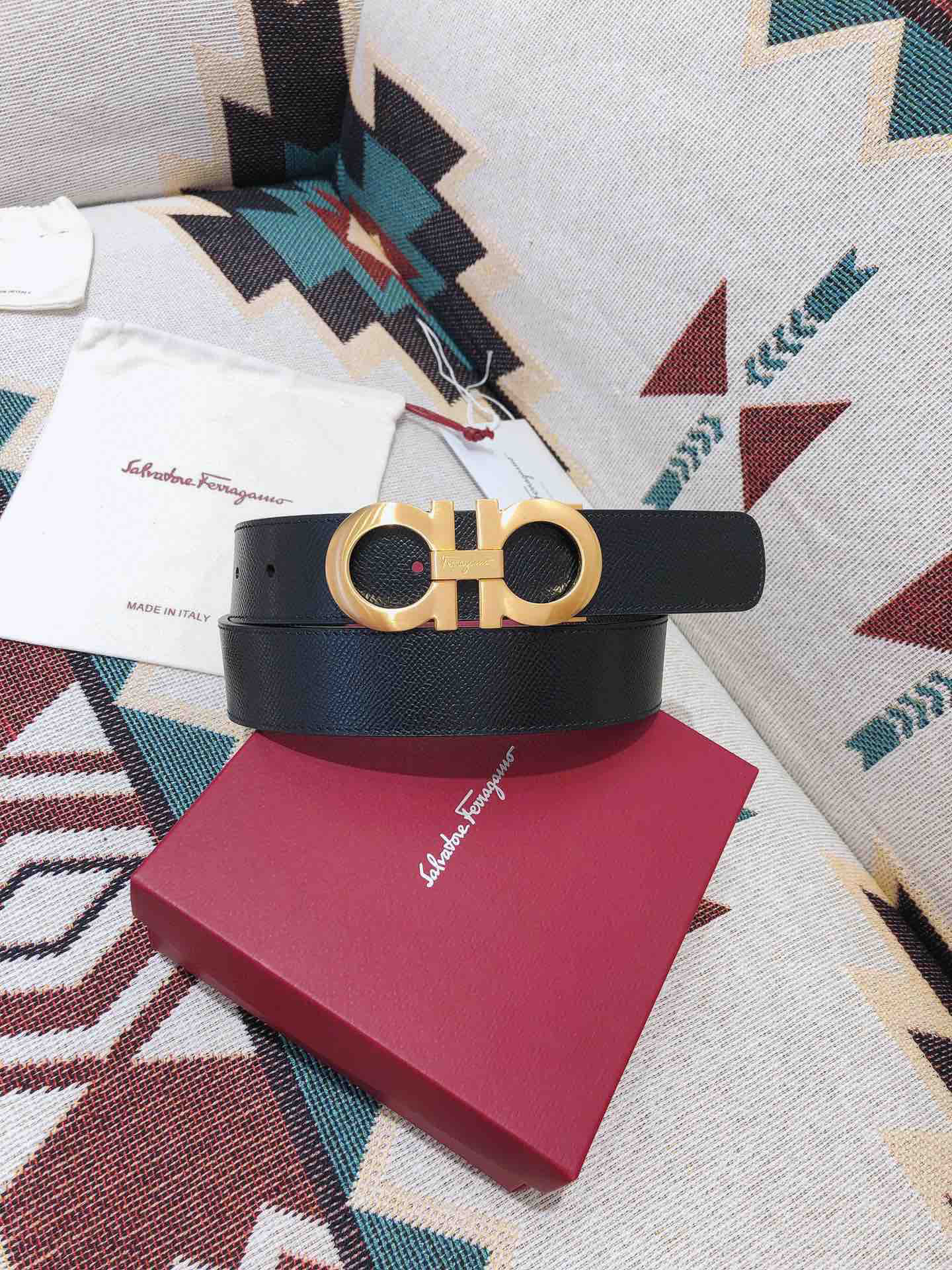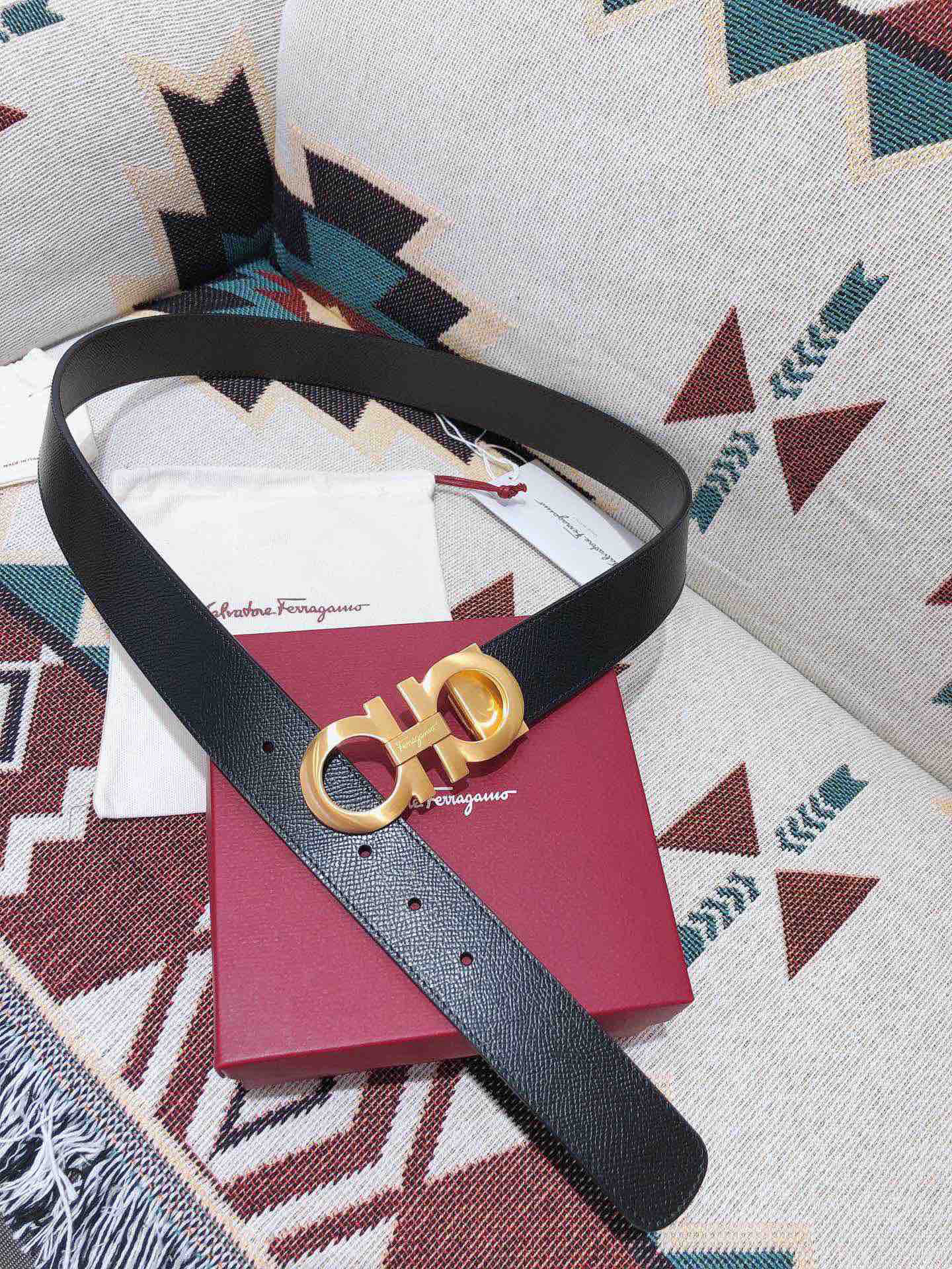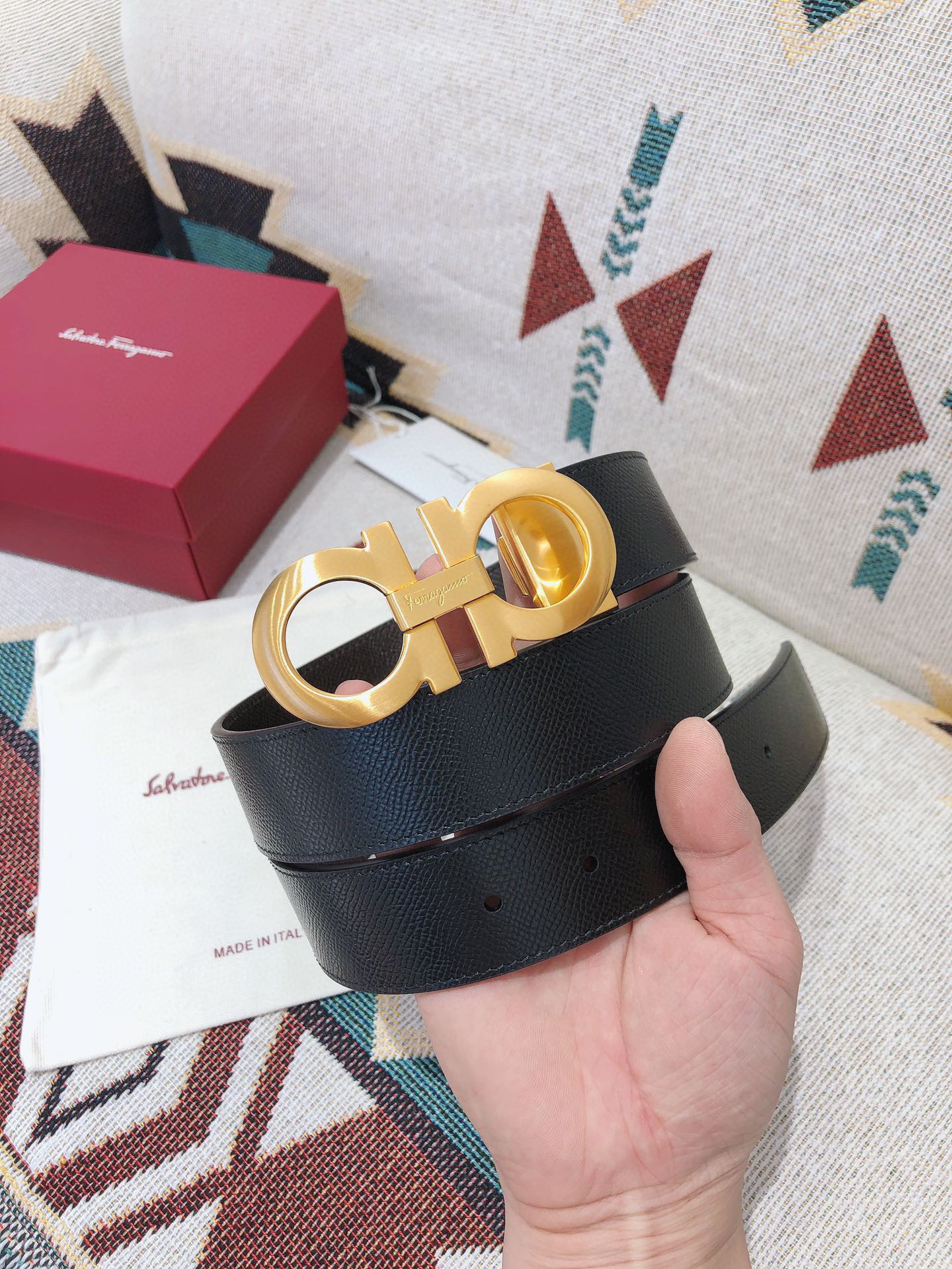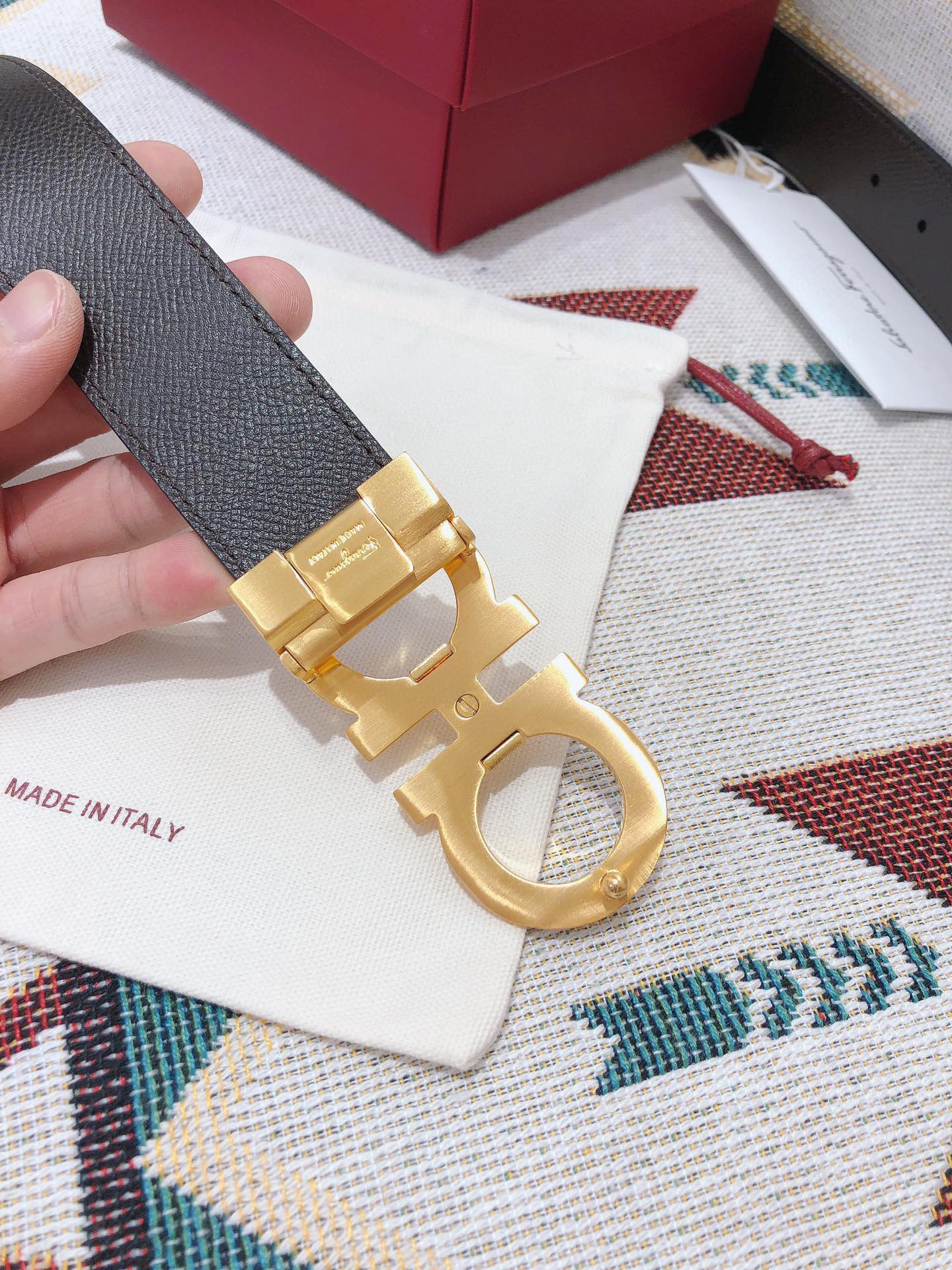 SF菲拉格慕-金色扣-掌纹牛皮