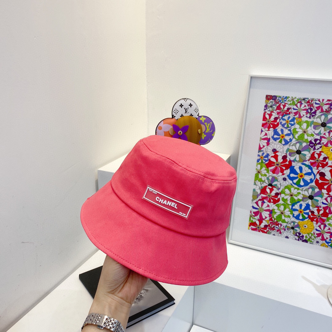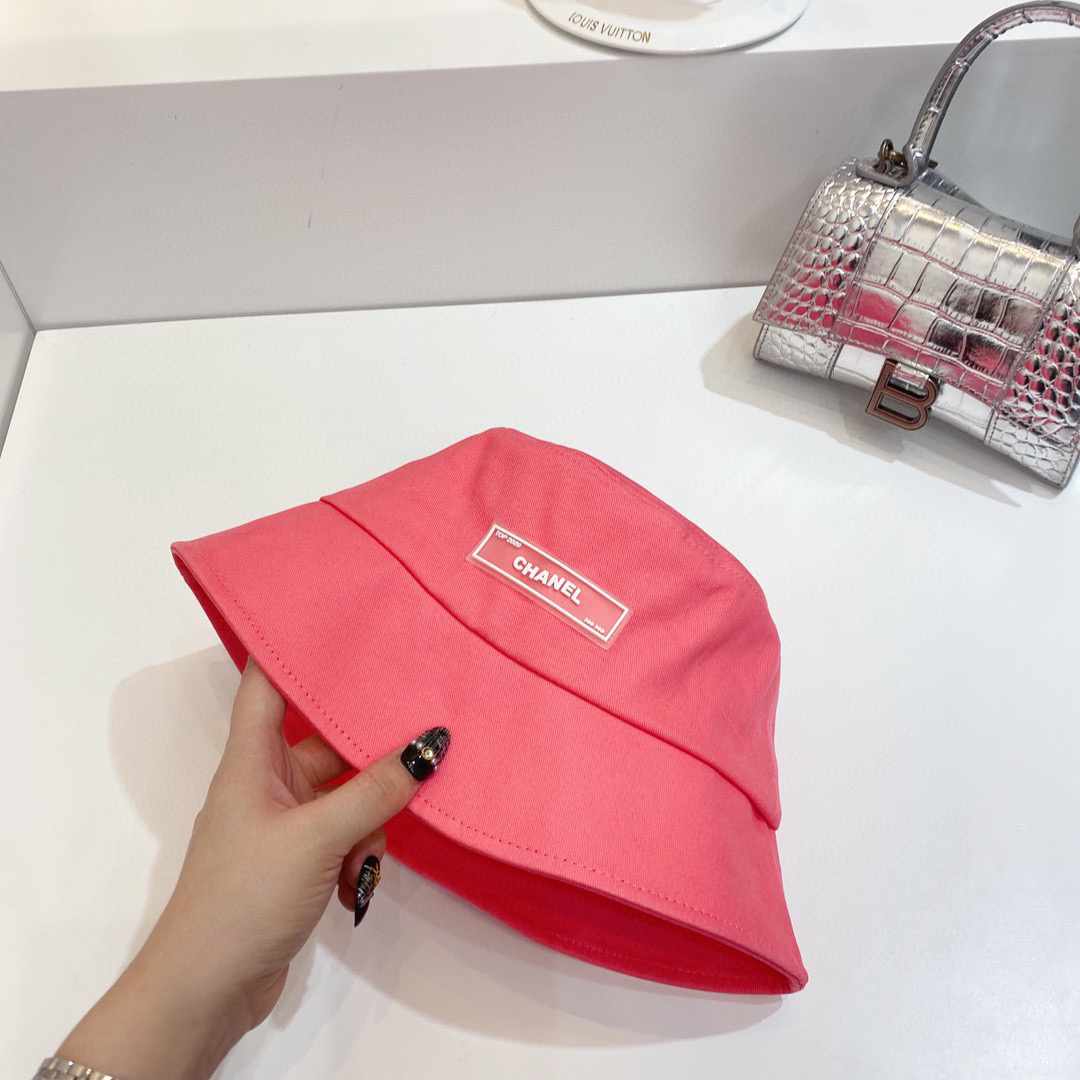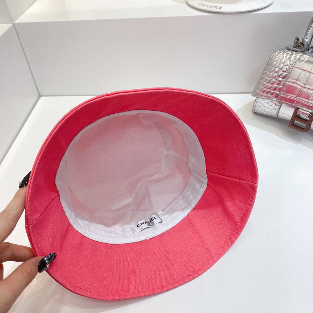 chanel小香shi家新款彩色纯棉渔夫🔝帽-桃红
