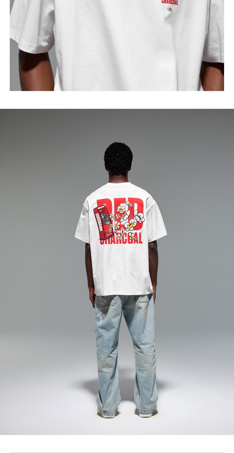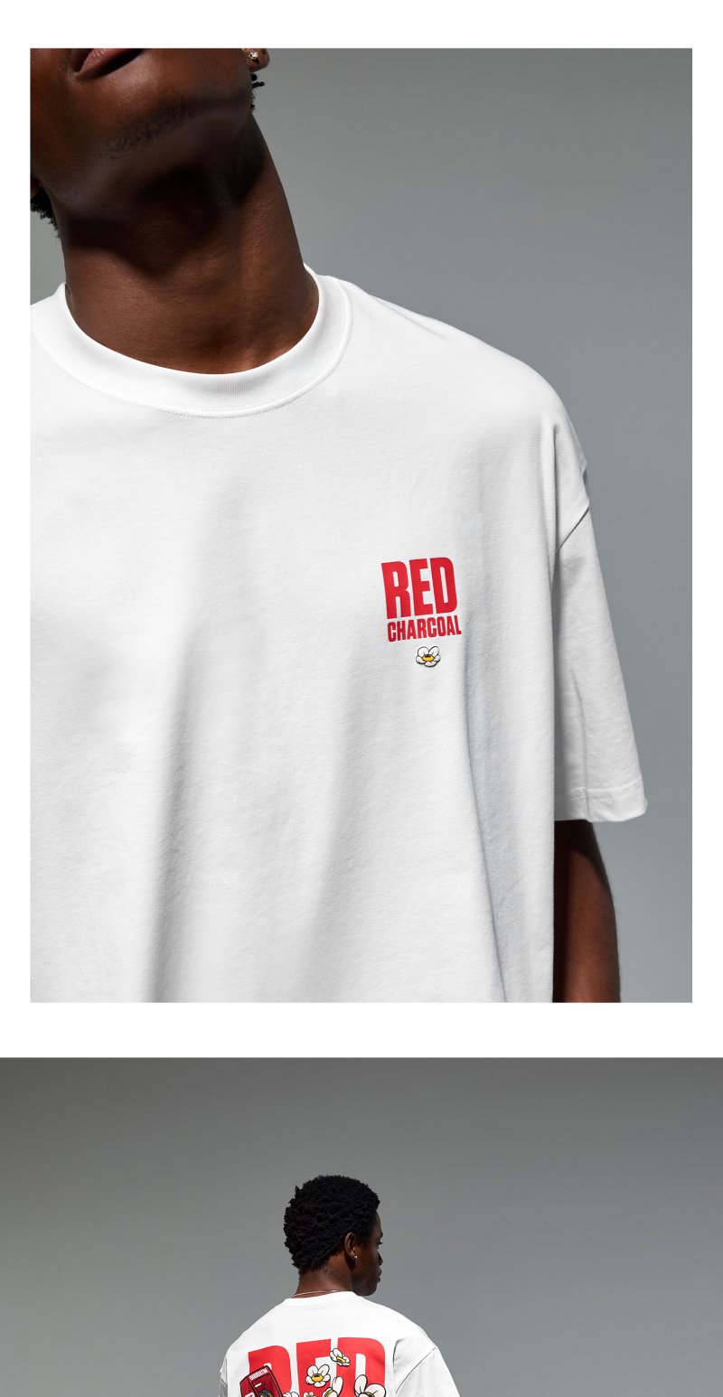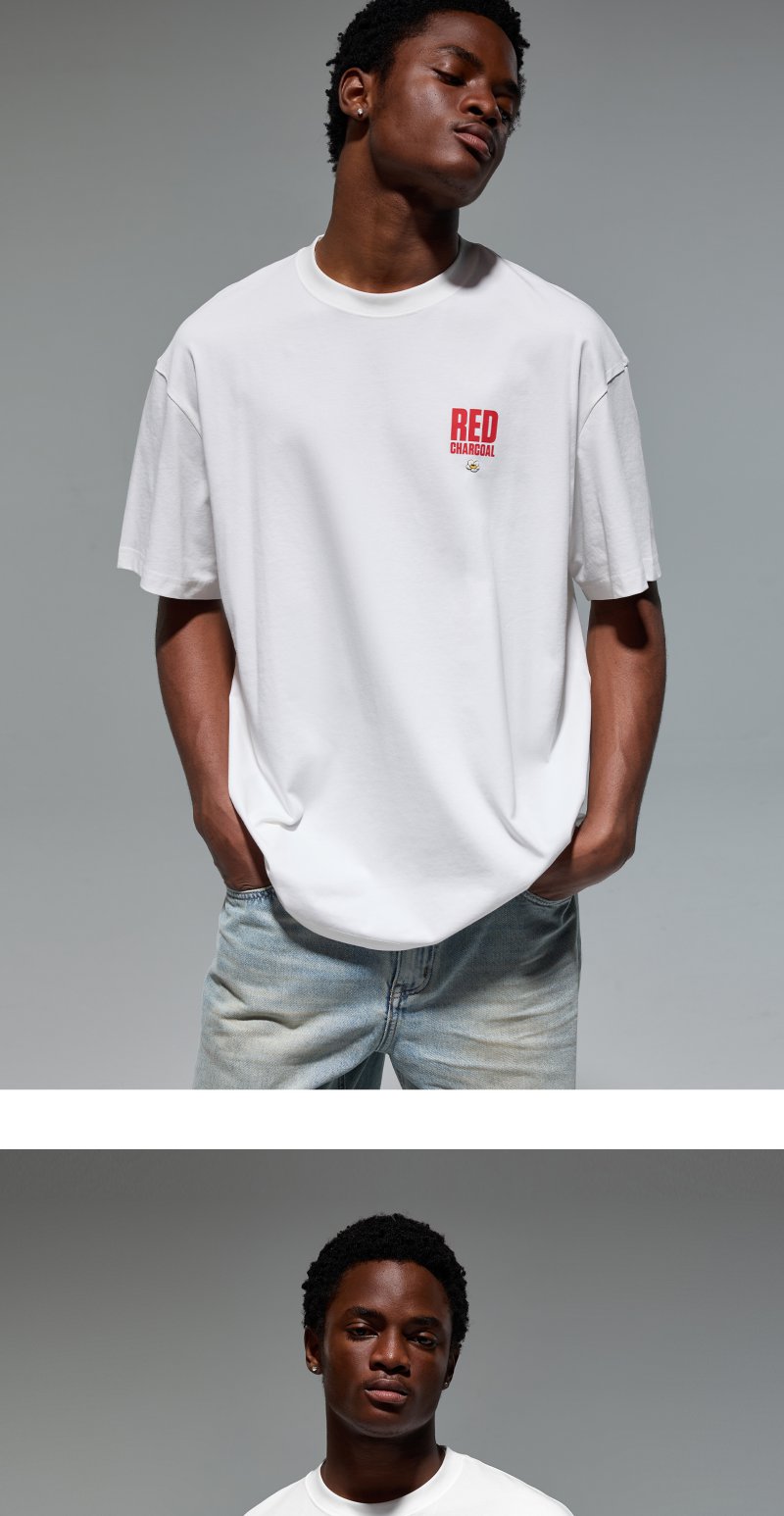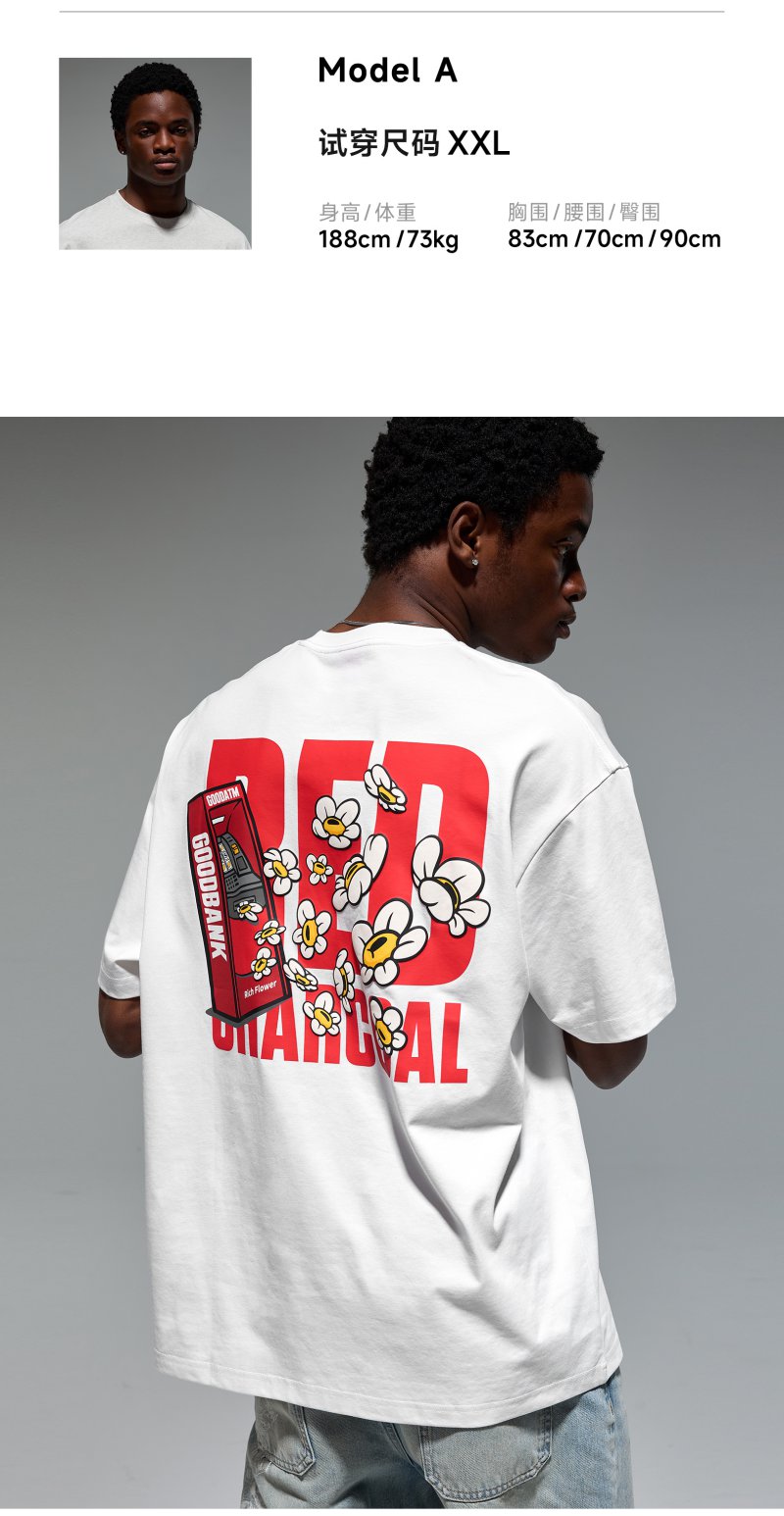 REDCHARCOAL红炭白色速干印花短袖T恤男夏季潮牌宽松情侣男士半袖