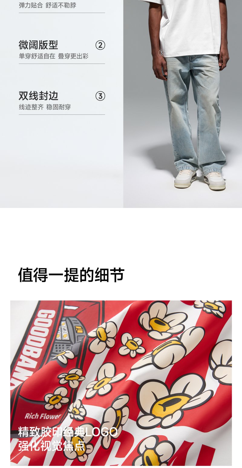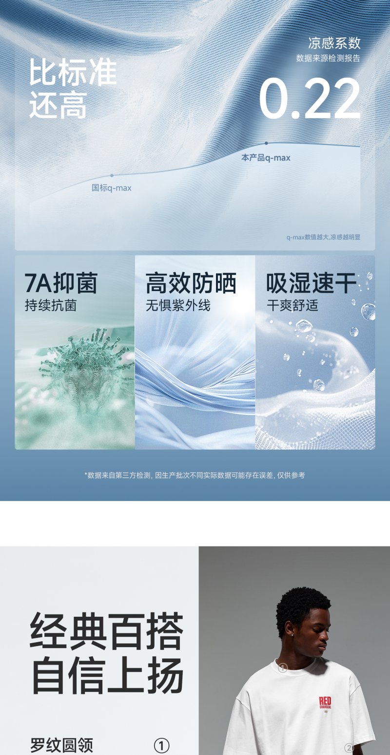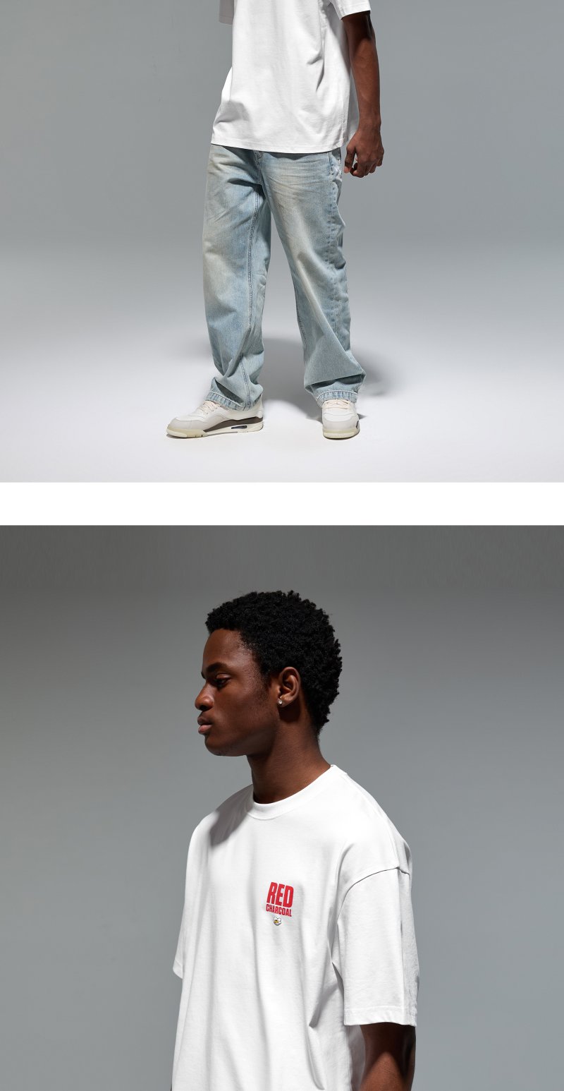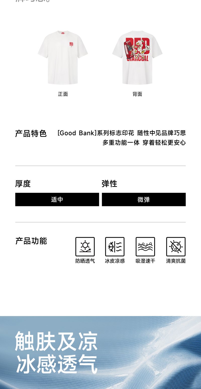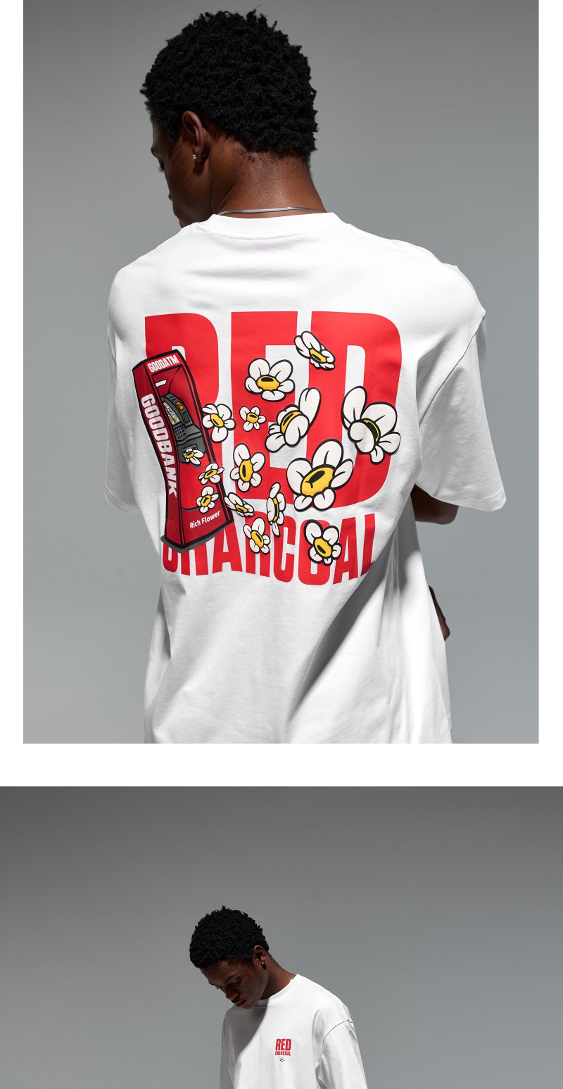 REDCHARCOAL红炭白色速干印花短袖T恤男夏季潮牌宽松情侣男士半袖