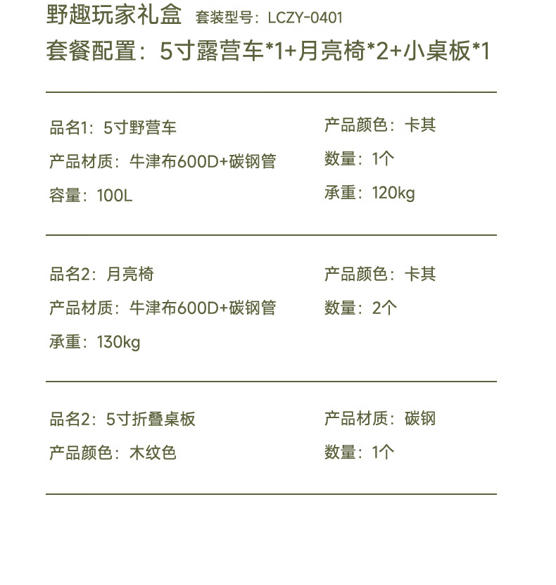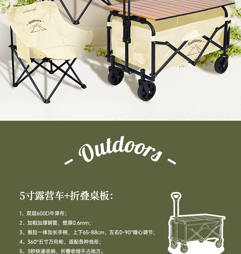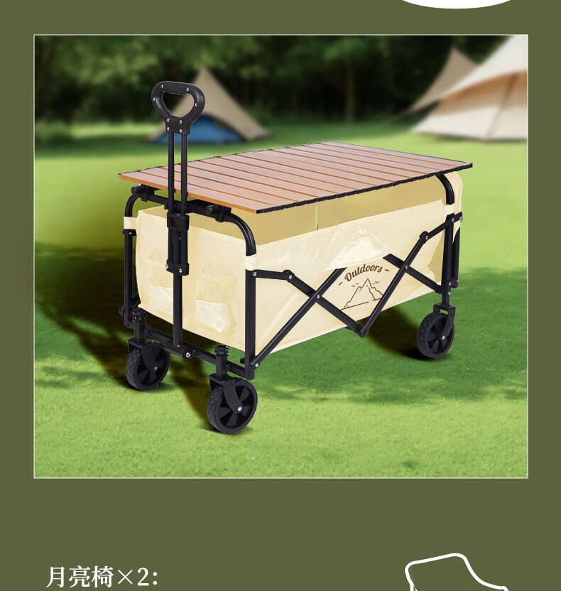 小画仙户外露营车小推车营地车摆摊拉快递 含餐桌板月亮椅