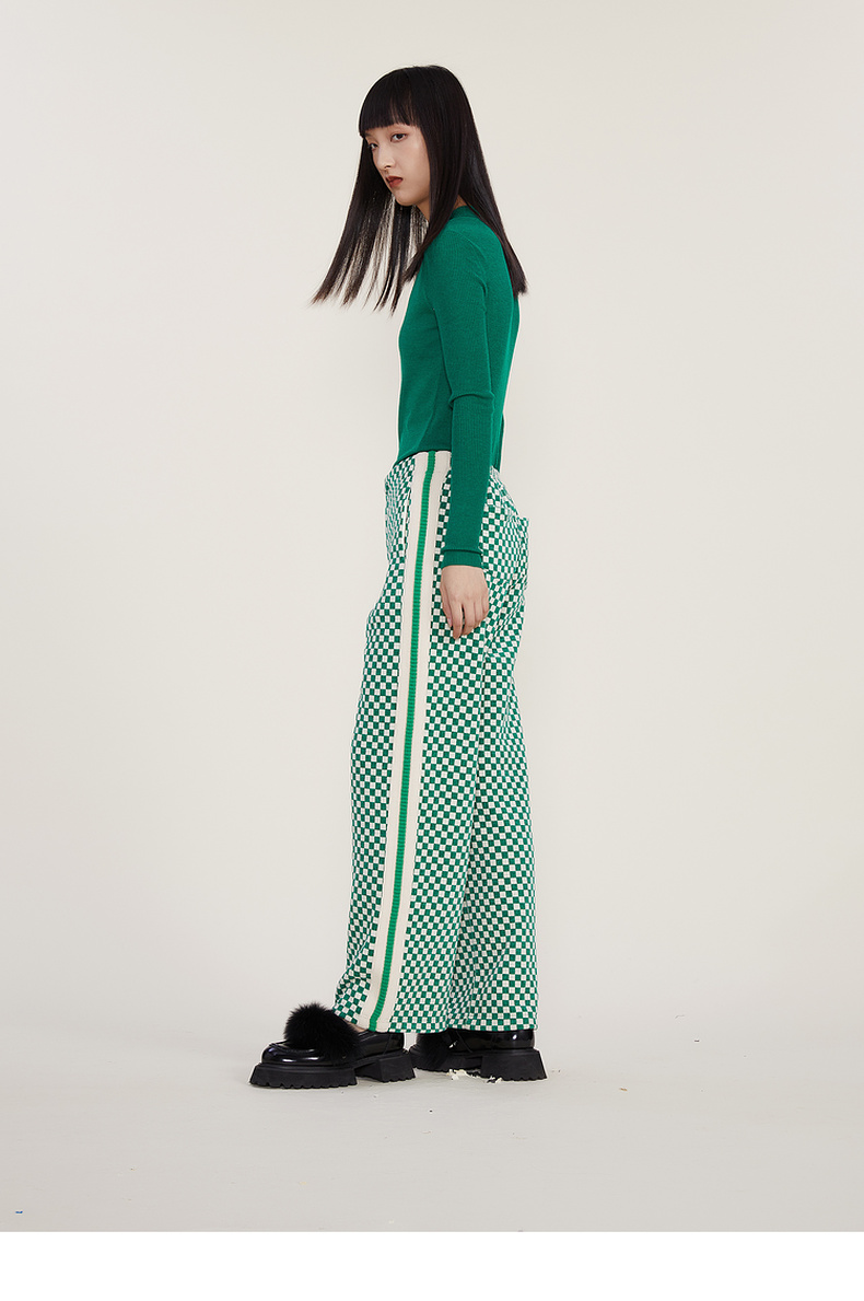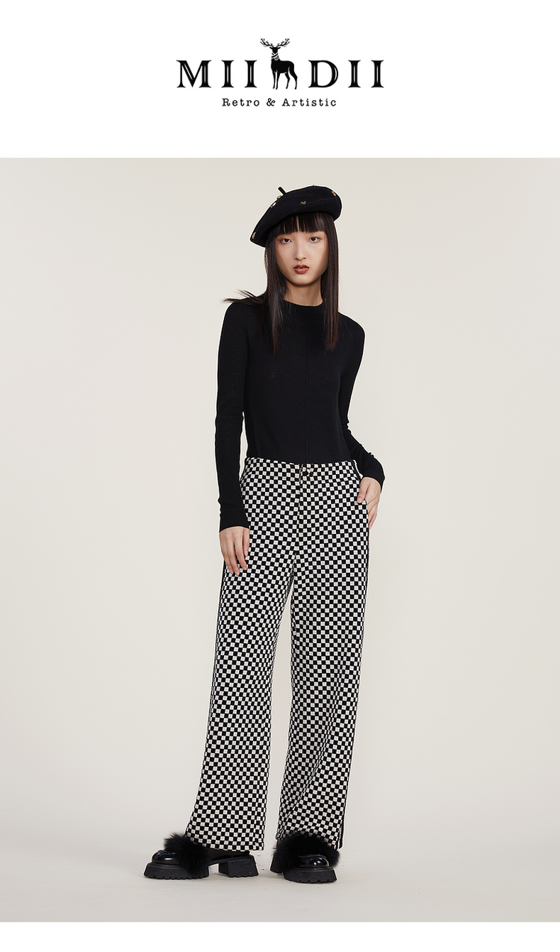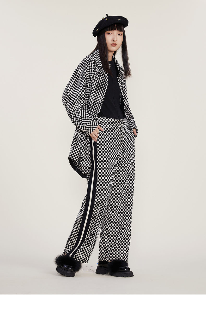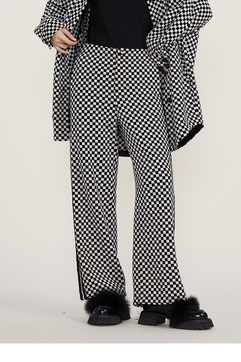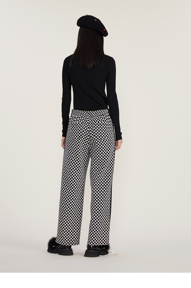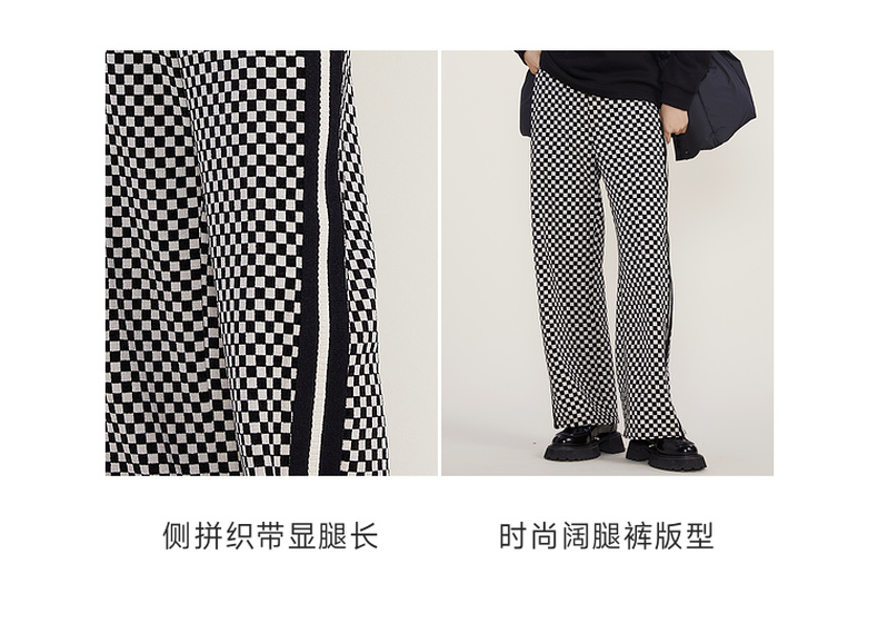 谜底2022冬季新款高腰棋盘格阔腿长裤时髦宽松直筒裤女224MK1564