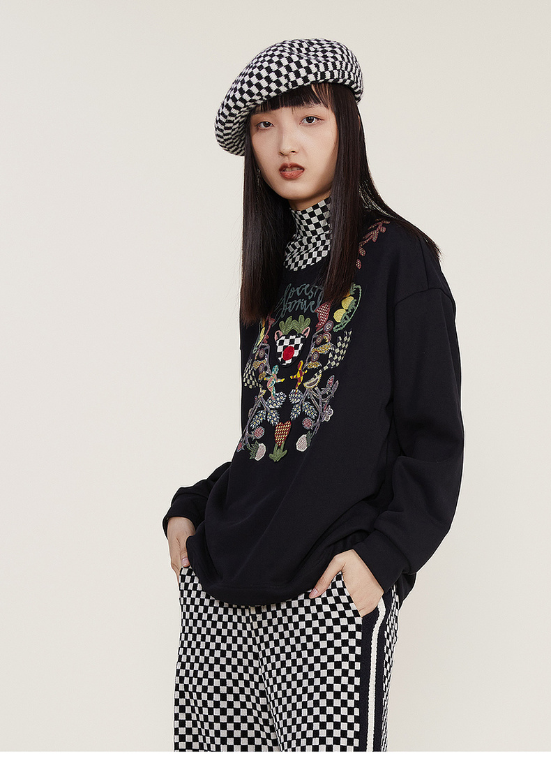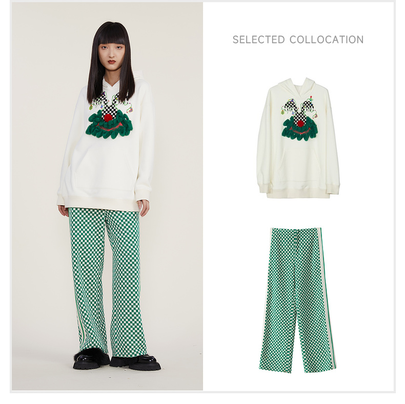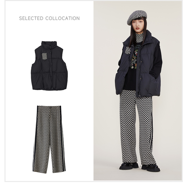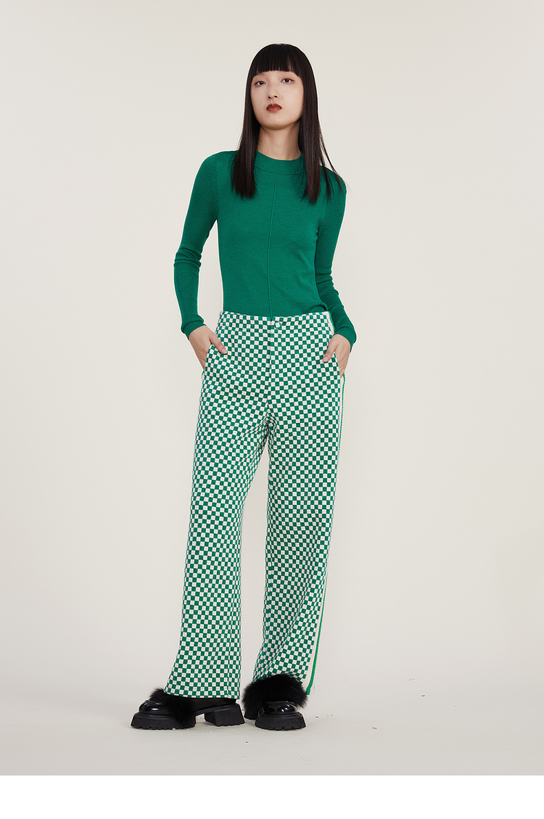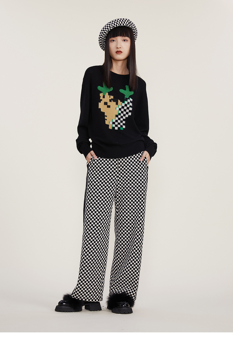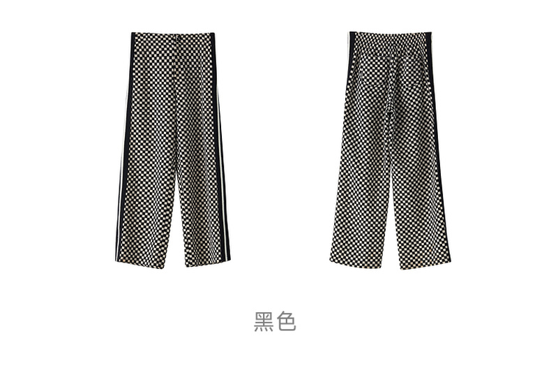 谜底2022冬季新款高腰棋盘格阔腿长裤时髦宽松直筒裤女224MK1564